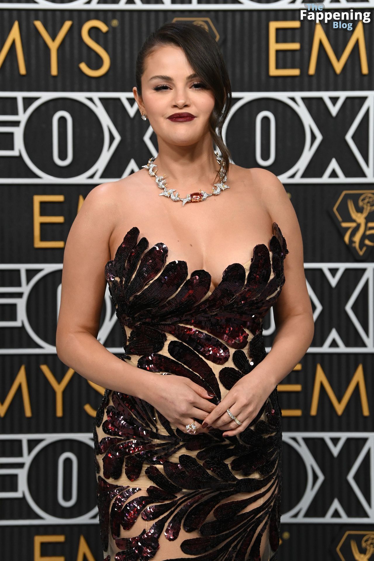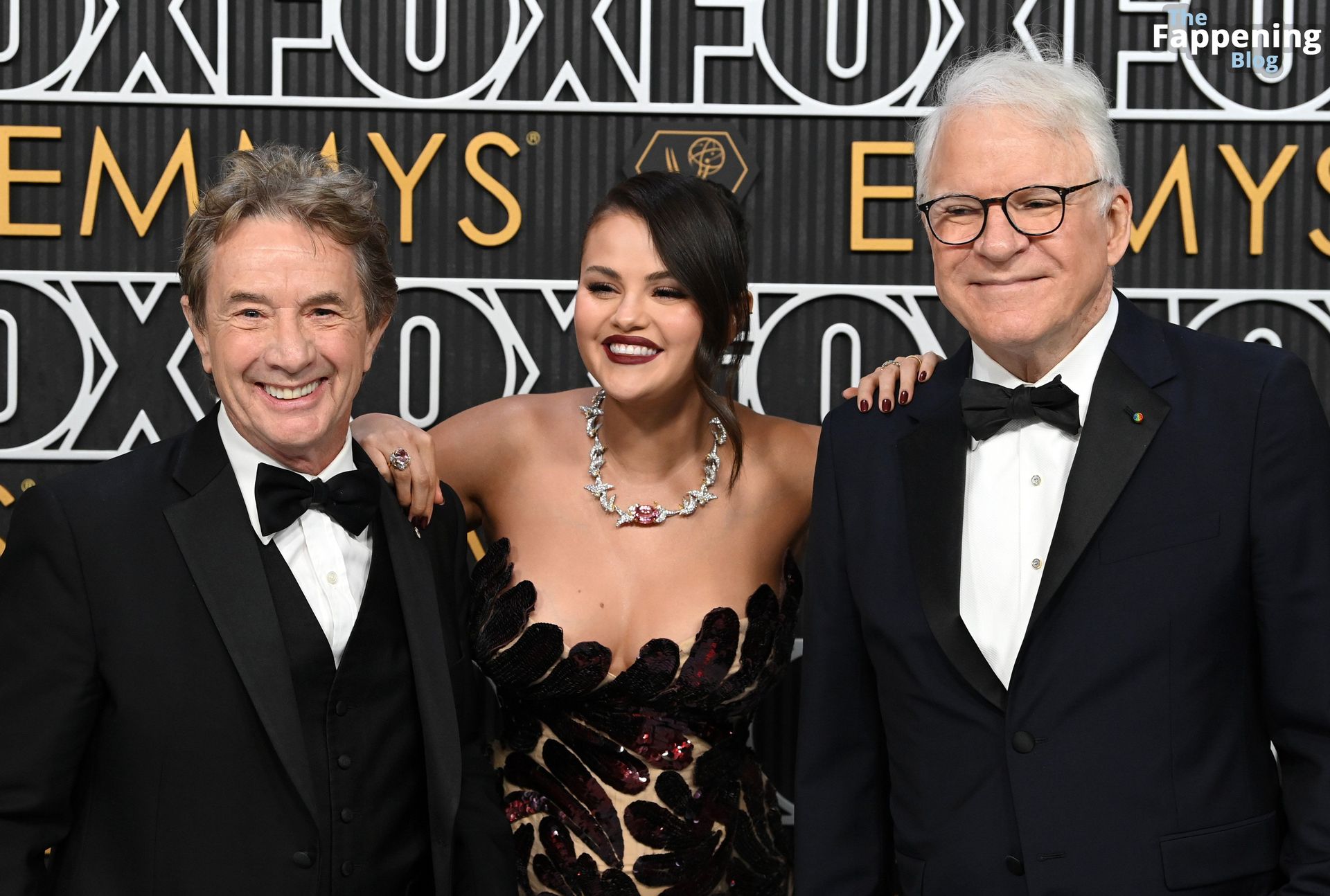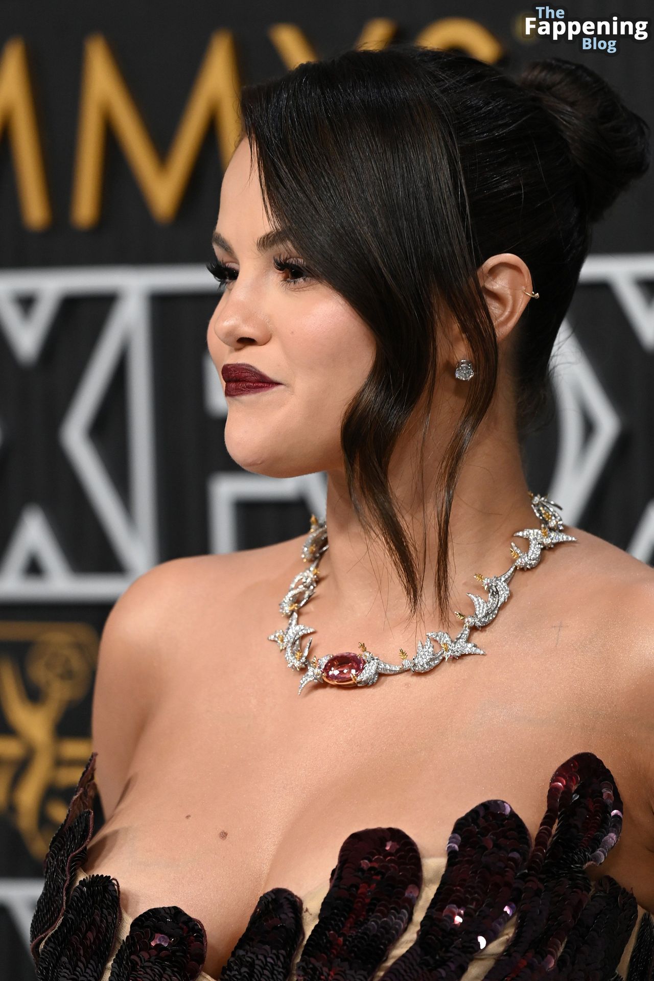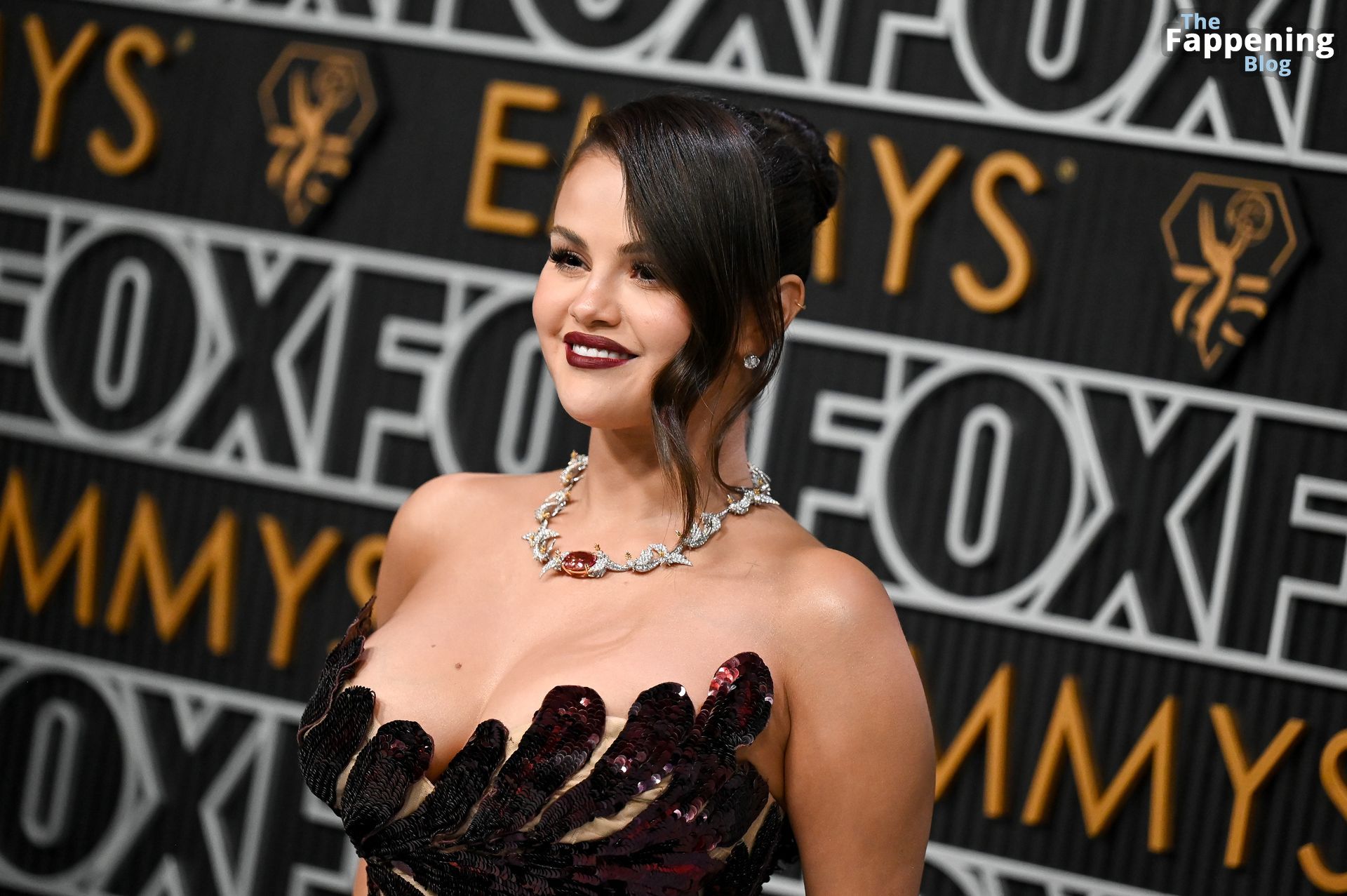Selena Gomez aumenta a temperatura no evento com um decote sexy. Ela esteve presente na 75ª edição do Primetime Emmy Awards no Peacock Theater em 15 de janeiro de 2024, em Los Angeles, Califórnia.