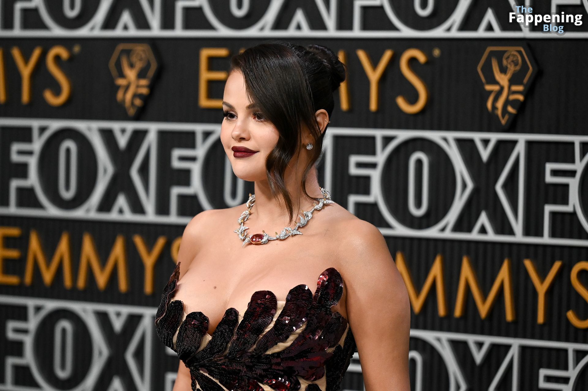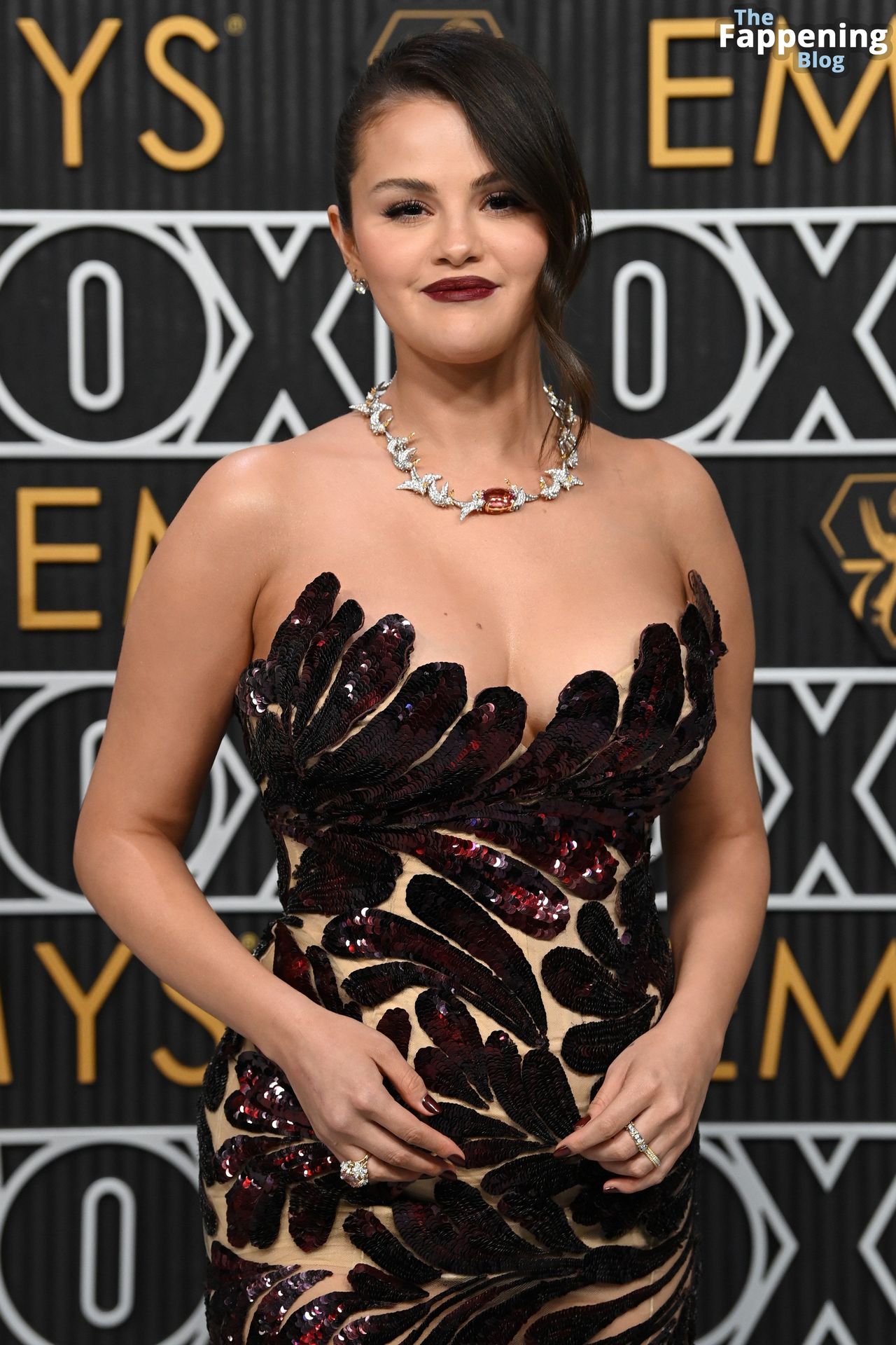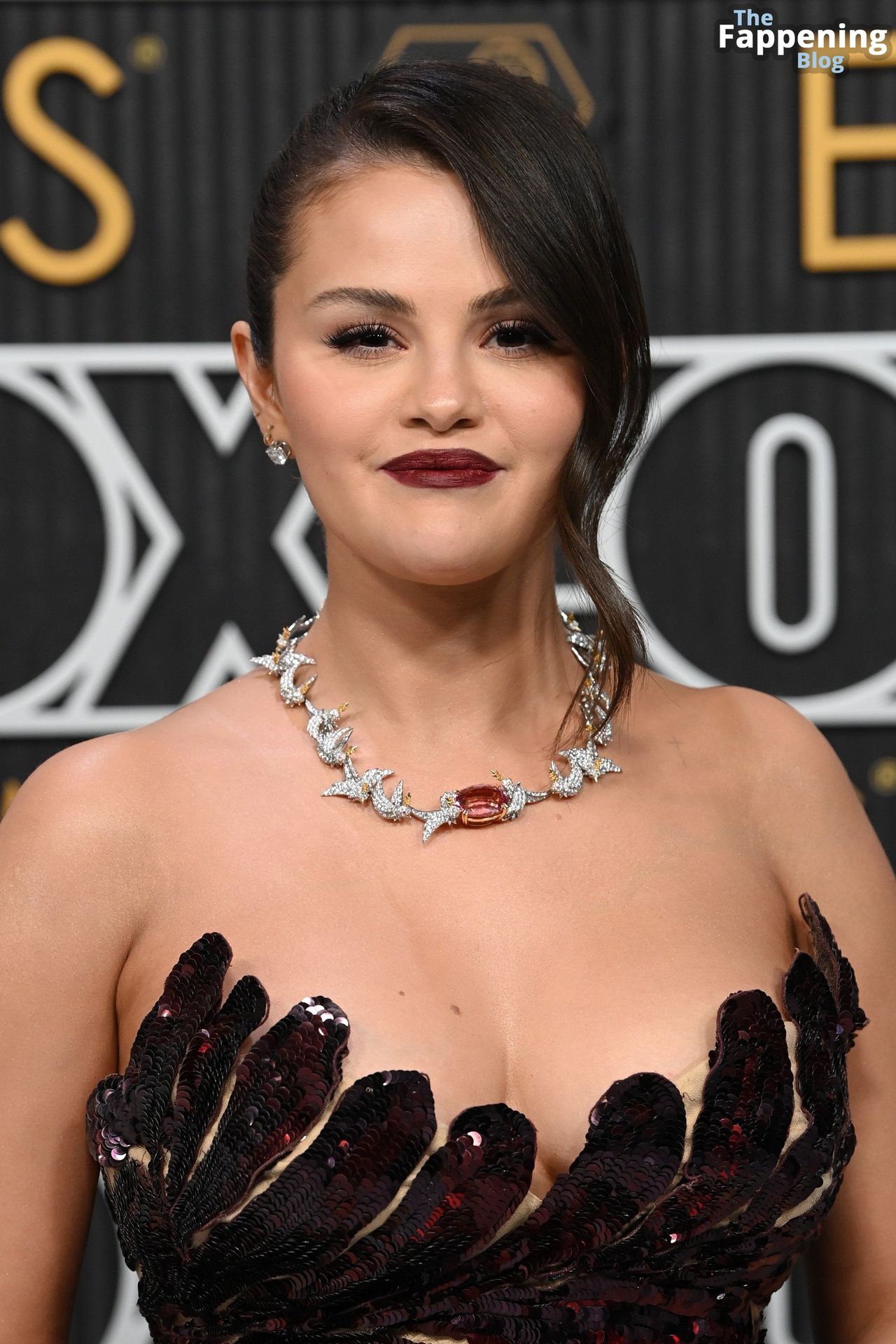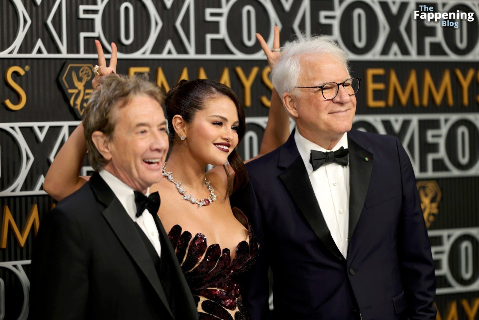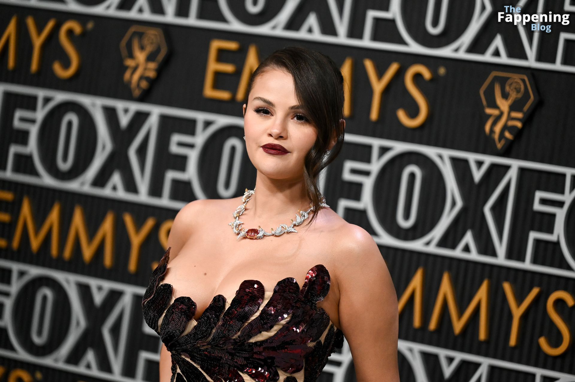 Selena Gomez aumenta a temperatura no evento com um decote sexy. Ela esteve presente na 75ª edição do Primetime Emmy Awards no Peacock Theater em 15 de janeiro de 2024, em Los Angeles, Califórnia.