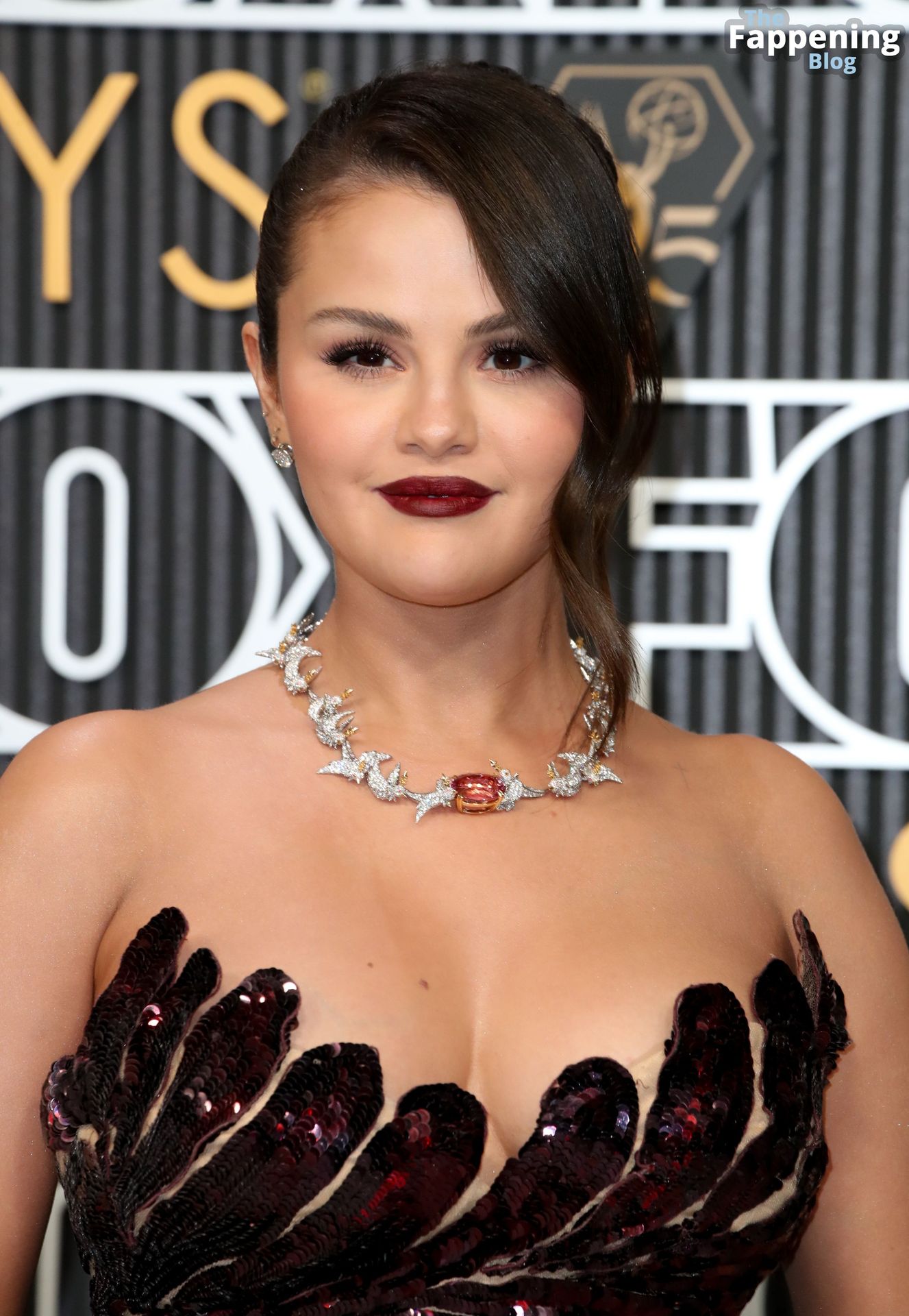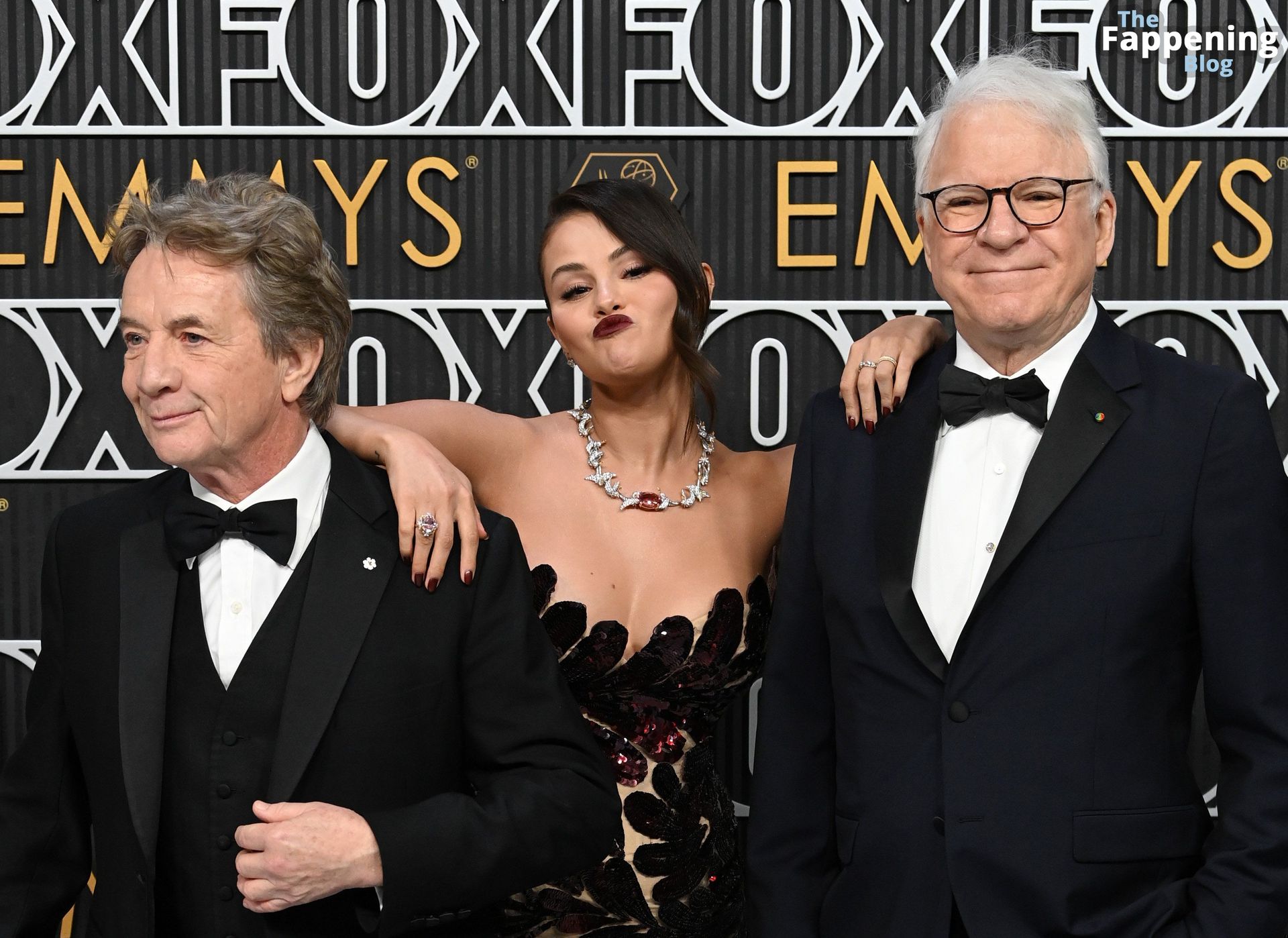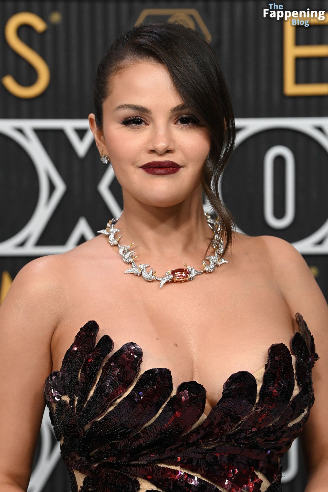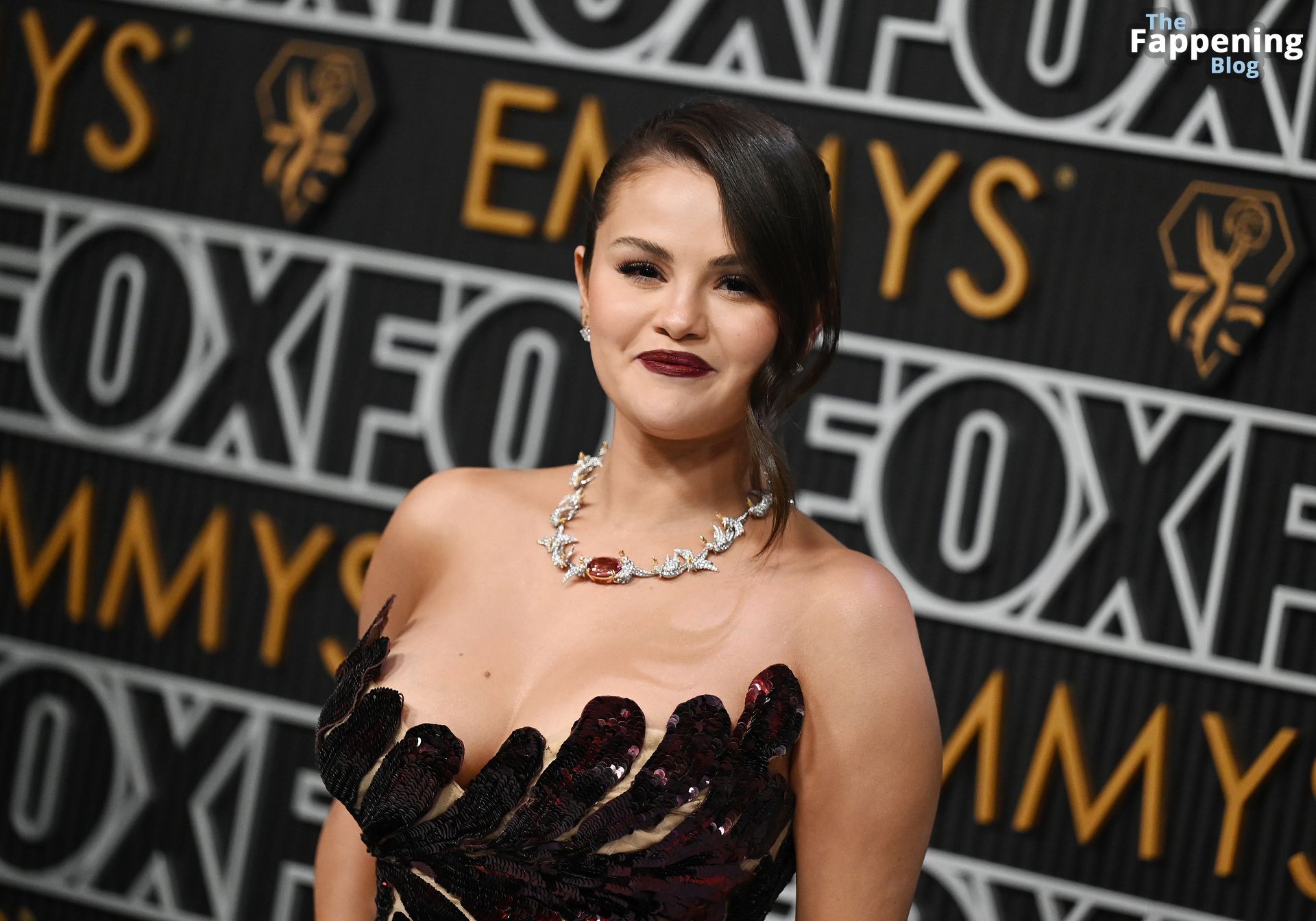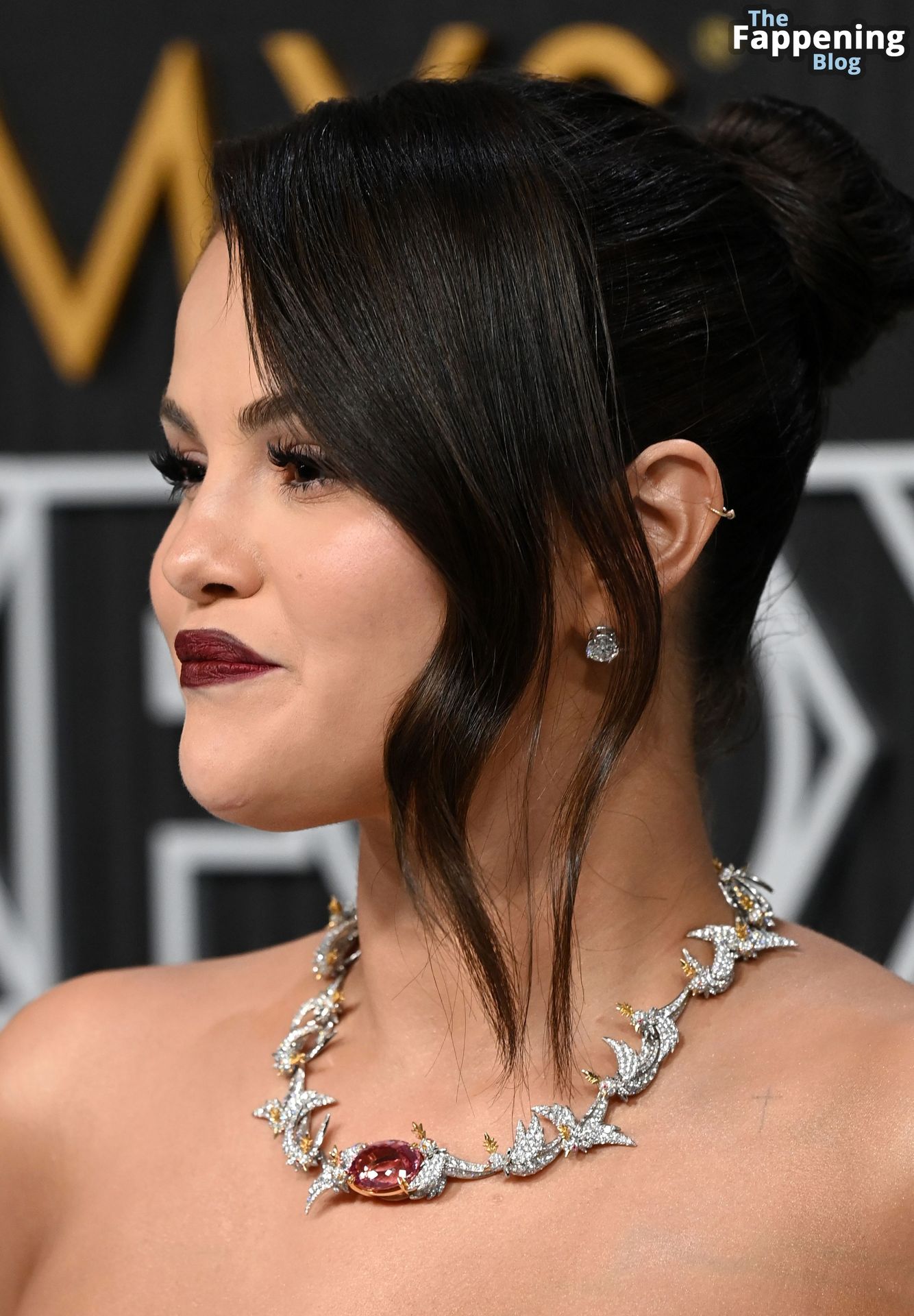 Selena Gomez aumenta a temperatura no evento com um decote sexy. Ela esteve presente na 75ª edição do Primetime Emmy Awards no Peacock Theater em 15 de janeiro de 2024, em Los Angeles, Califórnia.