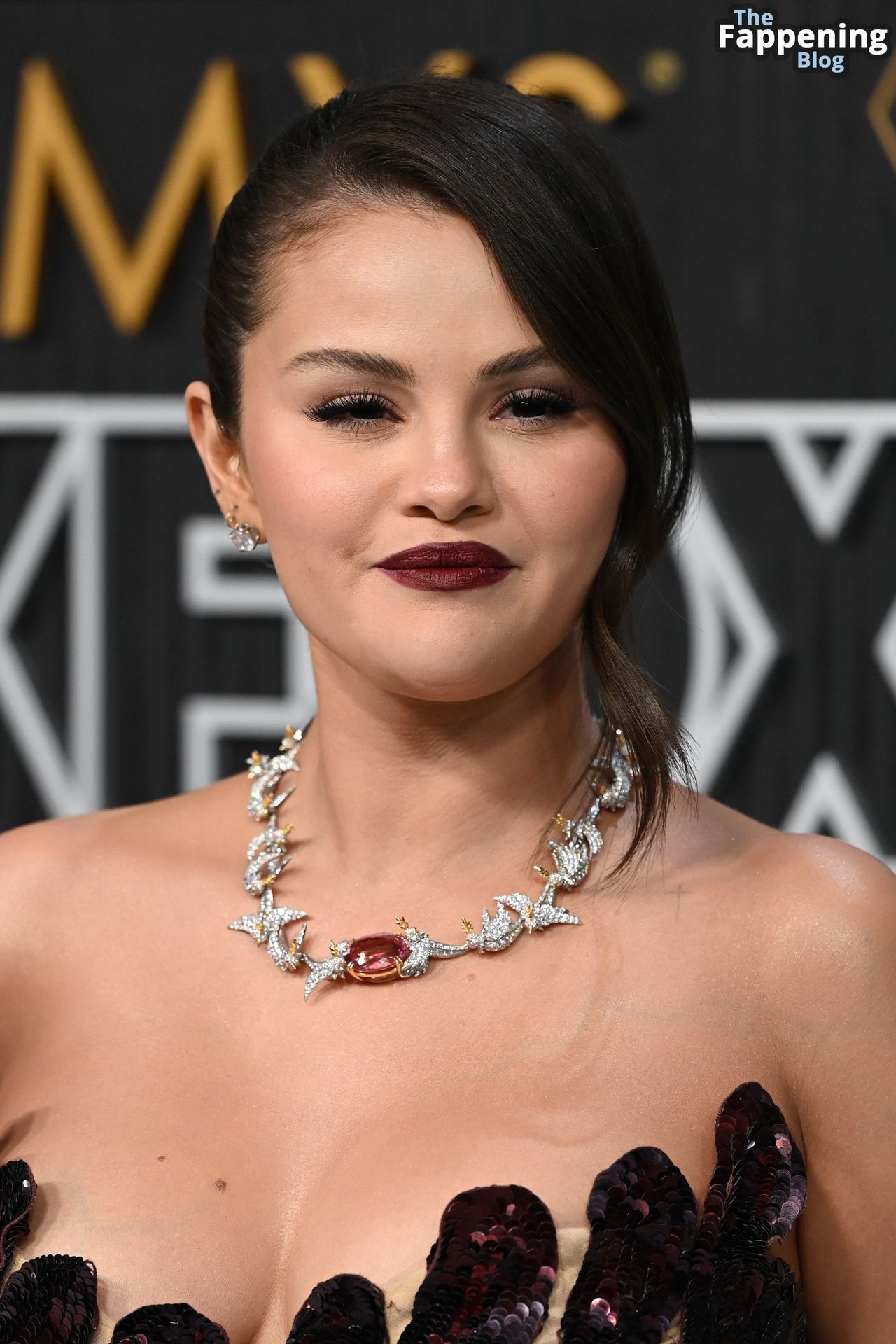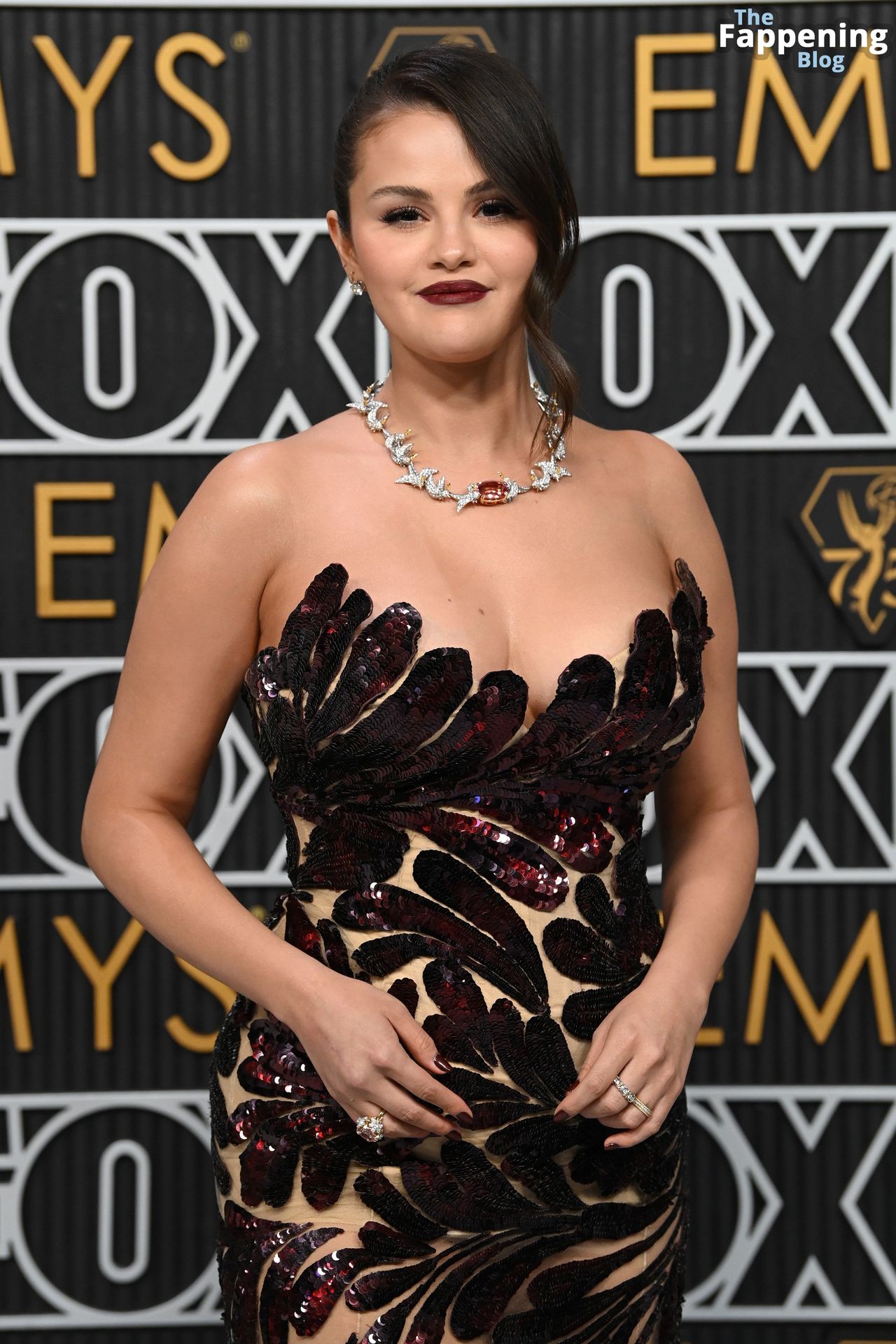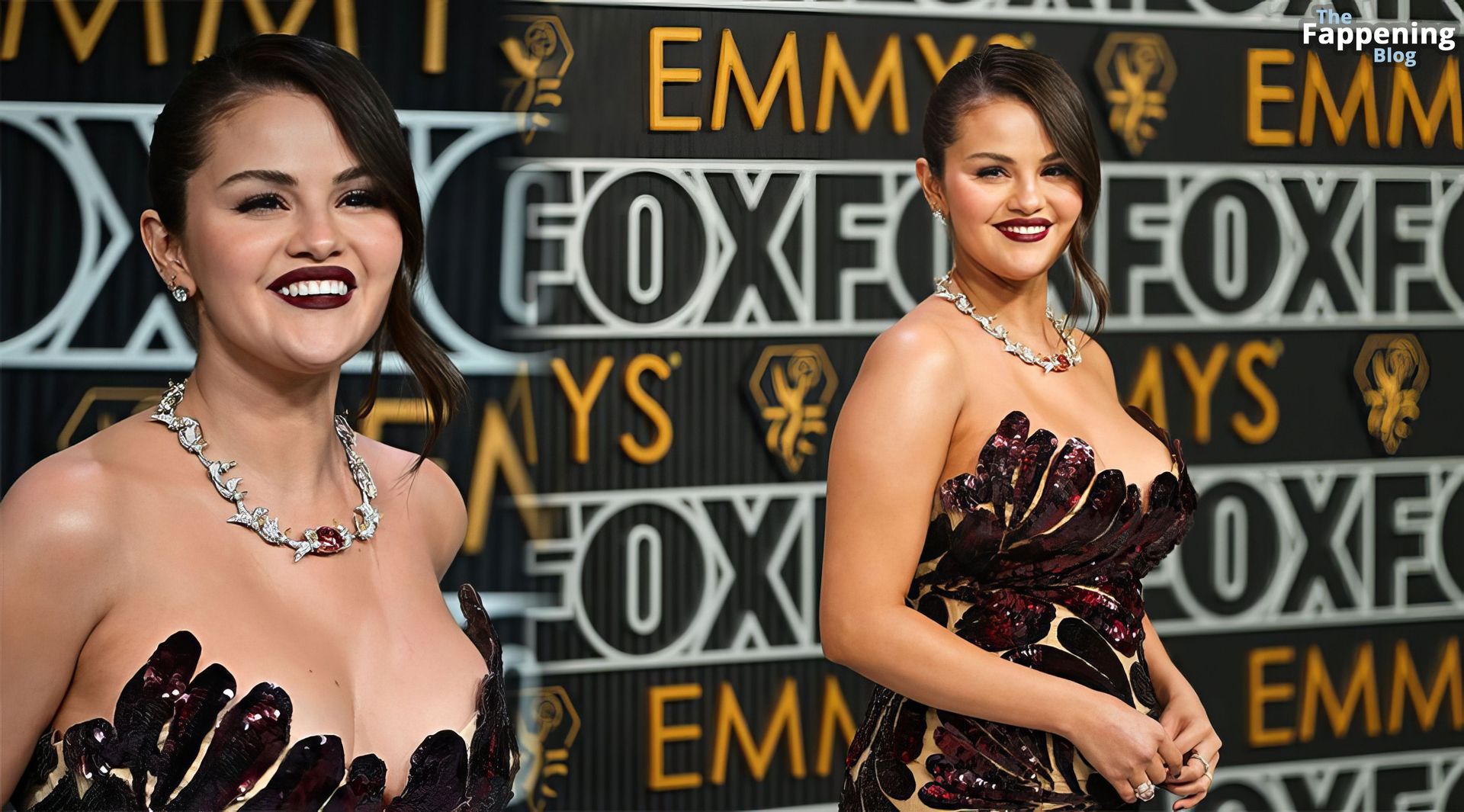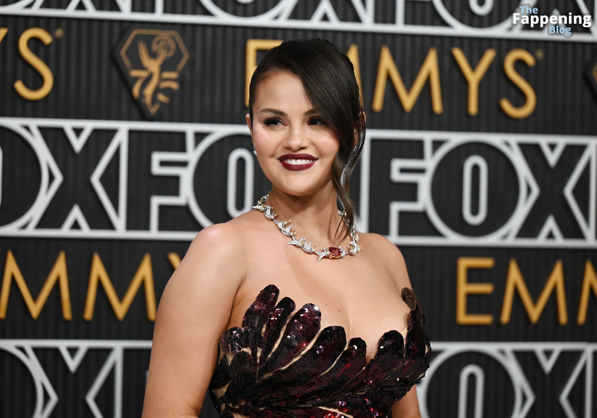 Selena Gomez aumenta a temperatura no evento com um decote sexy. Ela esteve presente na 75ª edição do Primetime Emmy Awards no Peacock Theater em 15 de janeiro de 2024, em Los Angeles, Califórnia.