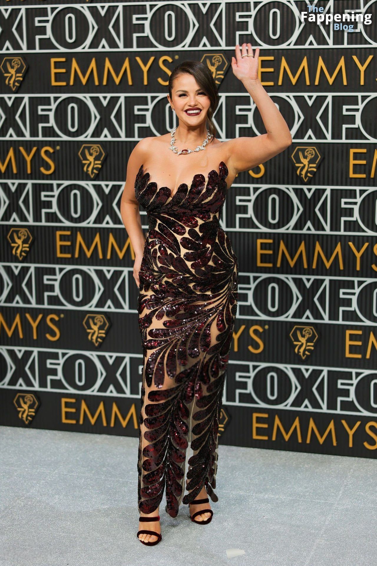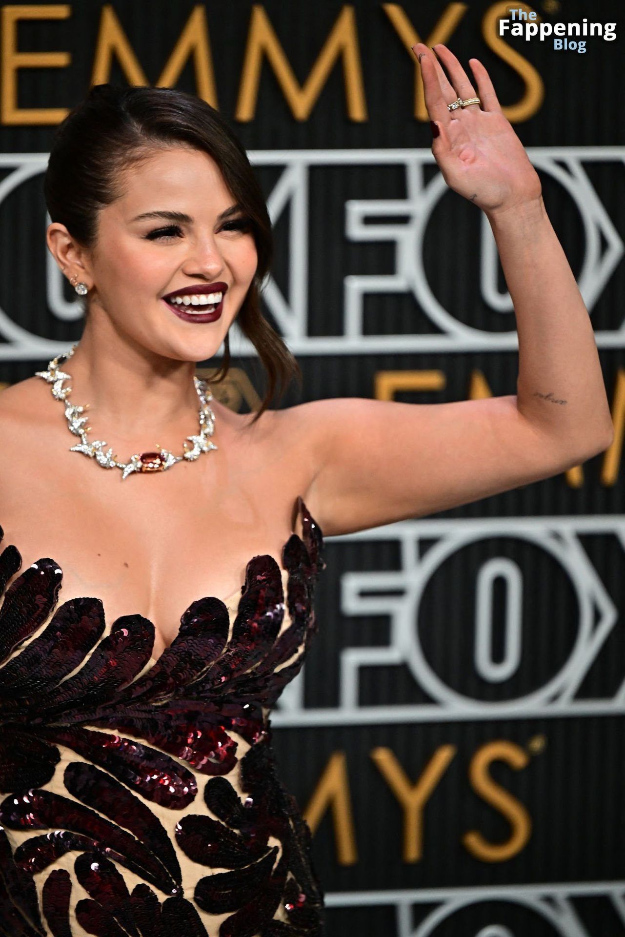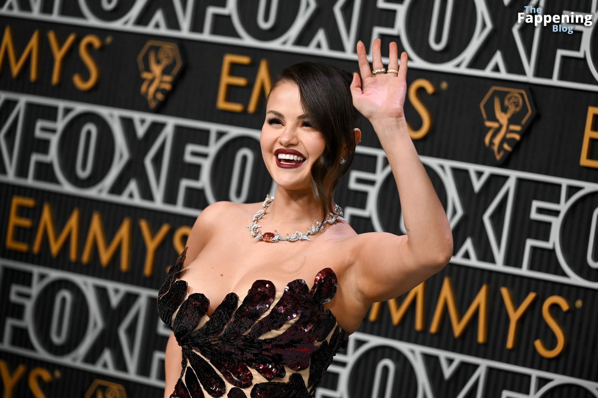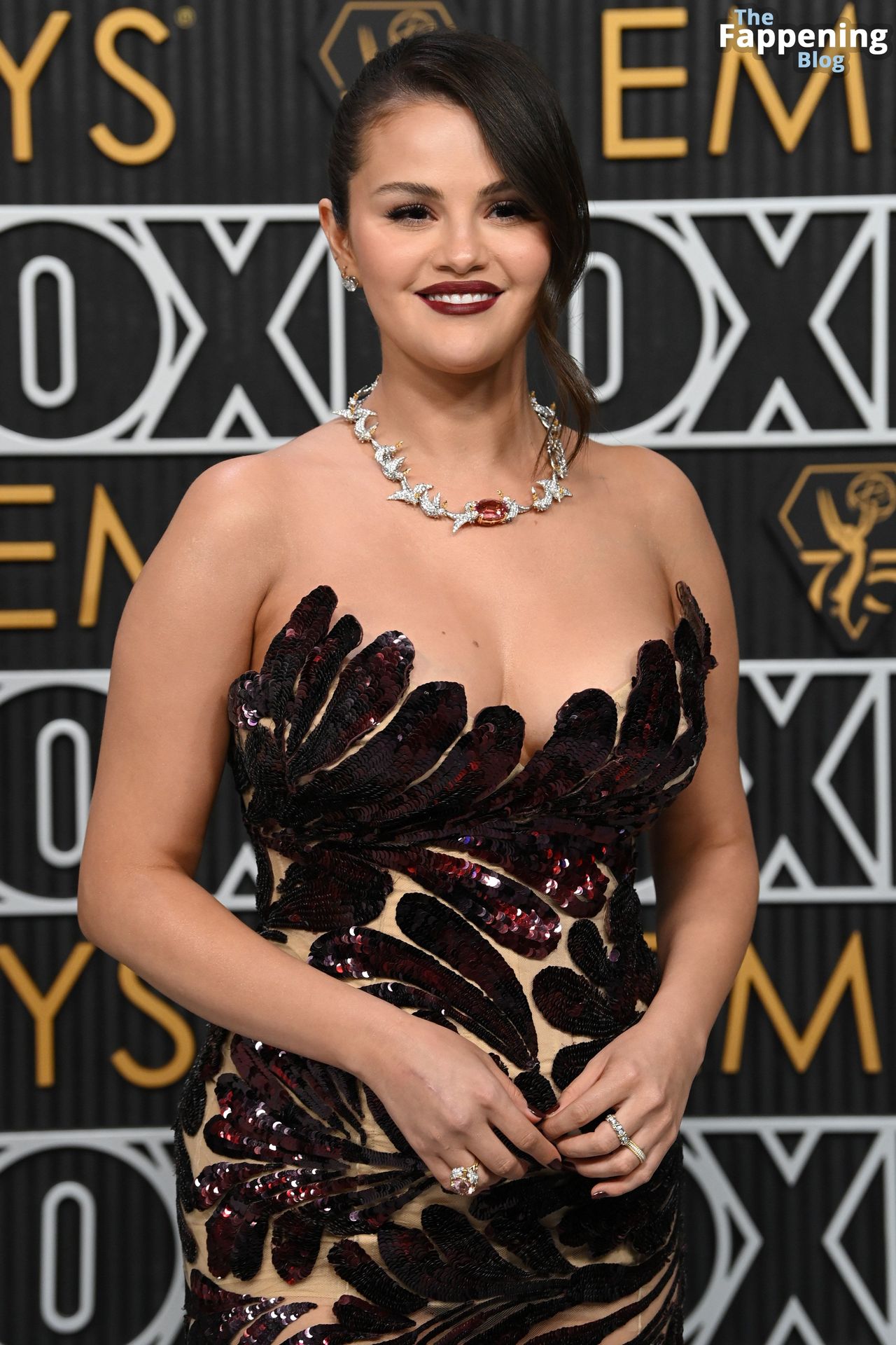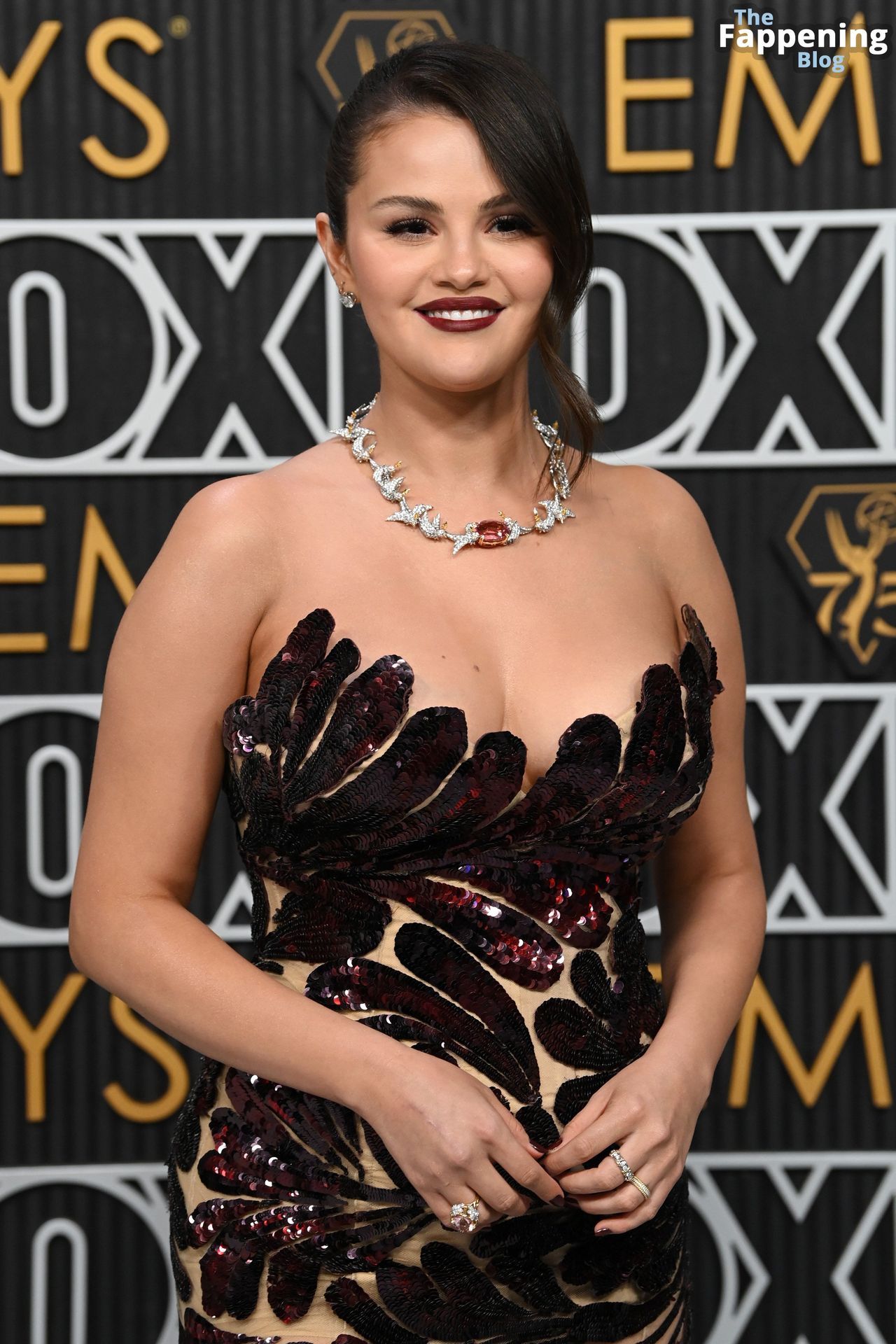 Selena Gomez aumenta a temperatura no evento com um decote sexy. Ela esteve presente na 75ª edição do Primetime Emmy Awards no Peacock Theater em 15 de janeiro de 2024, em Los Angeles, Califórnia.