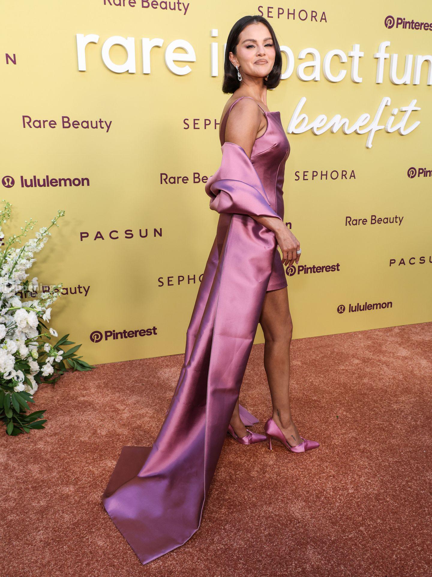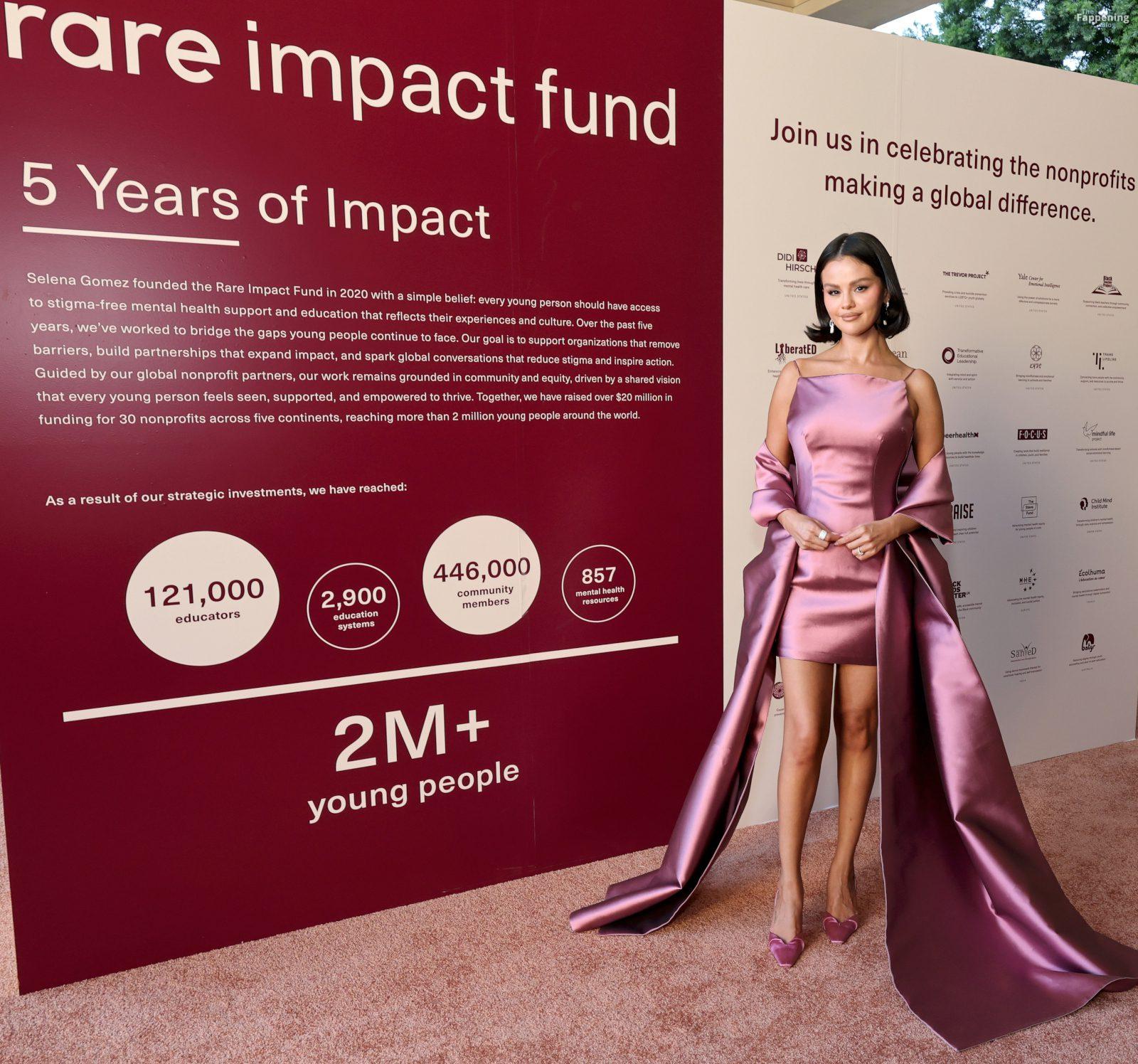 American actress, singer, producer, songwriter, and businesswoman Selena Gomez iluminou o 3º Benefício Anual do Rare Impact Fund em Hollywood, arrasando com um mini de cetim rosa que mostrava suas pernas deslumbrantes.