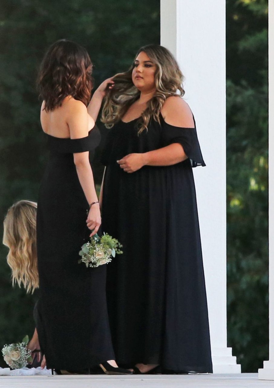 Ela usava um lindo vestido preto ombro a ombro para o evento romântico que aconteceu em um local isolado e bonito fora de sua cidade natal, Dallas. Em um momento durante as núpcias da tarde, a jovem de 26 anos pareceu desmaiar e se afastou para beber água rapidamente.