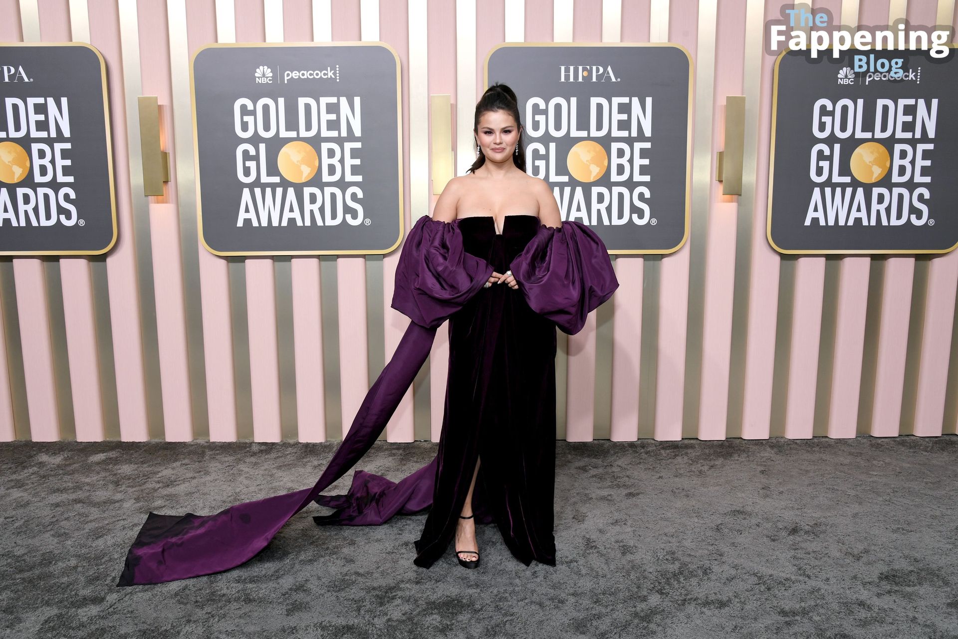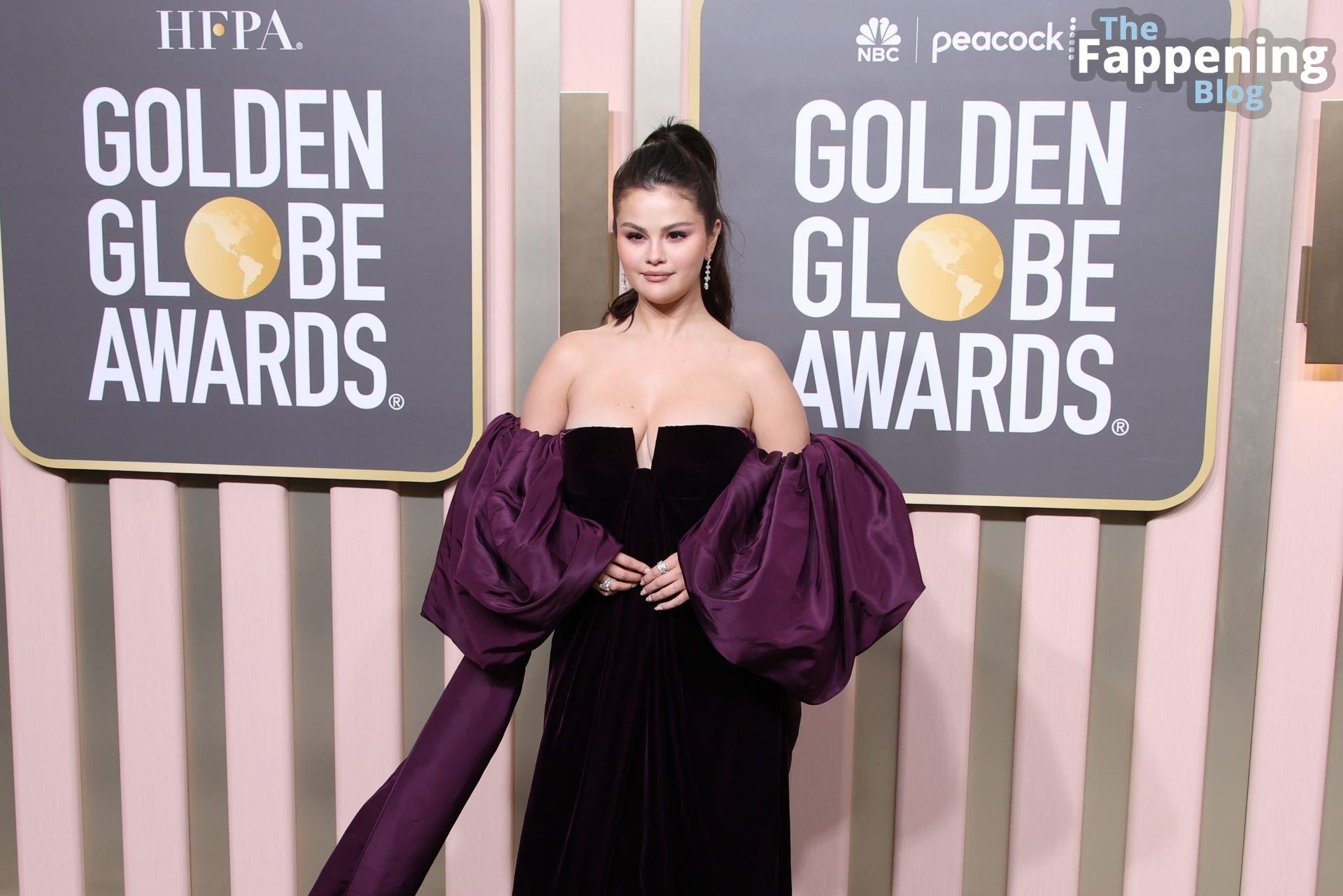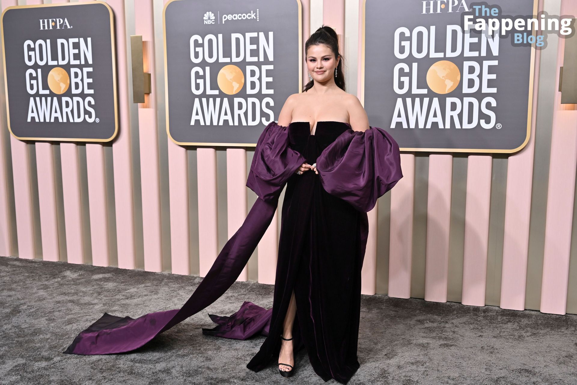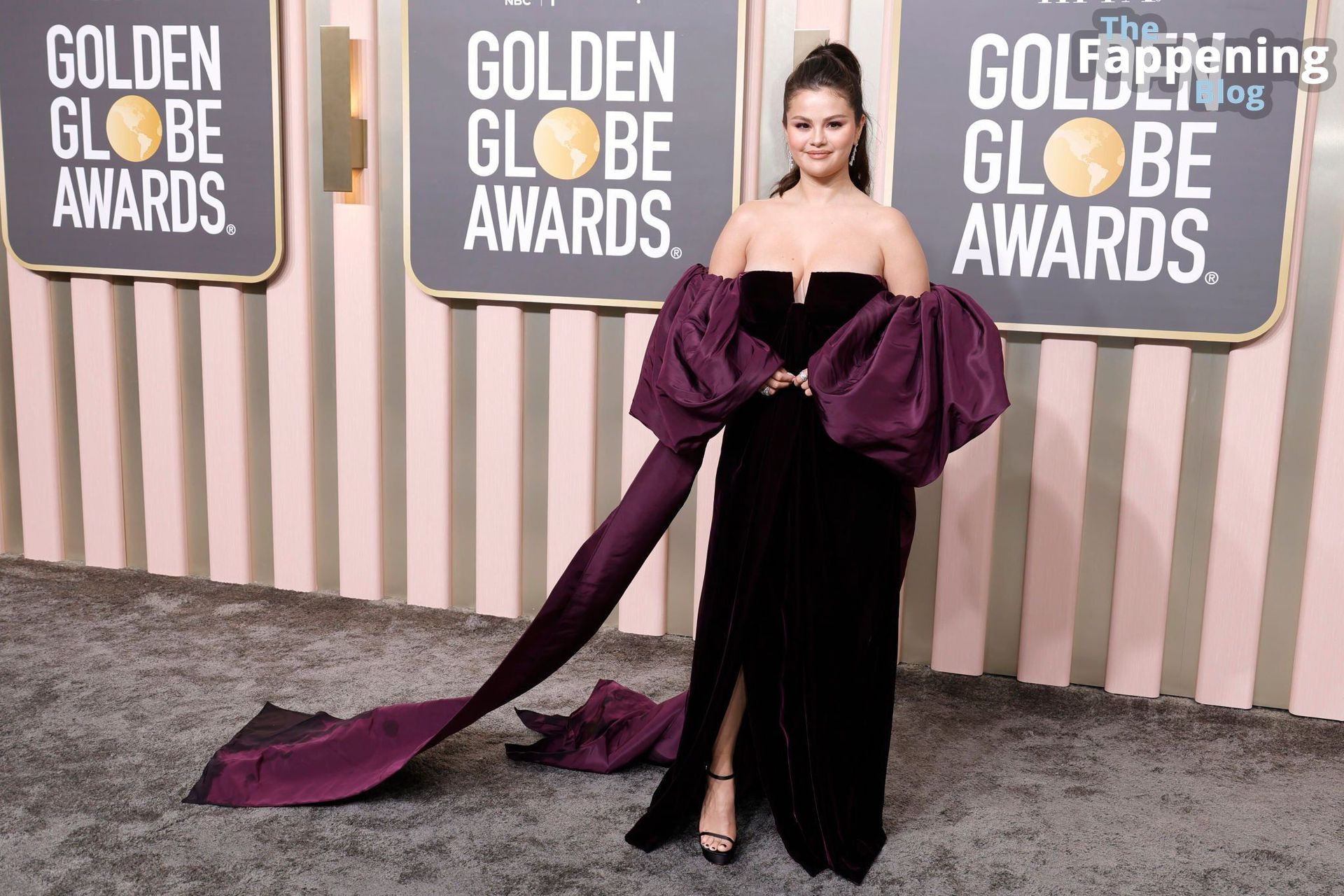 Singer and The Fappening Star Selena Gomez posa no tapete vermelho do 80º Globo de Ouro Anual no Beverly Hilton em Beverly Hills, 01/10/2023.