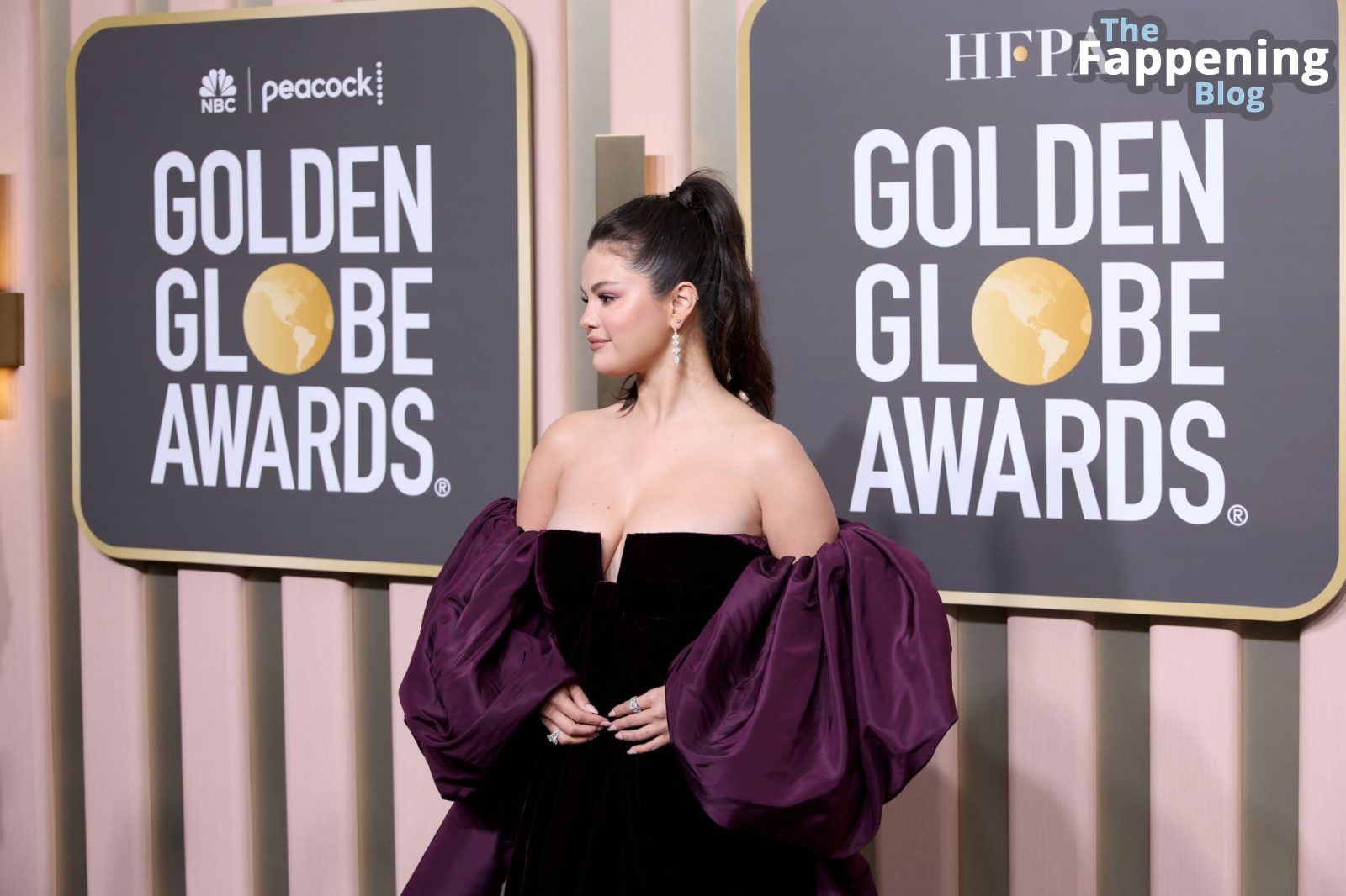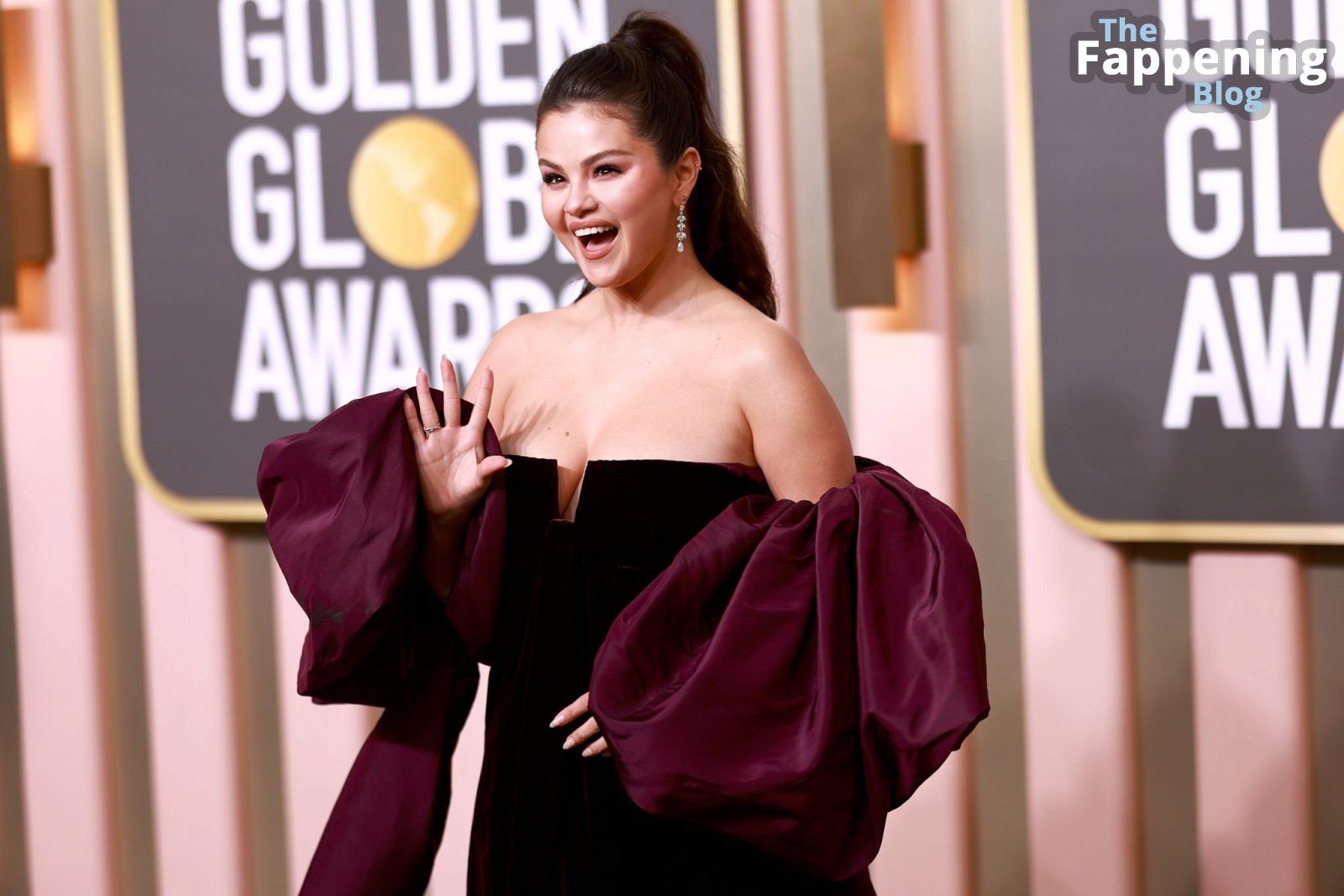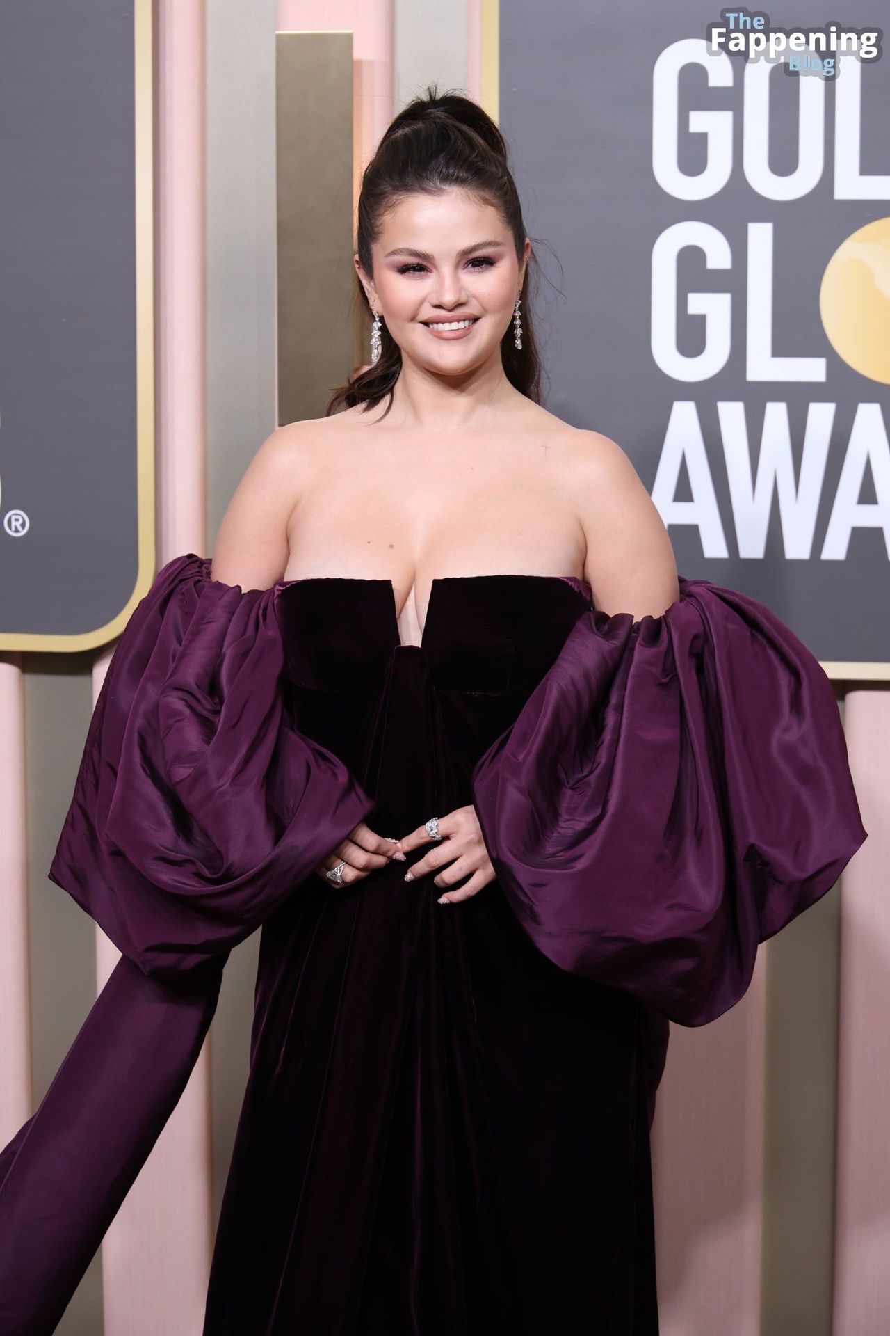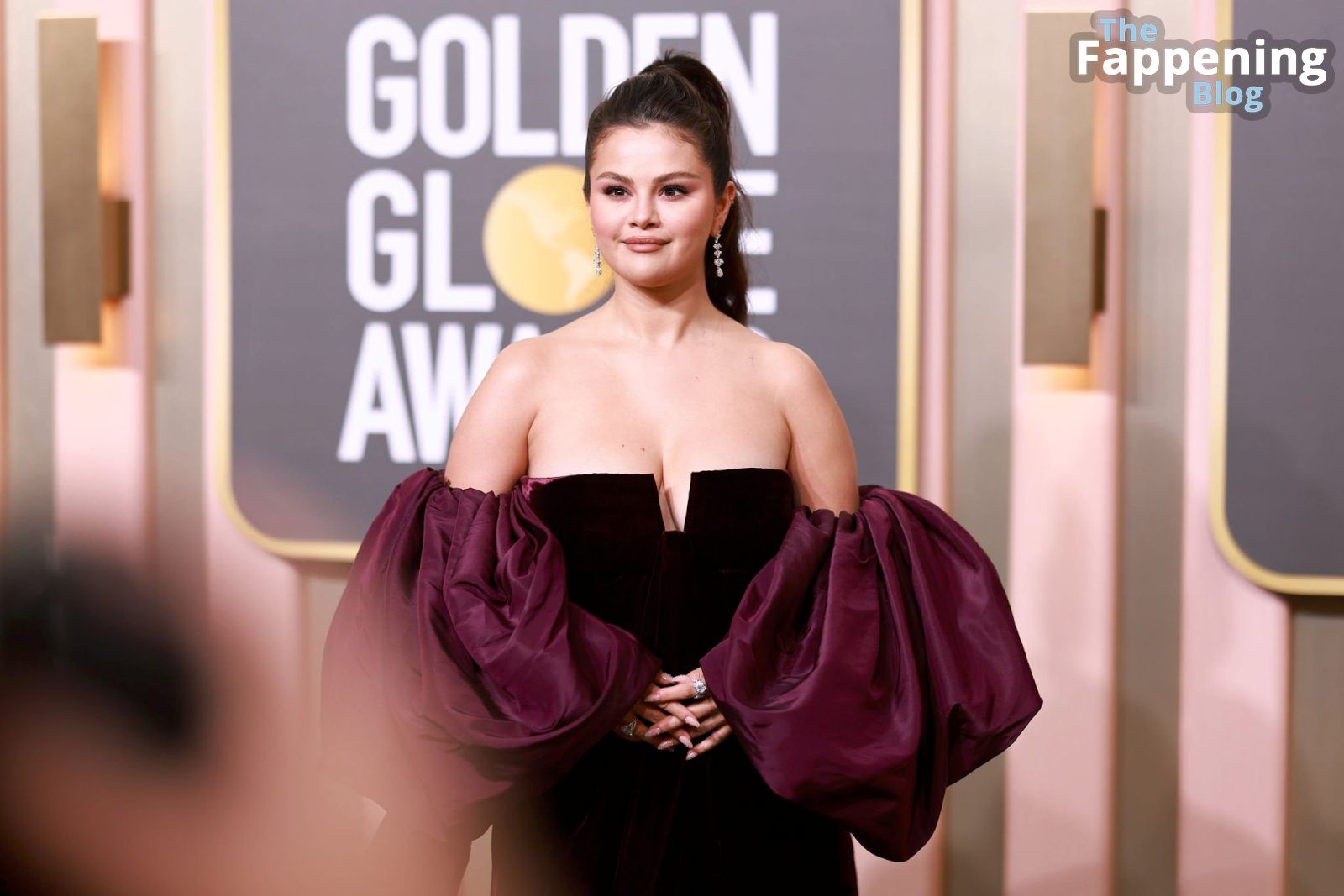 Singer and The Fappening Star Selena Gomez posa no tapete vermelho do 80º Globo de Ouro Anual no Beverly Hilton em Beverly Hills, 01/10/2023.