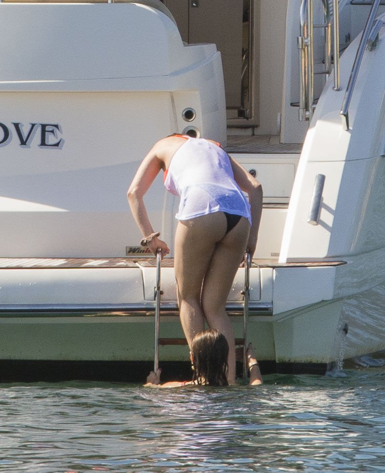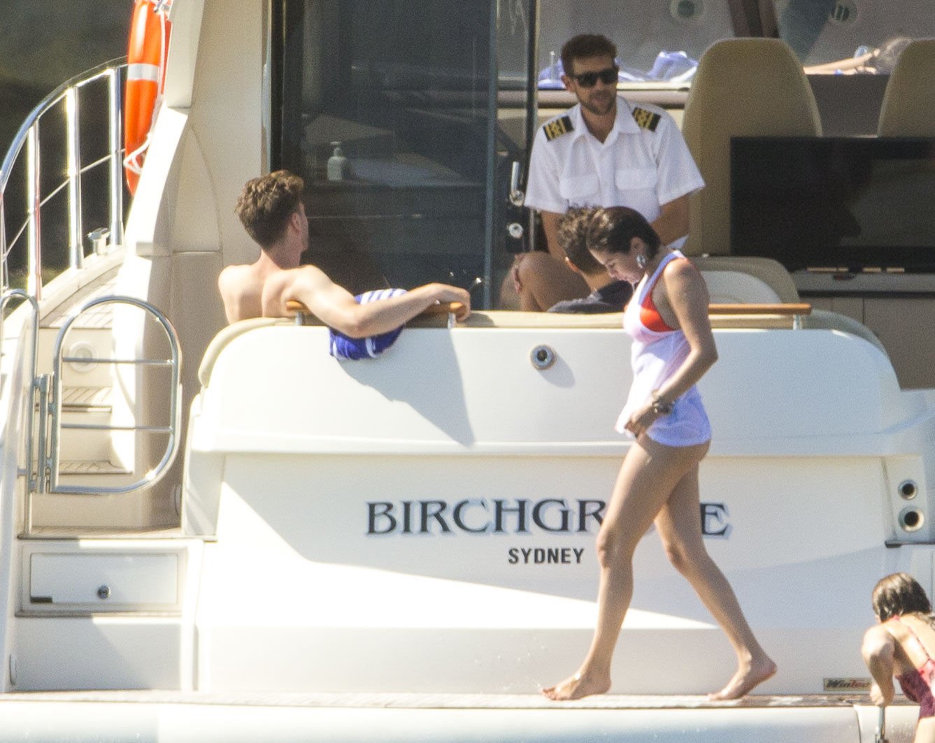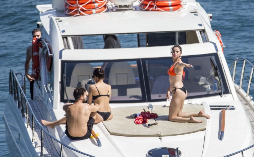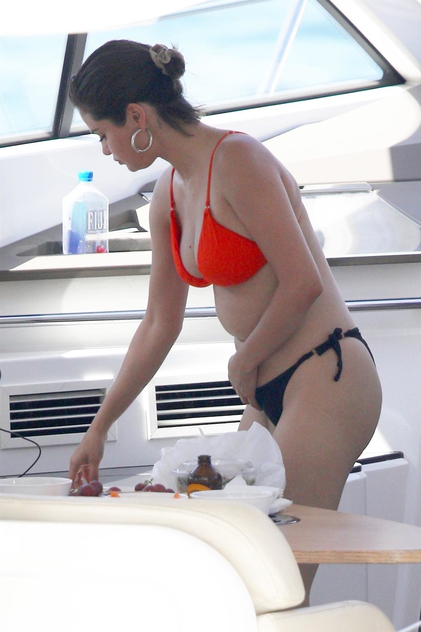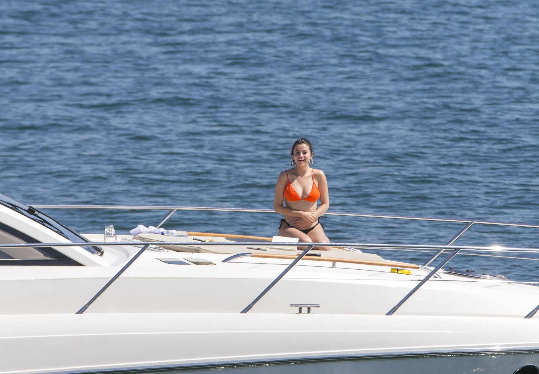 A cantora Selena Gomez nunca teve vergonha de seu corpo flácido, sem efeitos do Instagram ou Photoshop. Ela aproveitou suas férias de biquíni preto e laranja em um barco com amigos pelo Porto de Sydney, em 19/03/2018. Hematomas, barriga e bumbum gordos, penteado simples. Sem edições, ela parece natural!