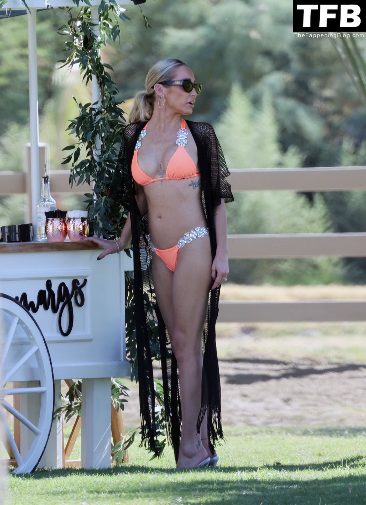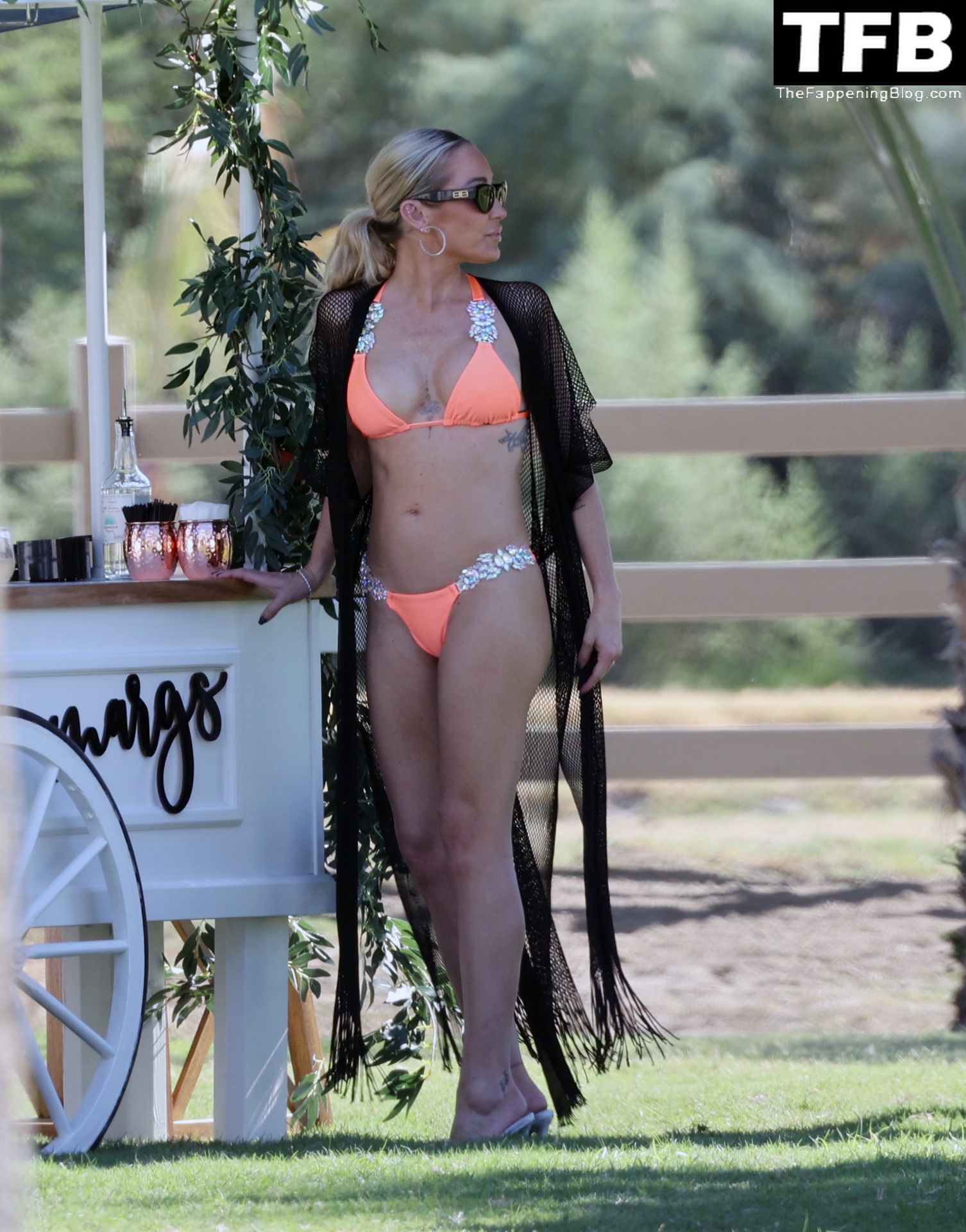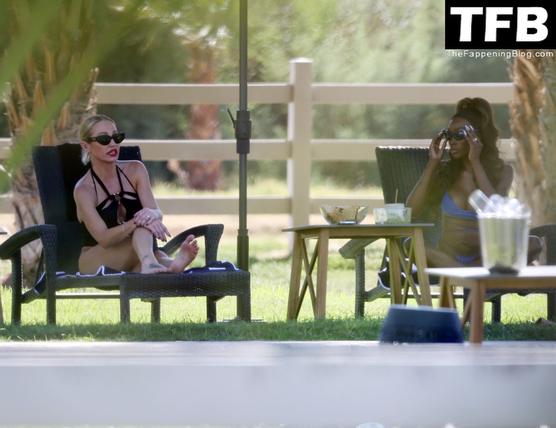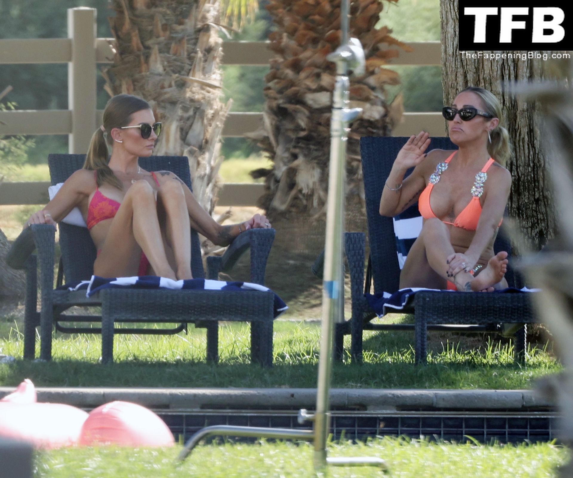 “Selling Sunset” foi visto filmando a 6ª temporada em La Quinta, Califórnia, 07/10/2022. Na foto no set estava a novata Nicole Young, que se juntou às veteranas Mary Fitzgerald e Chelsea Lazkani. As garotas usavam biquínis enquanto desfrutavam de coquetéis à beira da piscina durante as filmagens do programa.