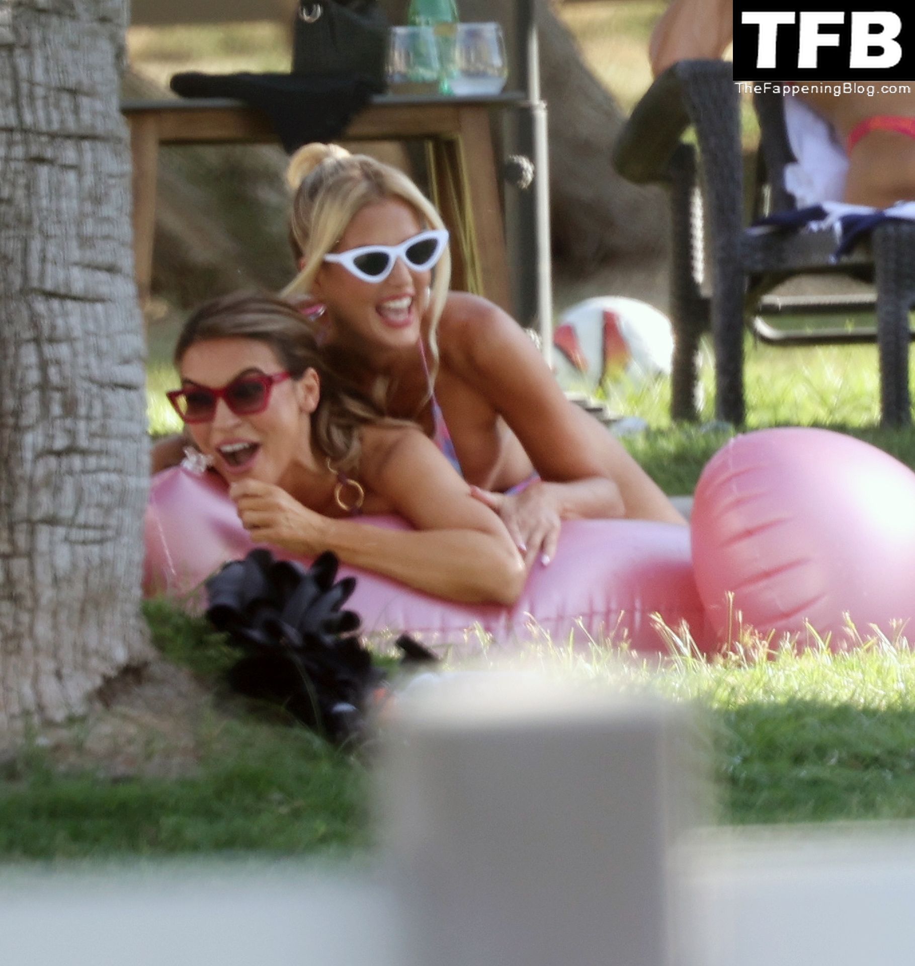 Chrishell Stause, Mary Fitzgerald, Nicole Young, Amanda Smith e Emma Empanada foram vistas usando biquínis enquanto filmavam à beira da piscina em um resort.