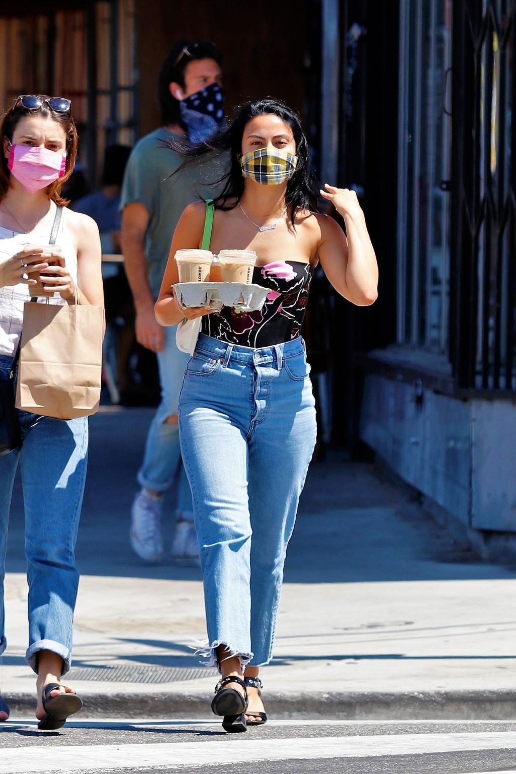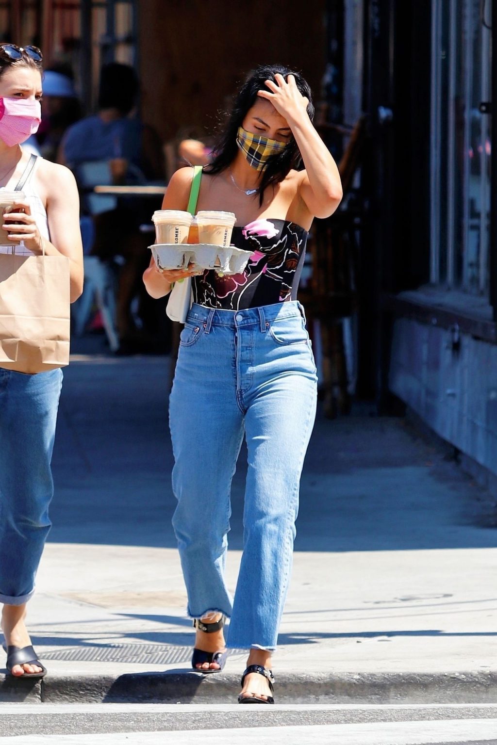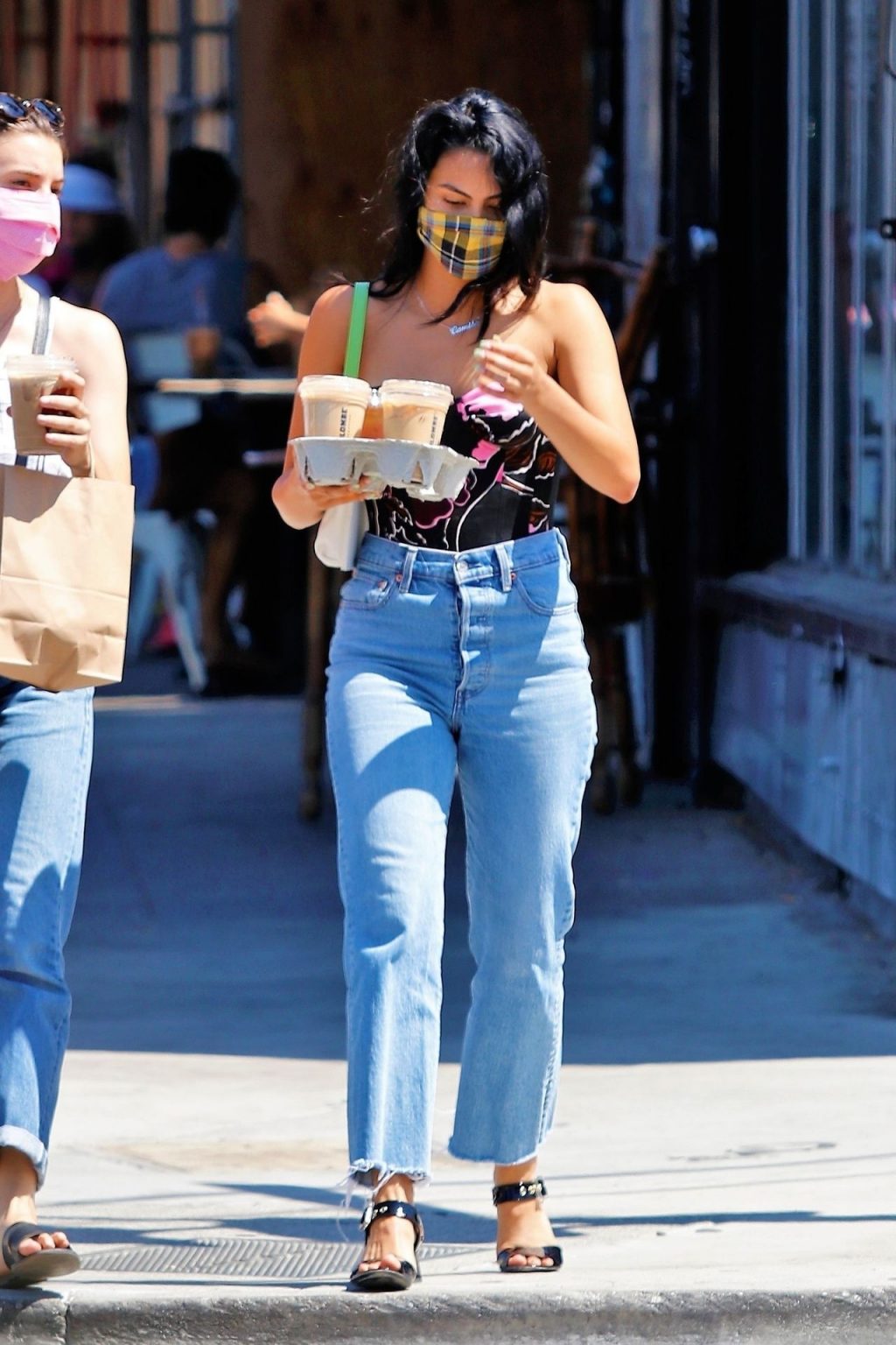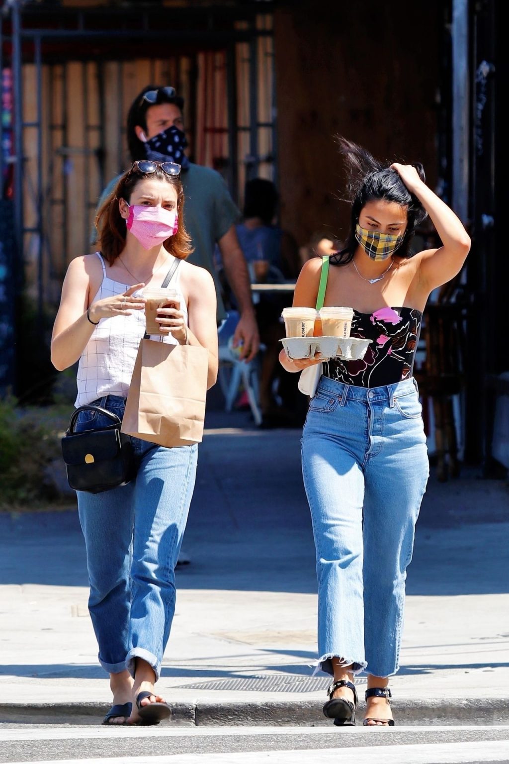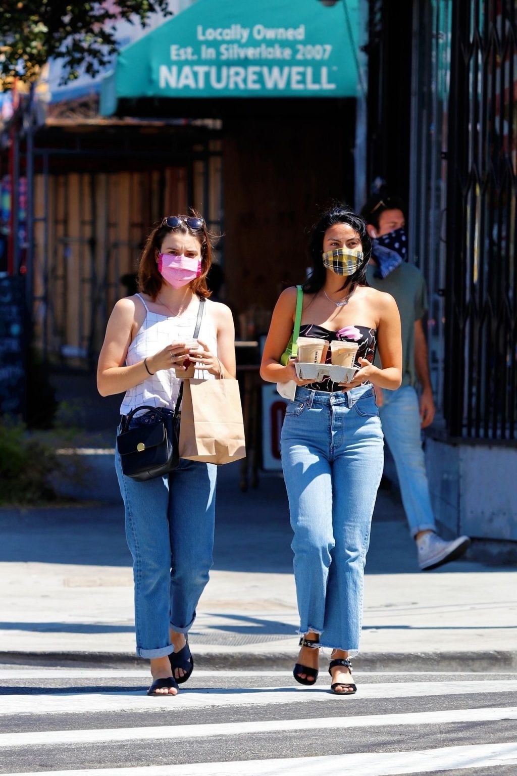 Atriz Camila Mendes é vista fazendo uma parada em um Starbucks local esta tarde com uma amiga e pega alguns cafés gelados para enfrentar a onda de calor – Los Angeles, 20/07/2020.