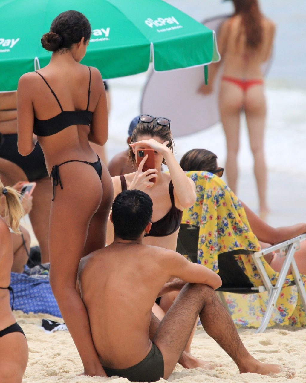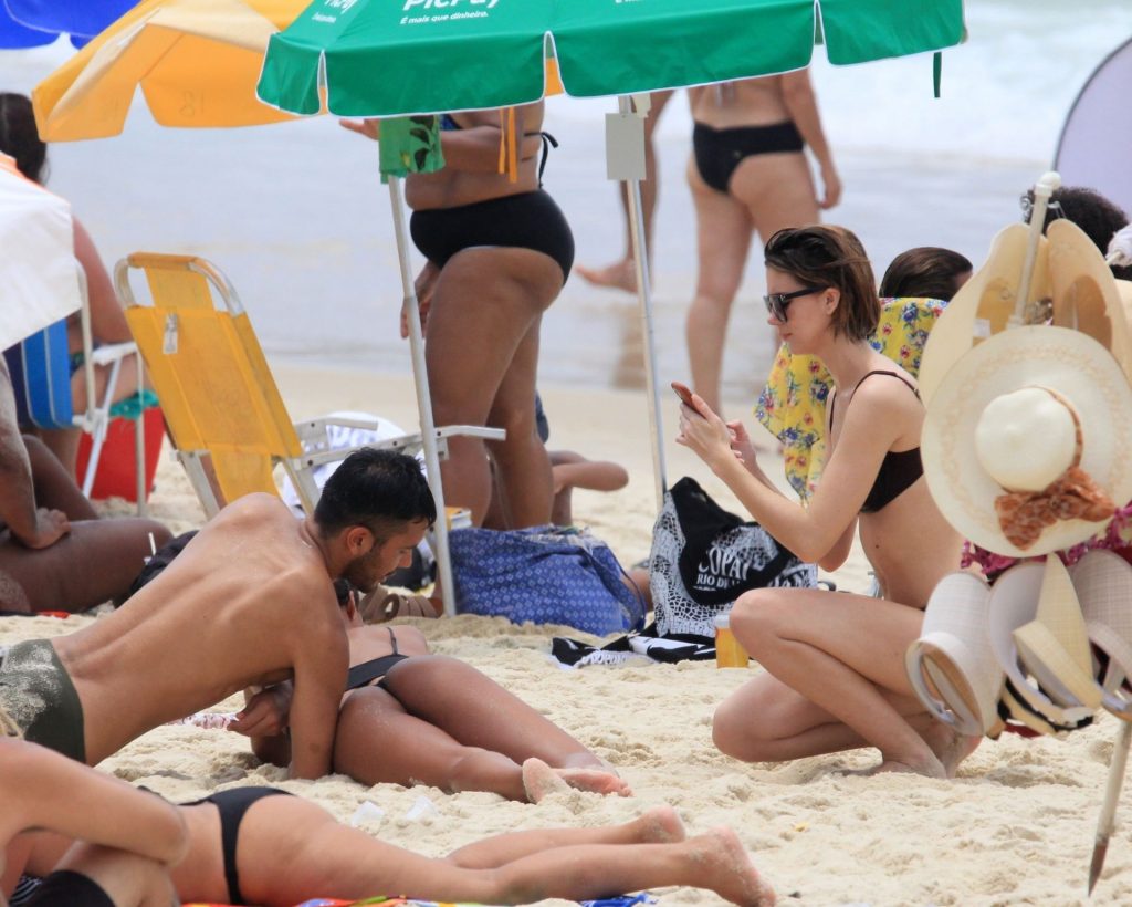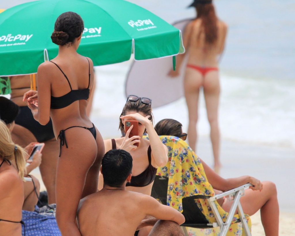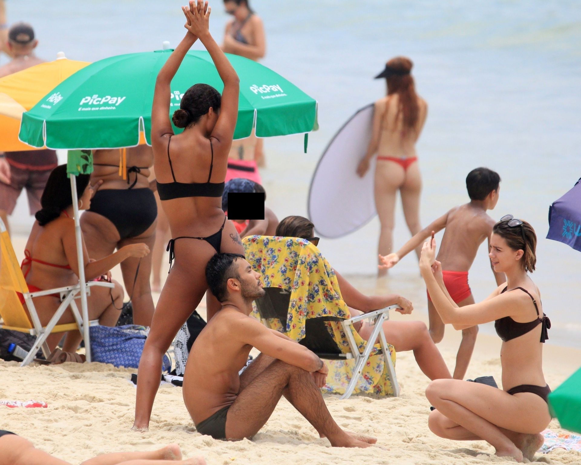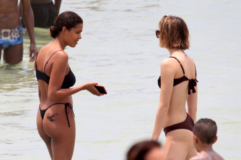 Vincent Cassel e sua esposa Tina Kunakey aproveitam suas férias no Rio de Janeiro, 21/01/2020. Tina exibe sua silhueta enquanto passa um dia divertido na praia com suas amigas e até faz uma tatuagem temporária de escorpião na bunda.