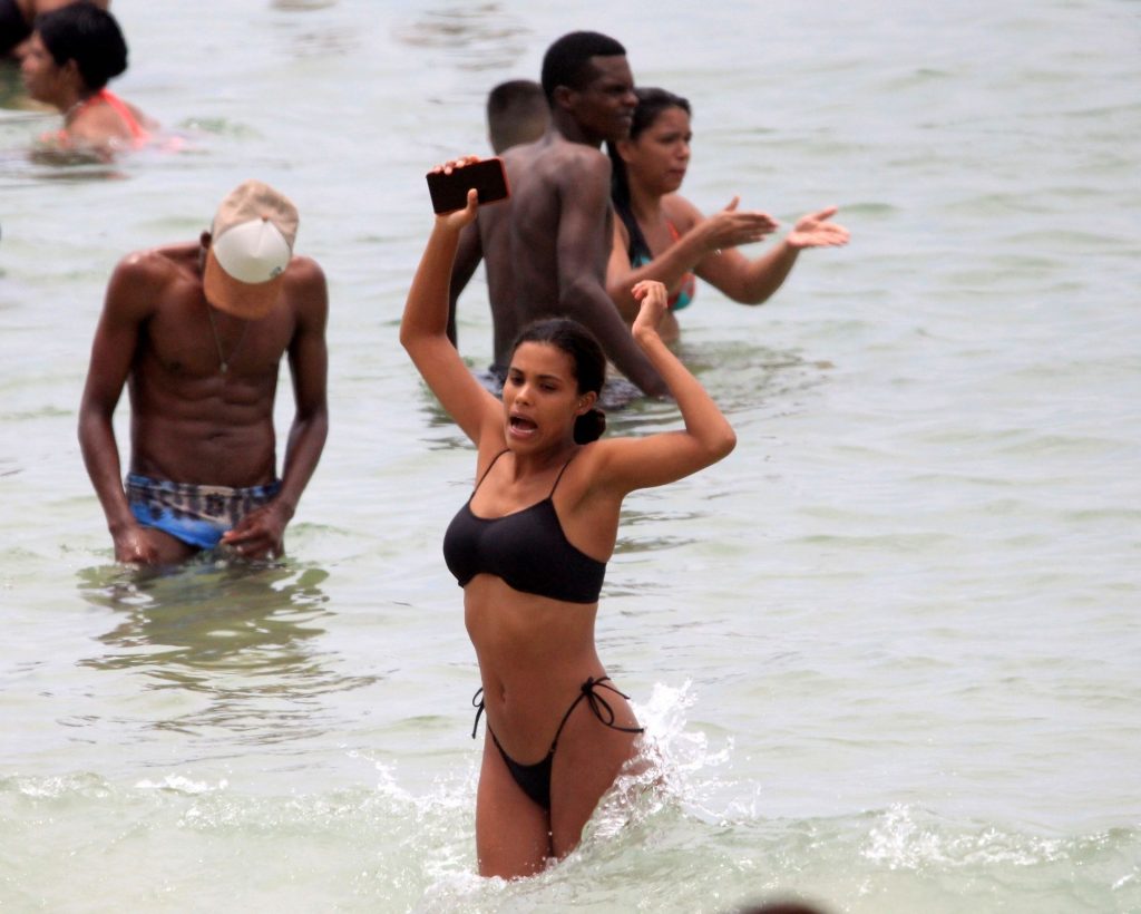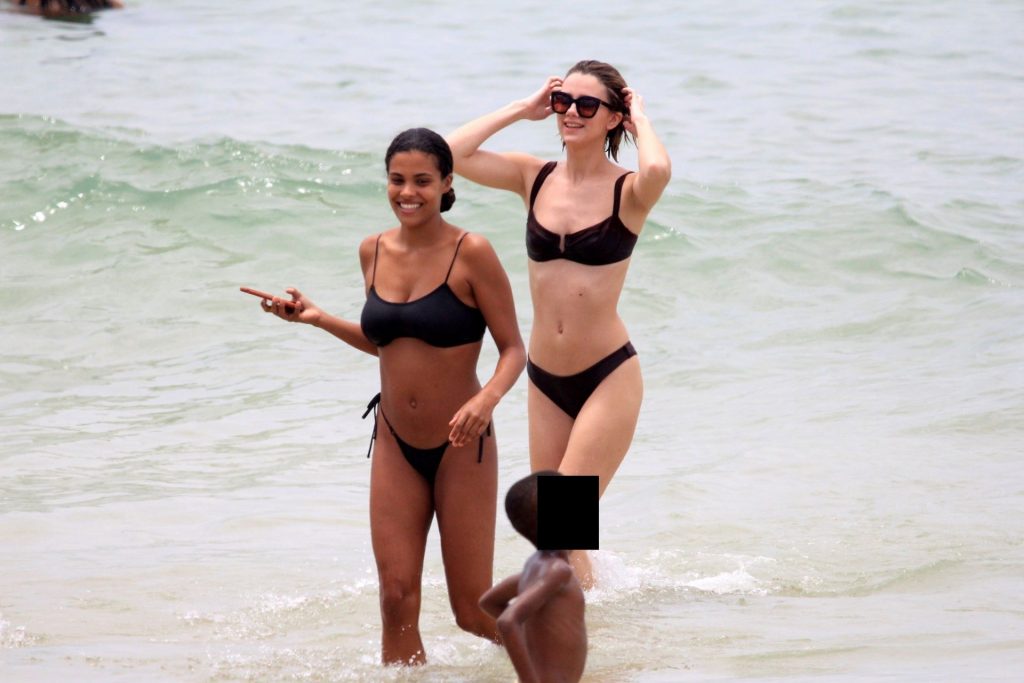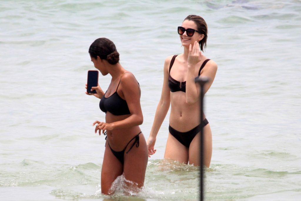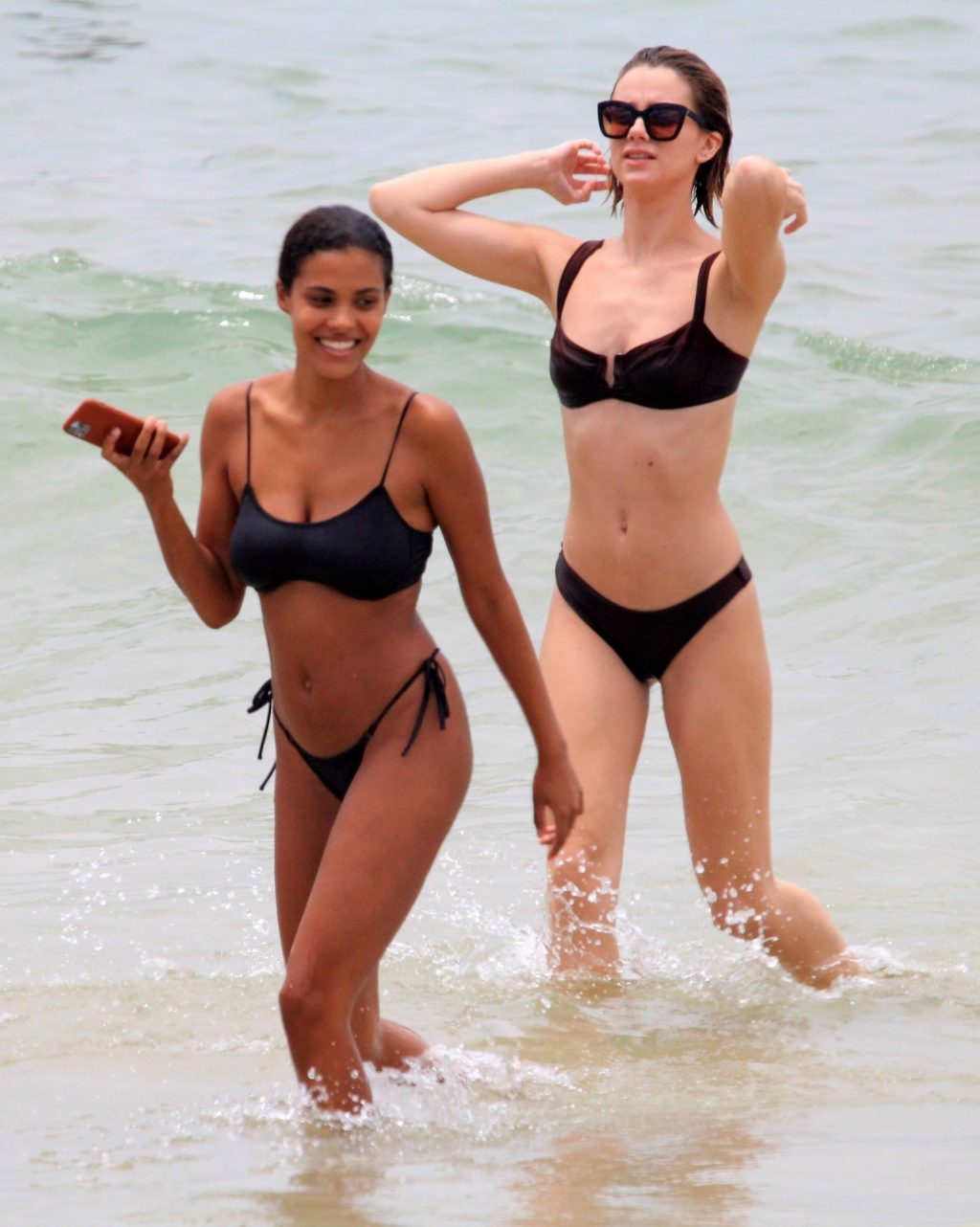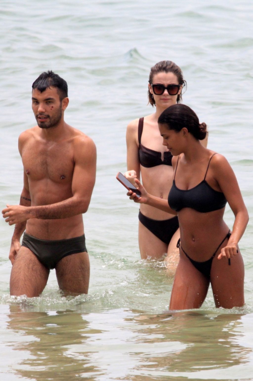Vincent Cassel e sua esposa Tina Kunakey aproveitam suas férias no Rio de Janeiro, 21/01/2020. Tina exibe sua silhueta enquanto passa um dia divertido na praia com suas amigas e até faz uma tatuagem temporária de escorpião na bunda.