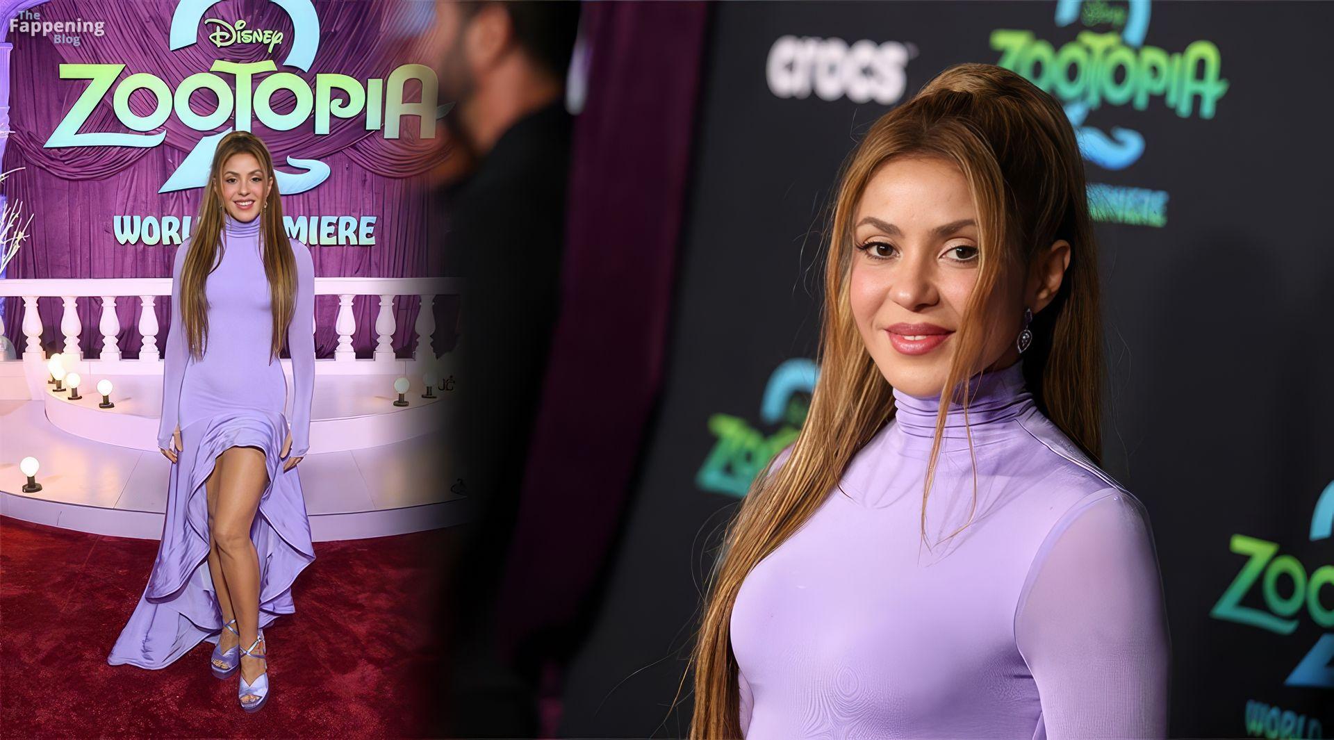 Shakira brilha na premiere de “Zootopia 2” com um vestido lavanda transparente e fenda alta, exibindo suas pernas sexy. A cantora foi fotografada com os filhos Sasha e Milan Piqué Mebarak no palco do El Capitan Theatre em Los Angeles, Califórnia.