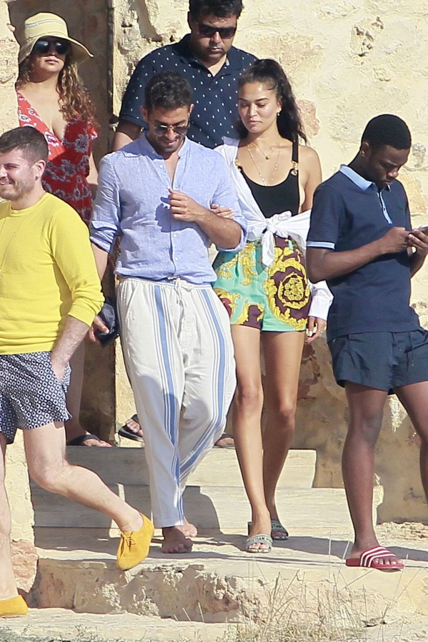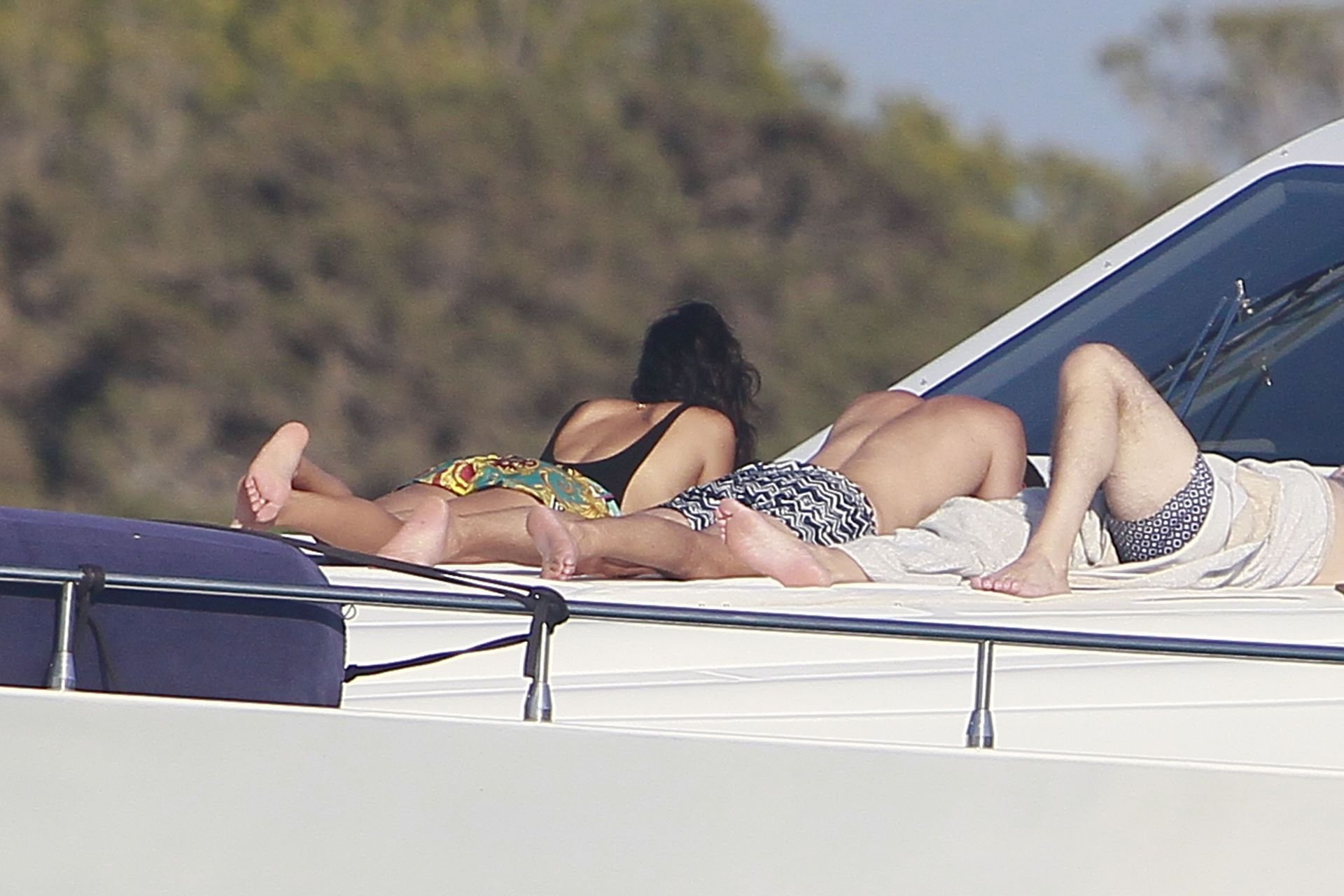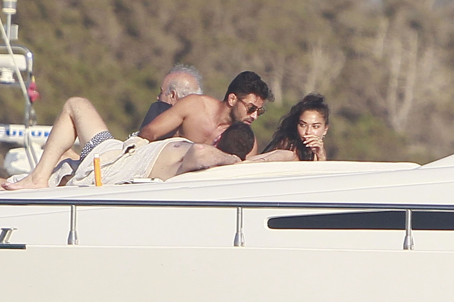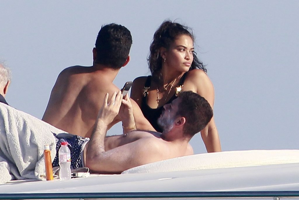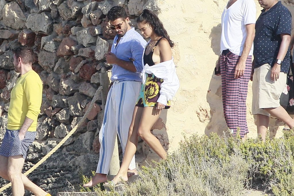 Model Shanina Shaik aproveita mais um dia a bordo de um iate com amigos e um homem desconhecido em Formentera, Espanha, 16/08/2019.