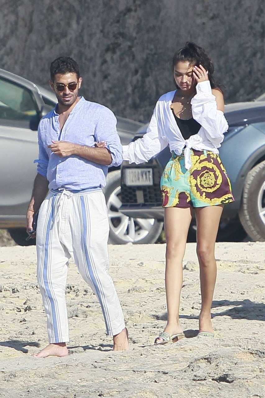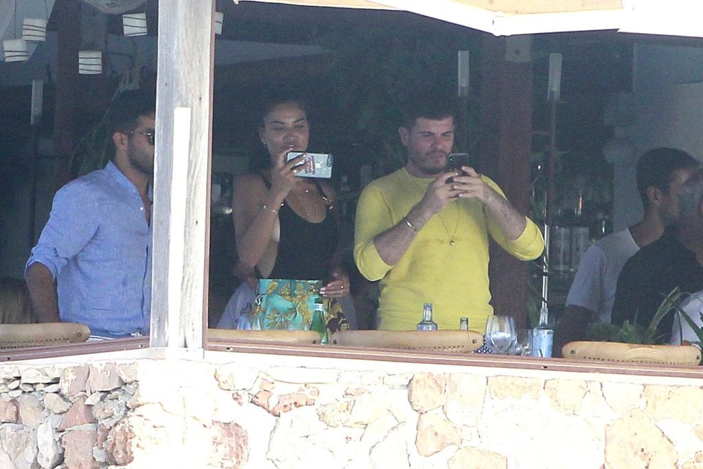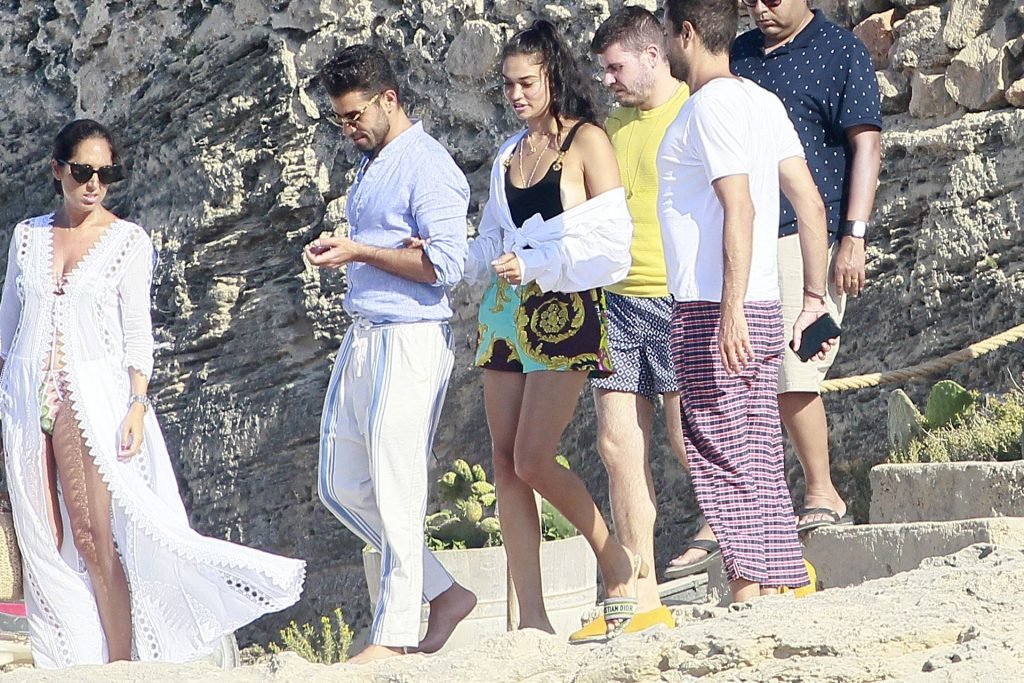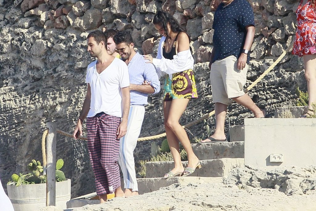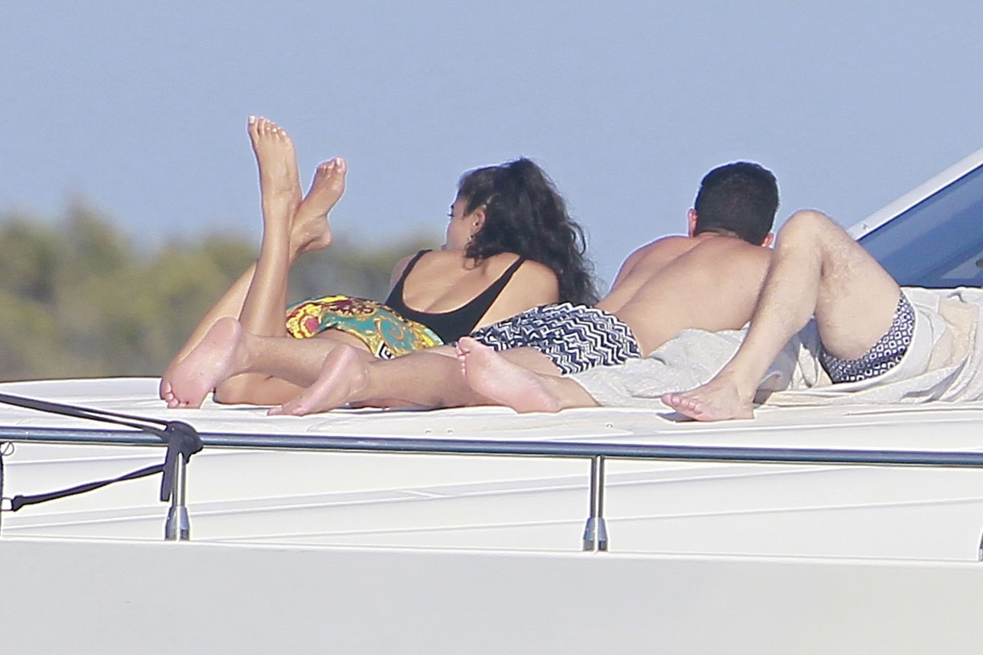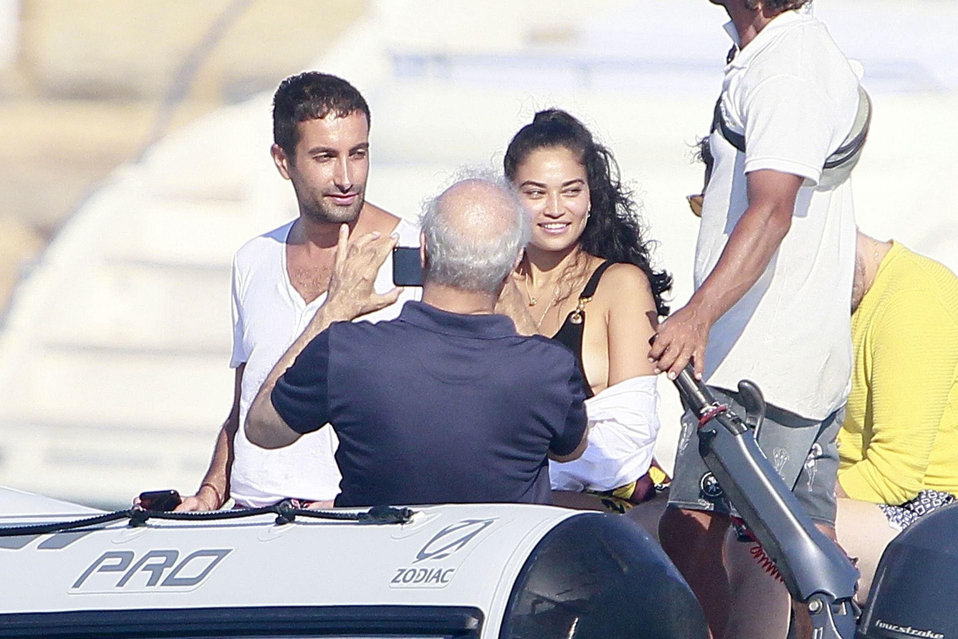 Model Shanina Shaik aproveita mais um dia a bordo de um iate com amigos e um homem desconhecido em Formentera, Espanha, 16/08/2019.