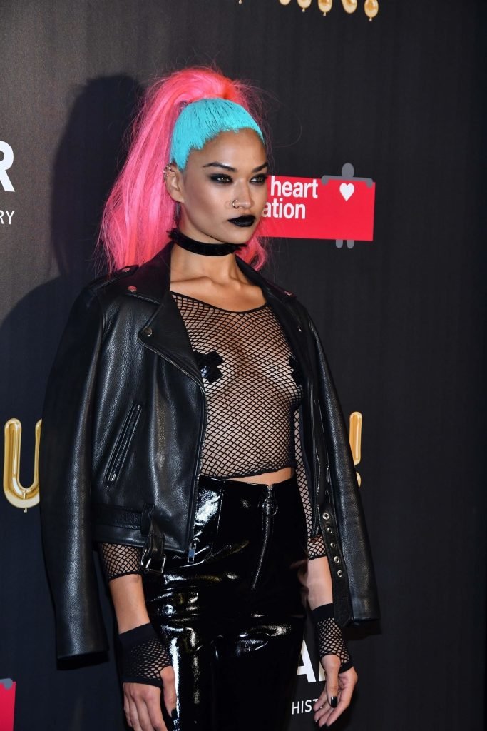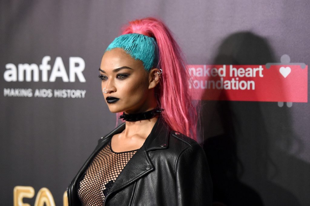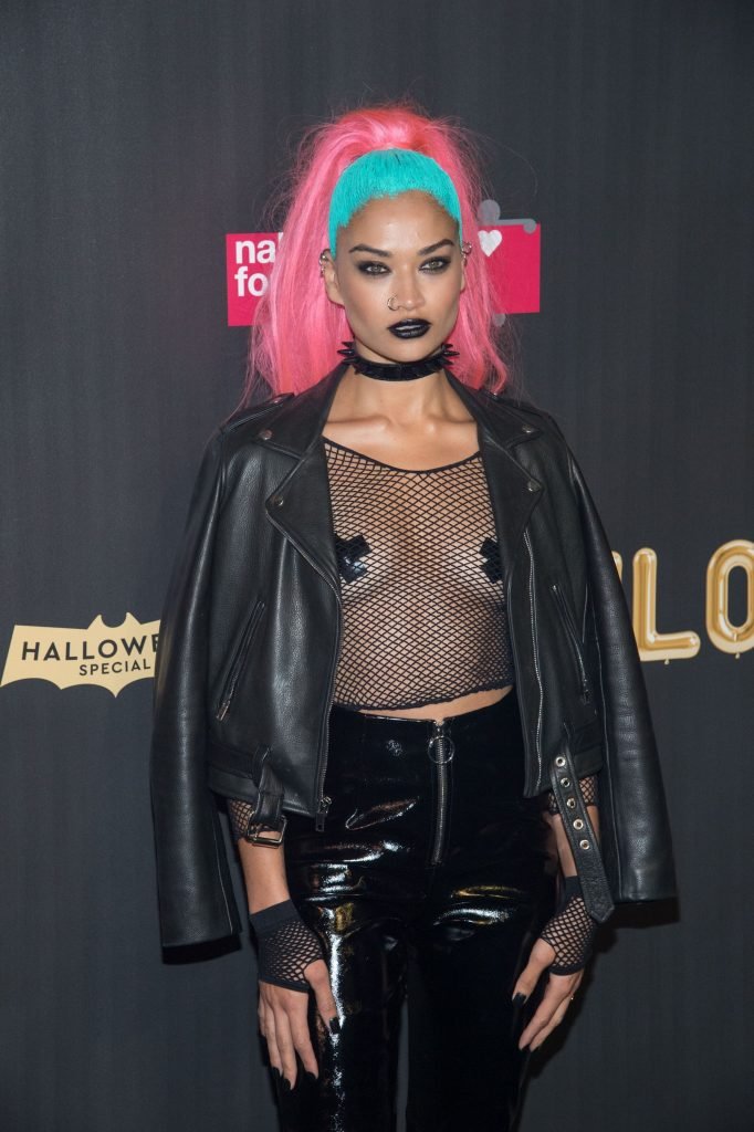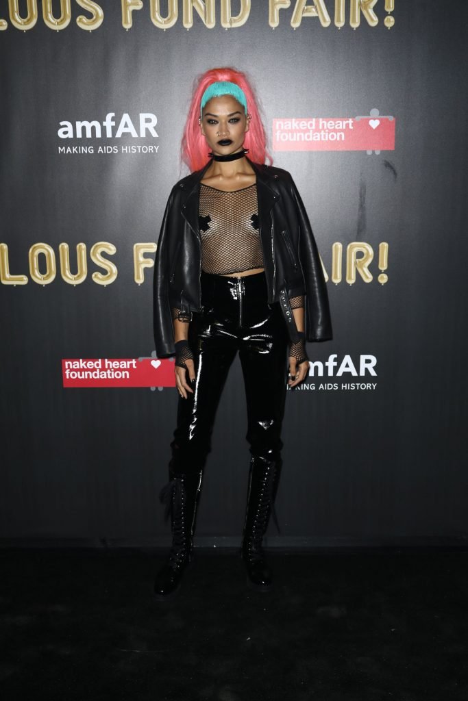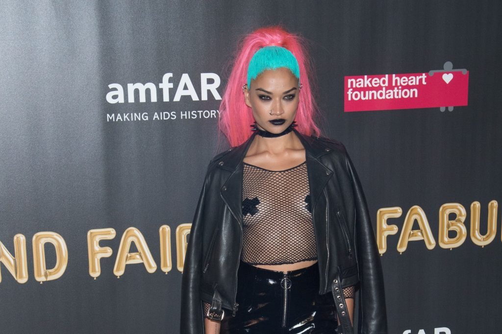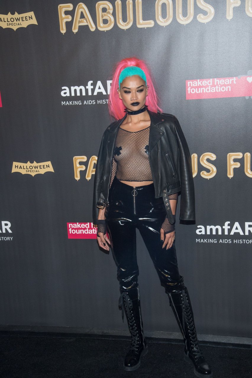 Shanina Shaik usa uma blusa de malha com pasties no amfAR Fabulous Fund Fair de 2017 em NYC, 28/10/2017. Shanina Shaik é uma top model australiana de moda. Idade: 26 anos (nascida em 11 de fevereiro de 1991)