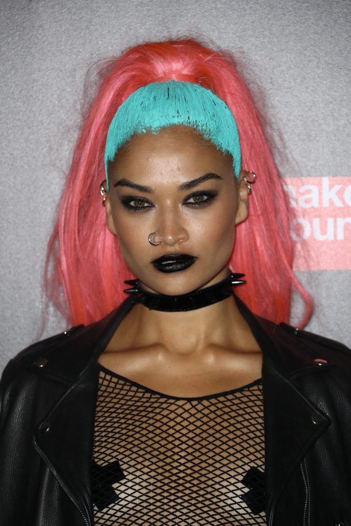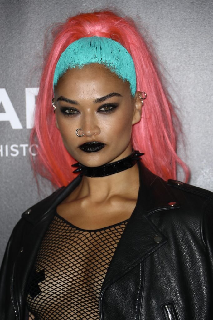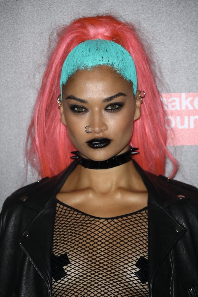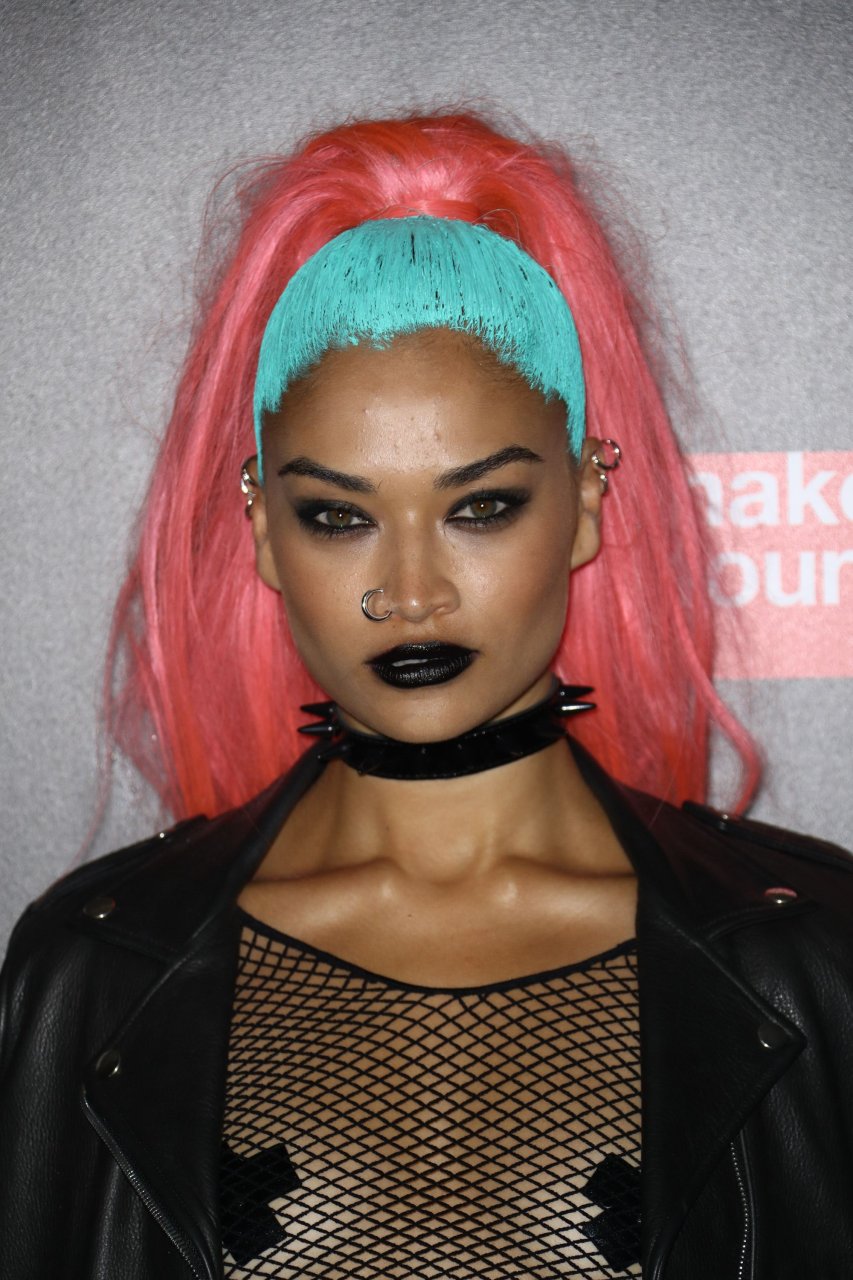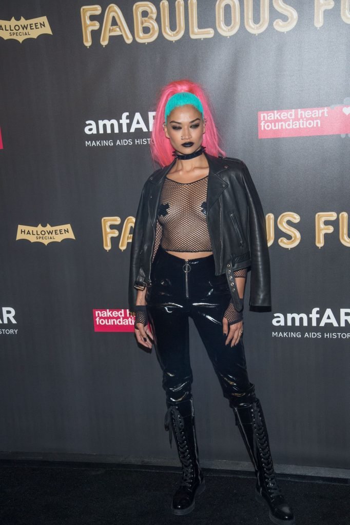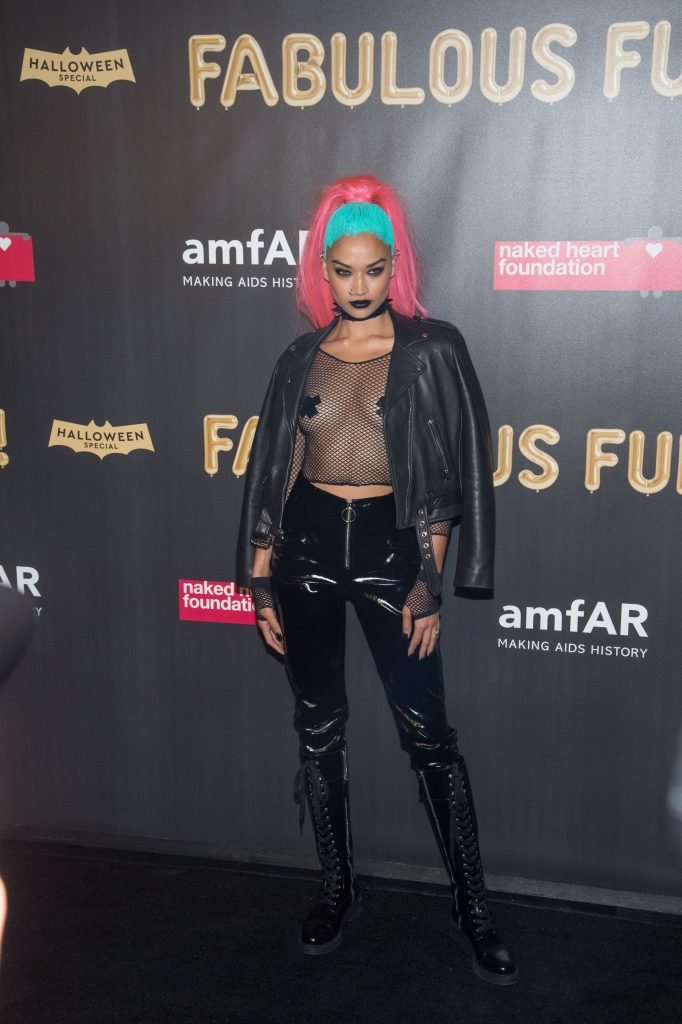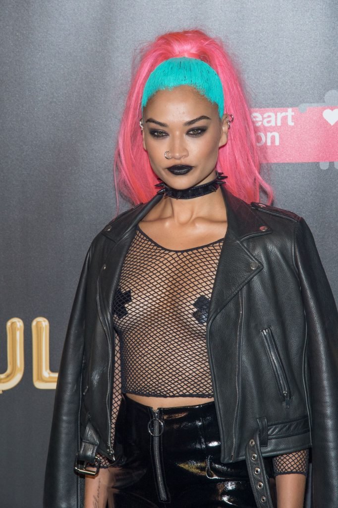 Shanina Shaik usa uma blusa de malha com pasties no amfAR Fabulous Fund Fair de 2017 em NYC, 28/10/2017. Shanina Shaik é uma top model australiana de moda. Idade: 26 anos (nascida em 11 de fevereiro de 1991)