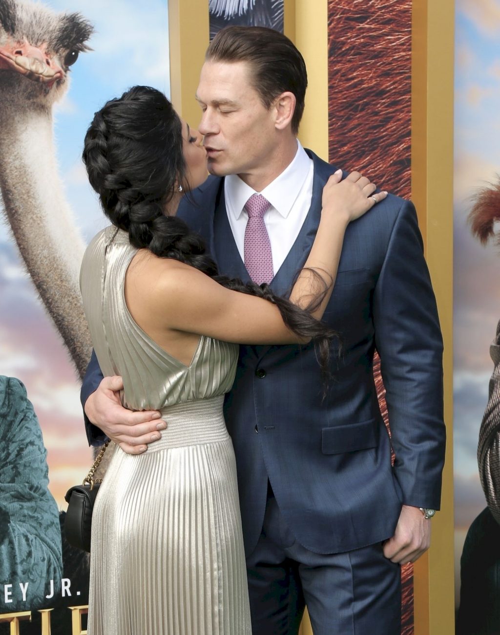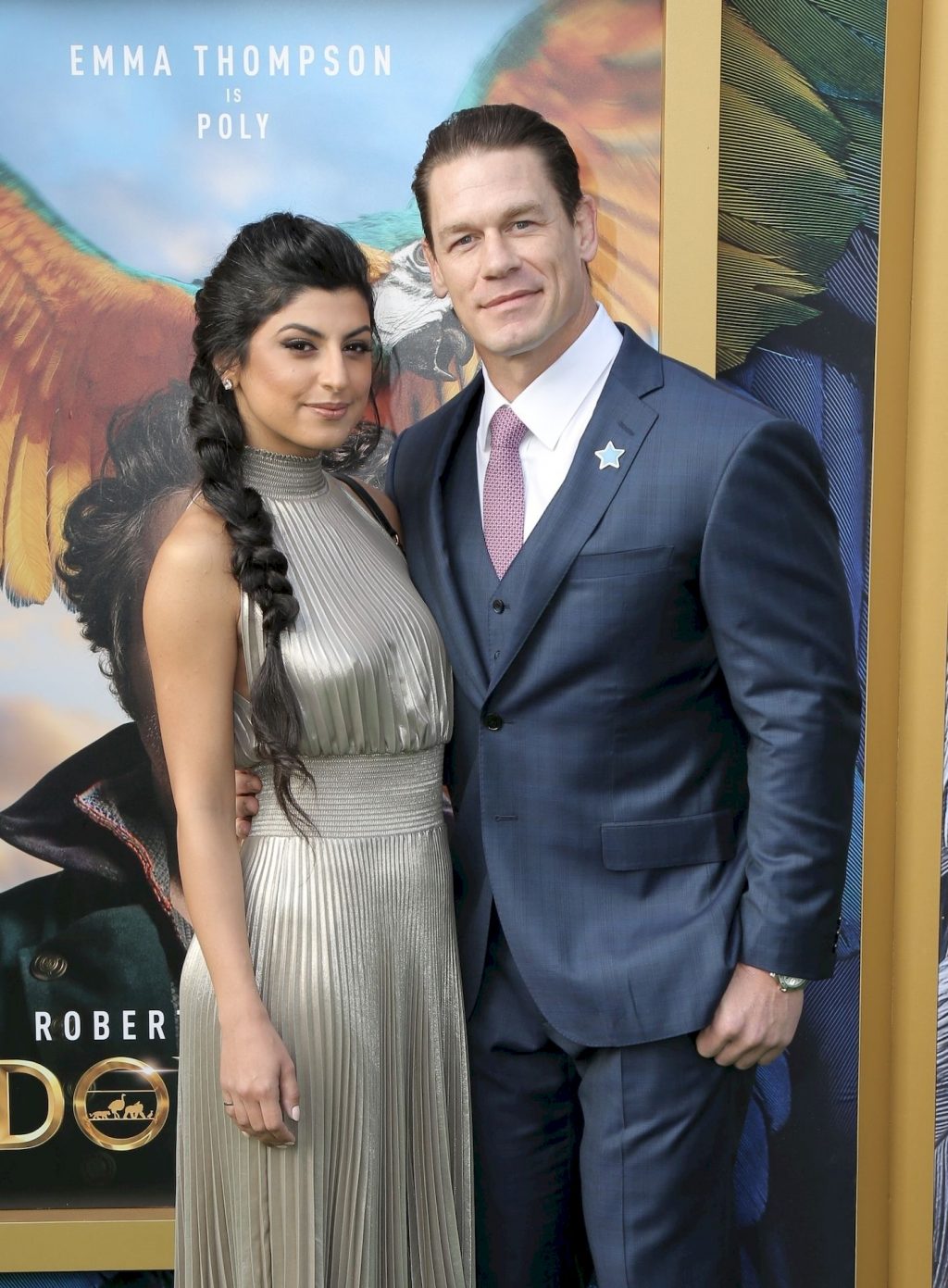 Lutador, cantor, ator John Cena e sua namorada canadense de 29 anos, Shay Shariatzadeh, participam da estreia em Los Angeles do filme ‘Dolittle’ da Universal Pictures, realizada no Regency Village Theatre em Westwood, 01/11/2020.