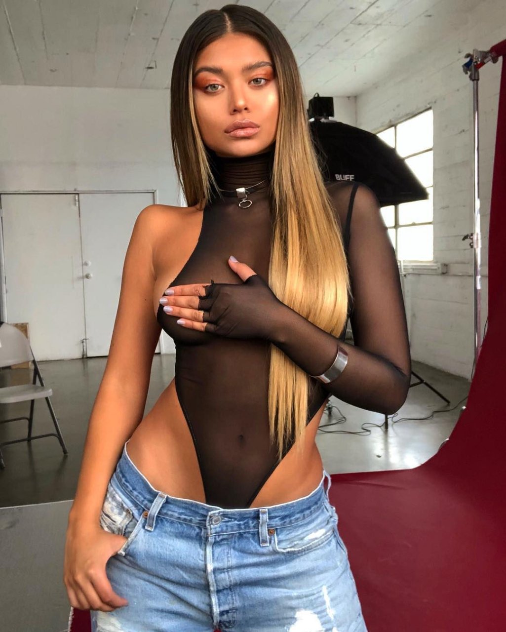 A famosa modelo americana de 20 anos Sofia Jamora chama atenção para si. Ela tem mais de 1,8 milhões de seguidores no Instagram. Sofia tem um corpo ótimo, cintura fina e quadris largos. A beleza publicou várias fotos novas nuas e sensuais, incluindo séries no estilo fappening.