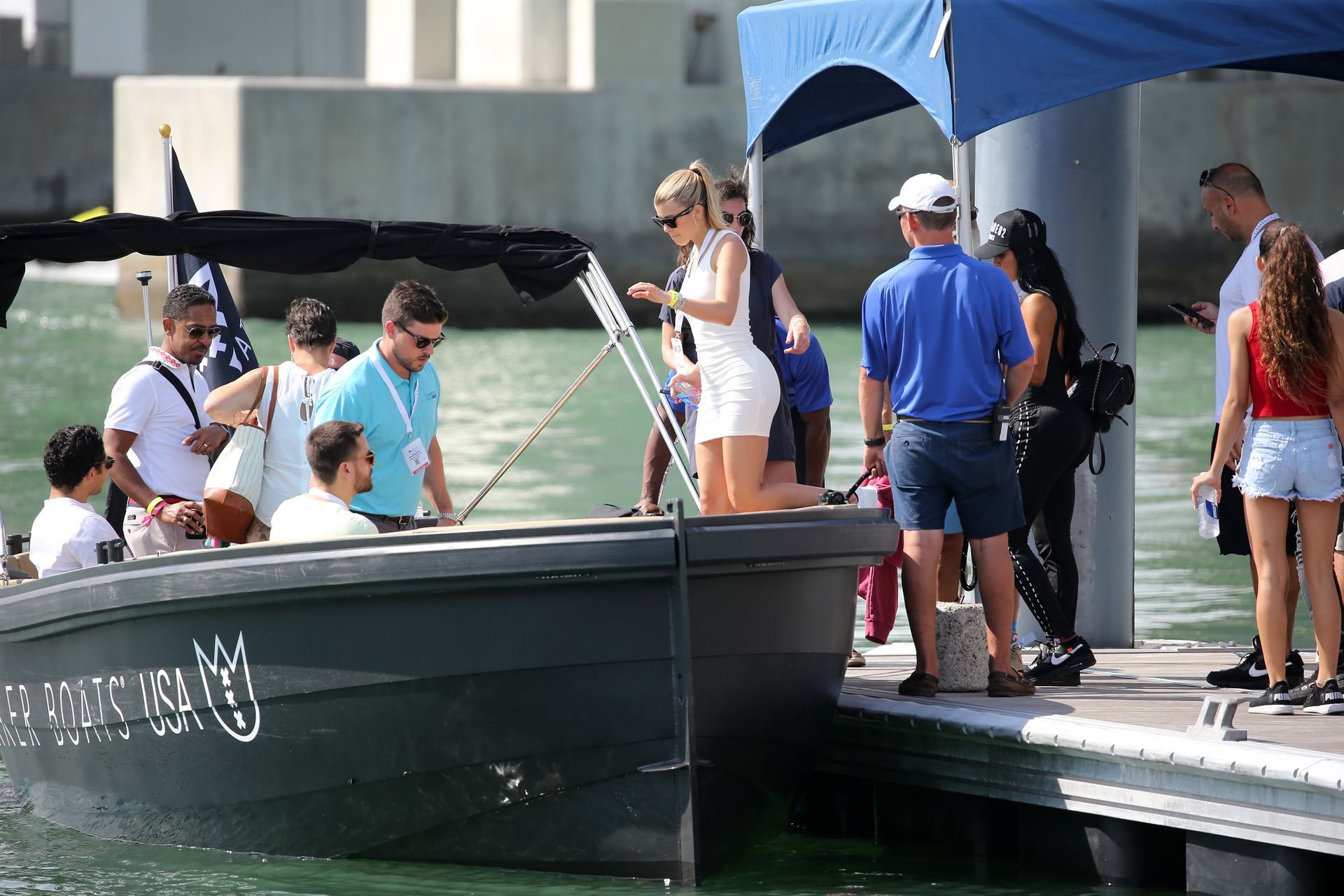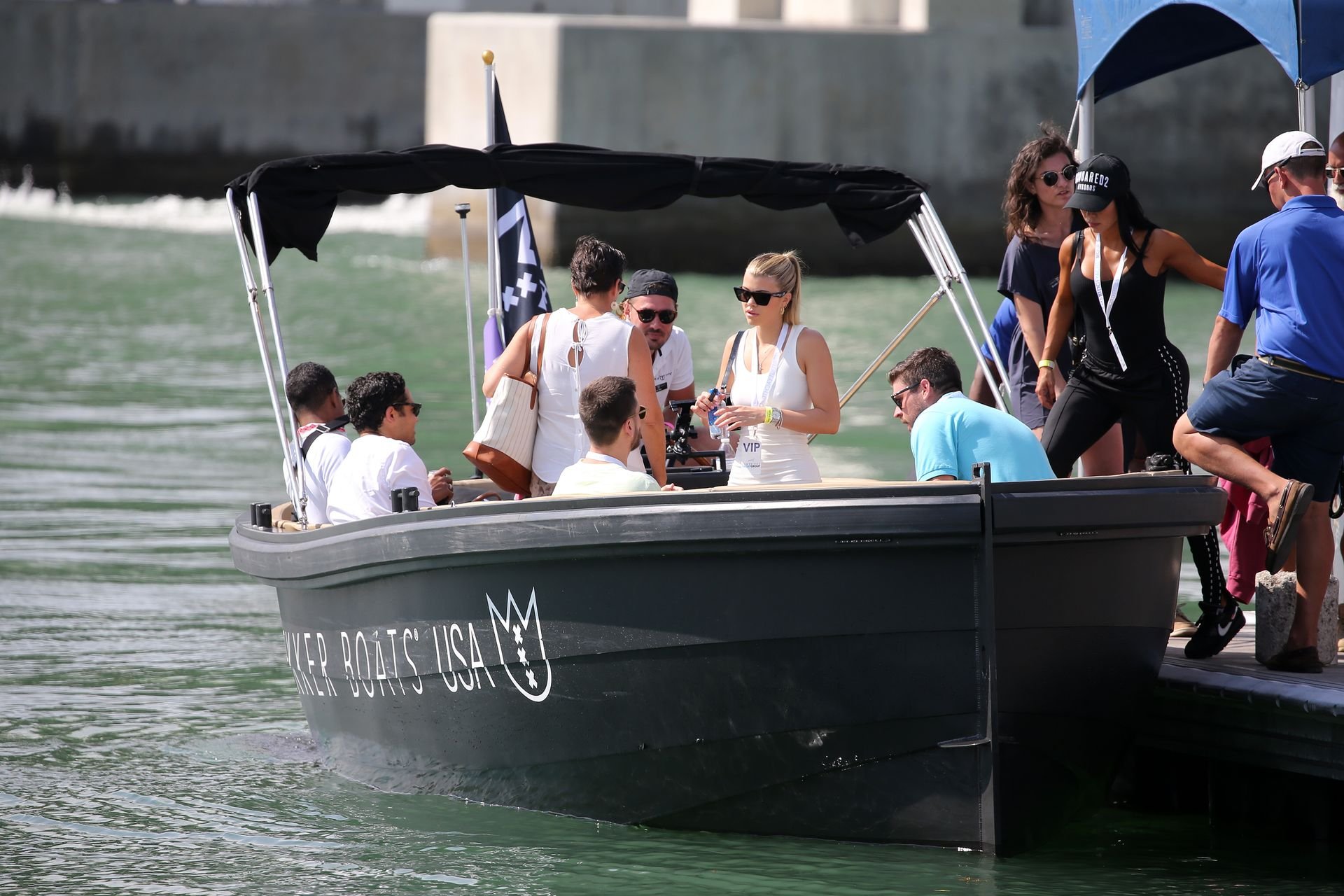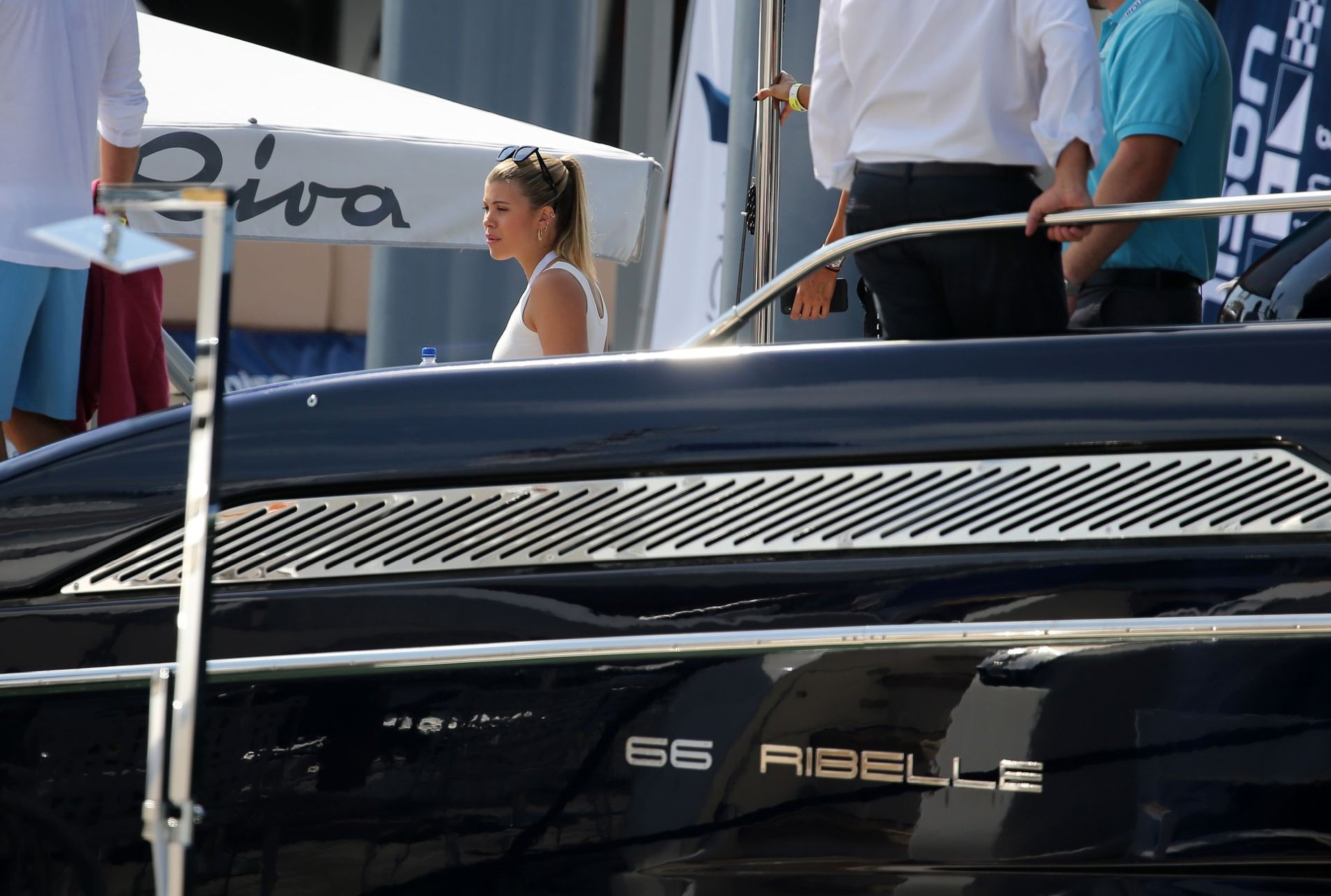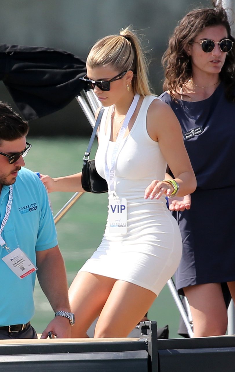 Sofia Richie (20) exibe suas curvas em um minivestido justo enquanto ela e o namorado Scott Disick participam de um show VIP de super iates em Miami, 17/02/2019.