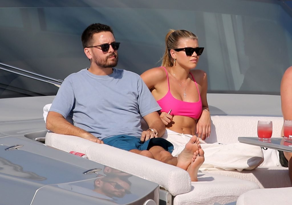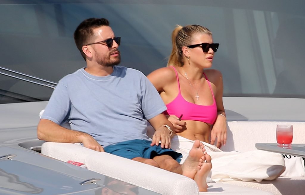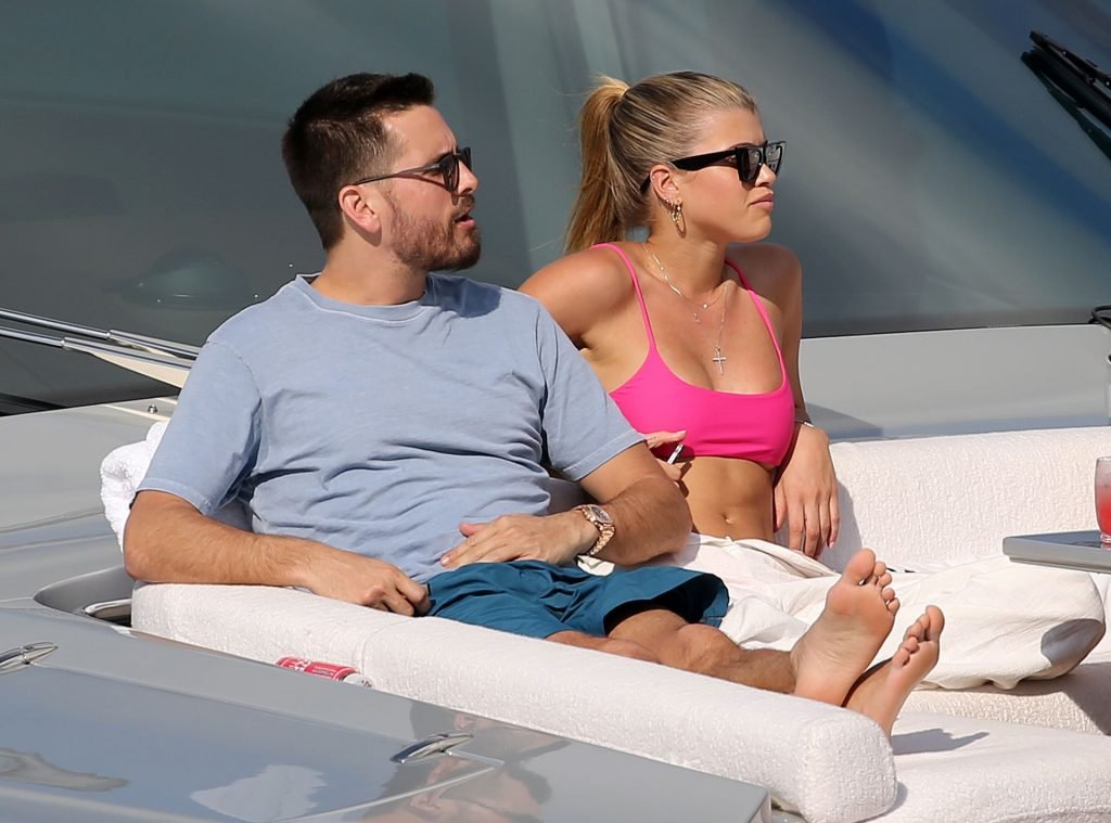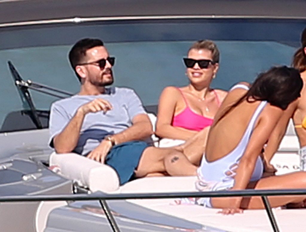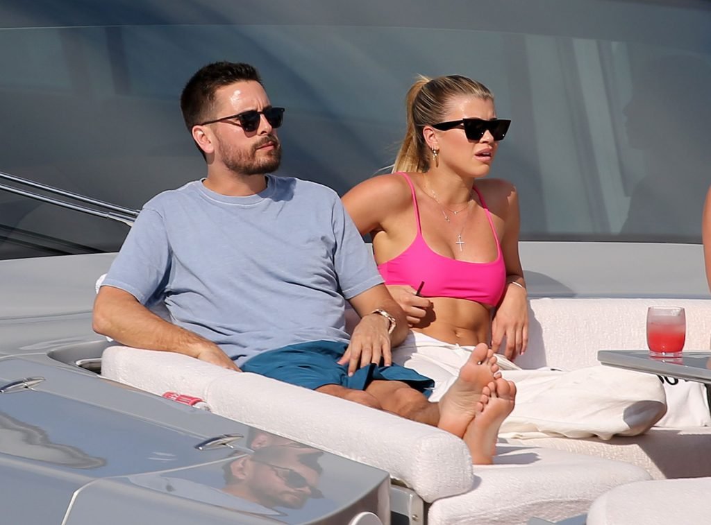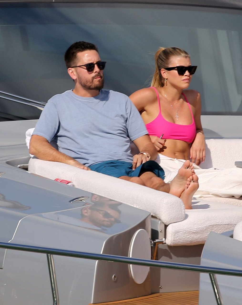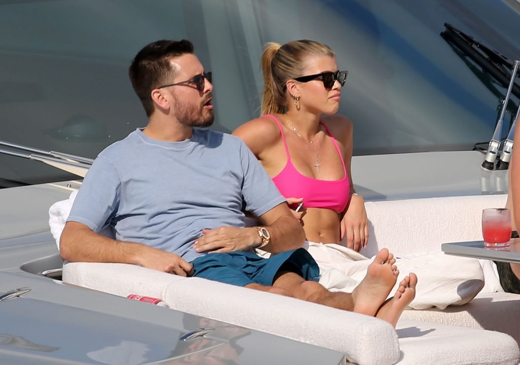 Model Sofia Richie usa um top de biquíni rosa quente enquanto relaxa em um iate com o namorado Scott Disick em Miami, 17/02/2019.
