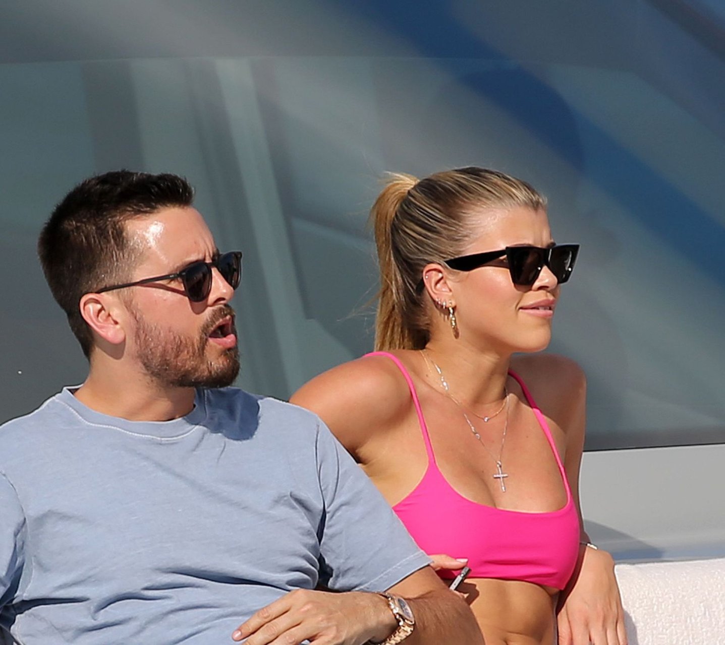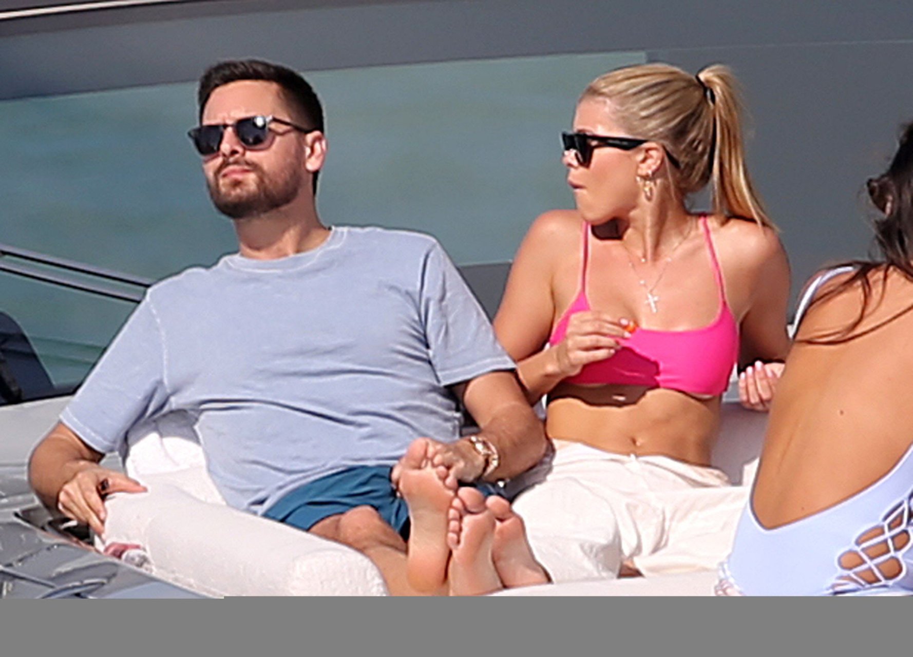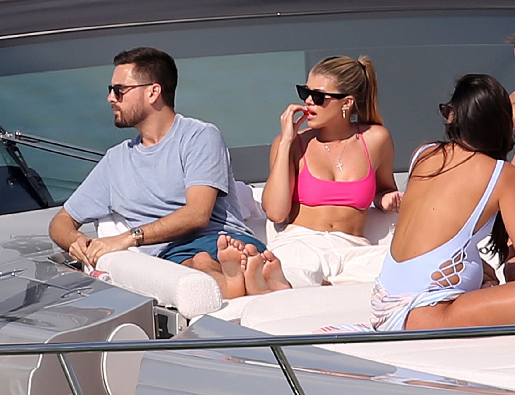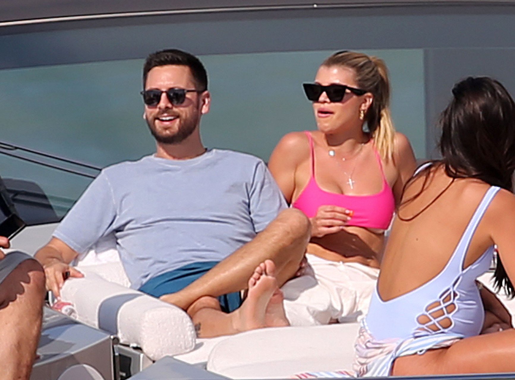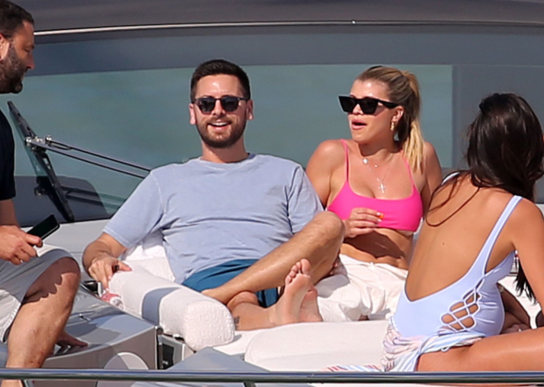 Model Sofia Richie usa um top de biquíni rosa quente enquanto relaxa em um iate com o namorado Scott Disick em Miami, 17/02/2019.