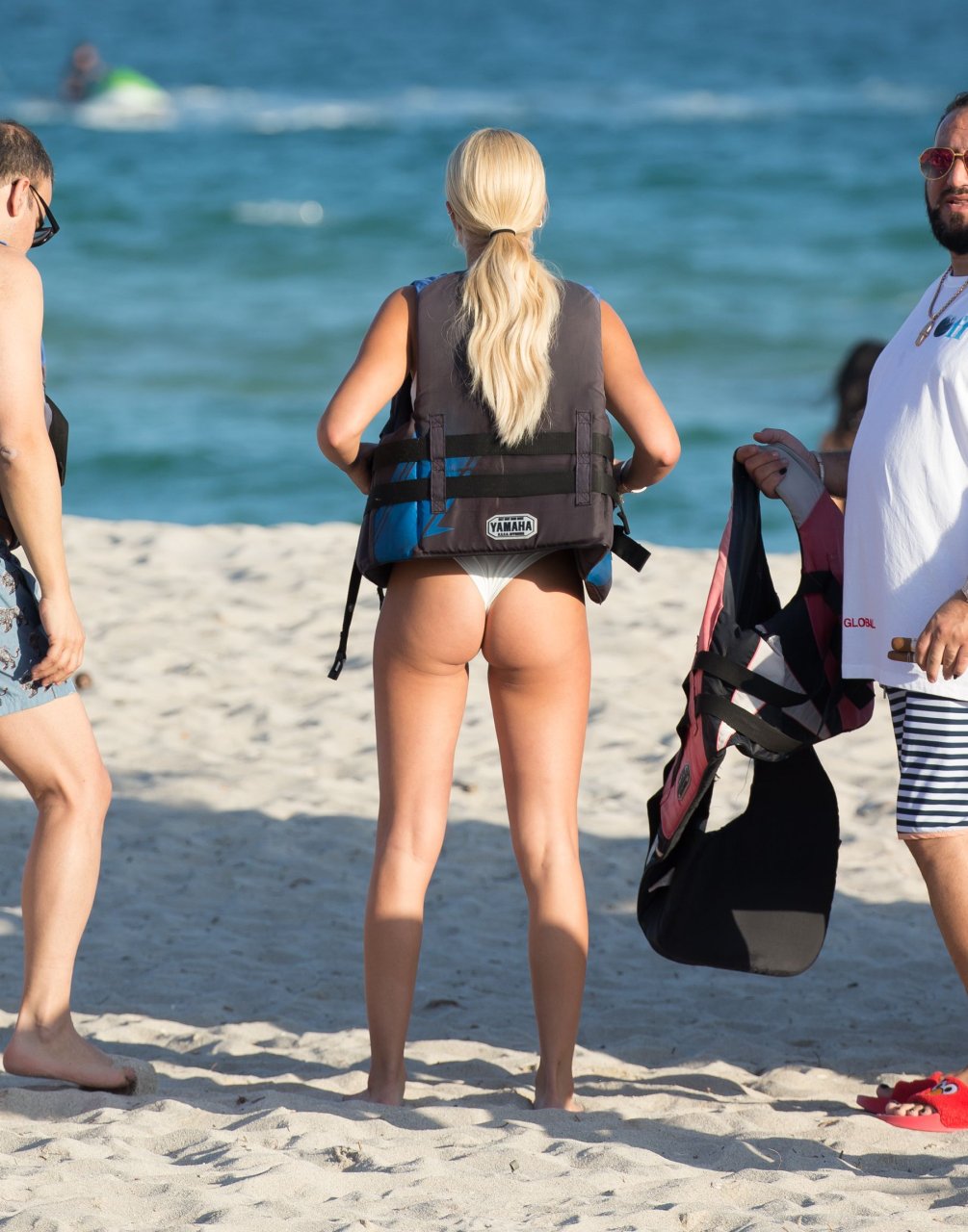 Model Sofia Richie (19) é vista de biquíni branco em Miami Beach, 08/12/2017.