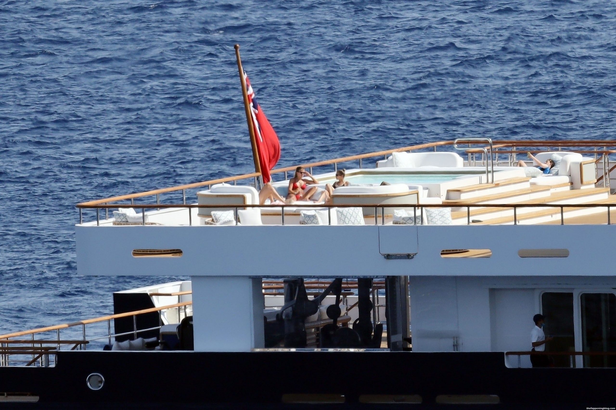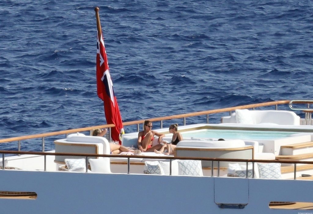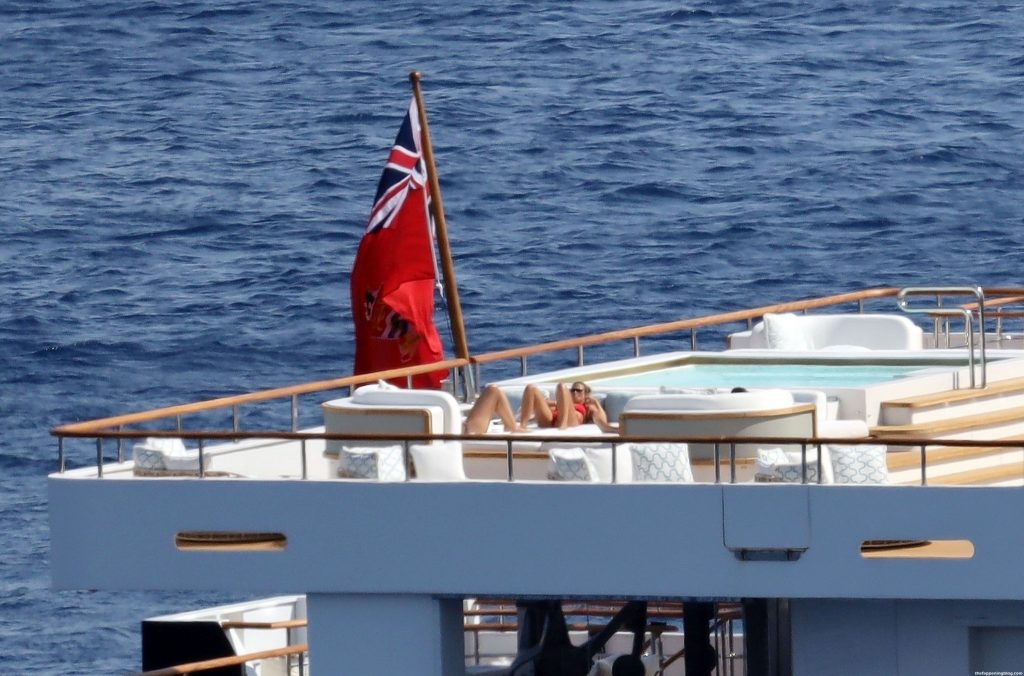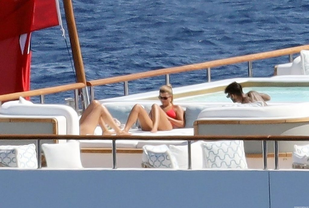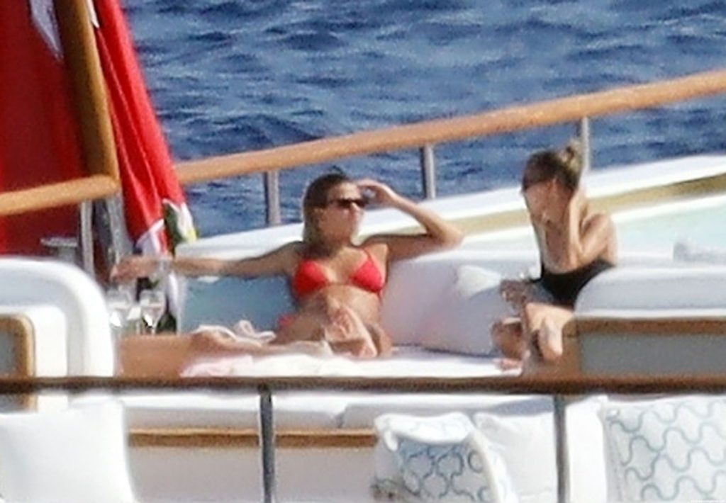 Sofia aproveitou os raios usando um biquíni vermelho marcante e sexy, que promete aumentar ainda mais a temperatura durante as luxuosas férias gregas dos Richie.