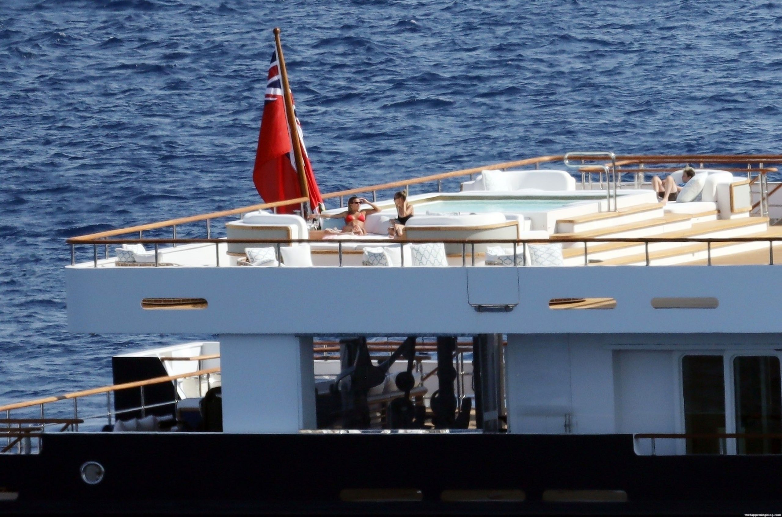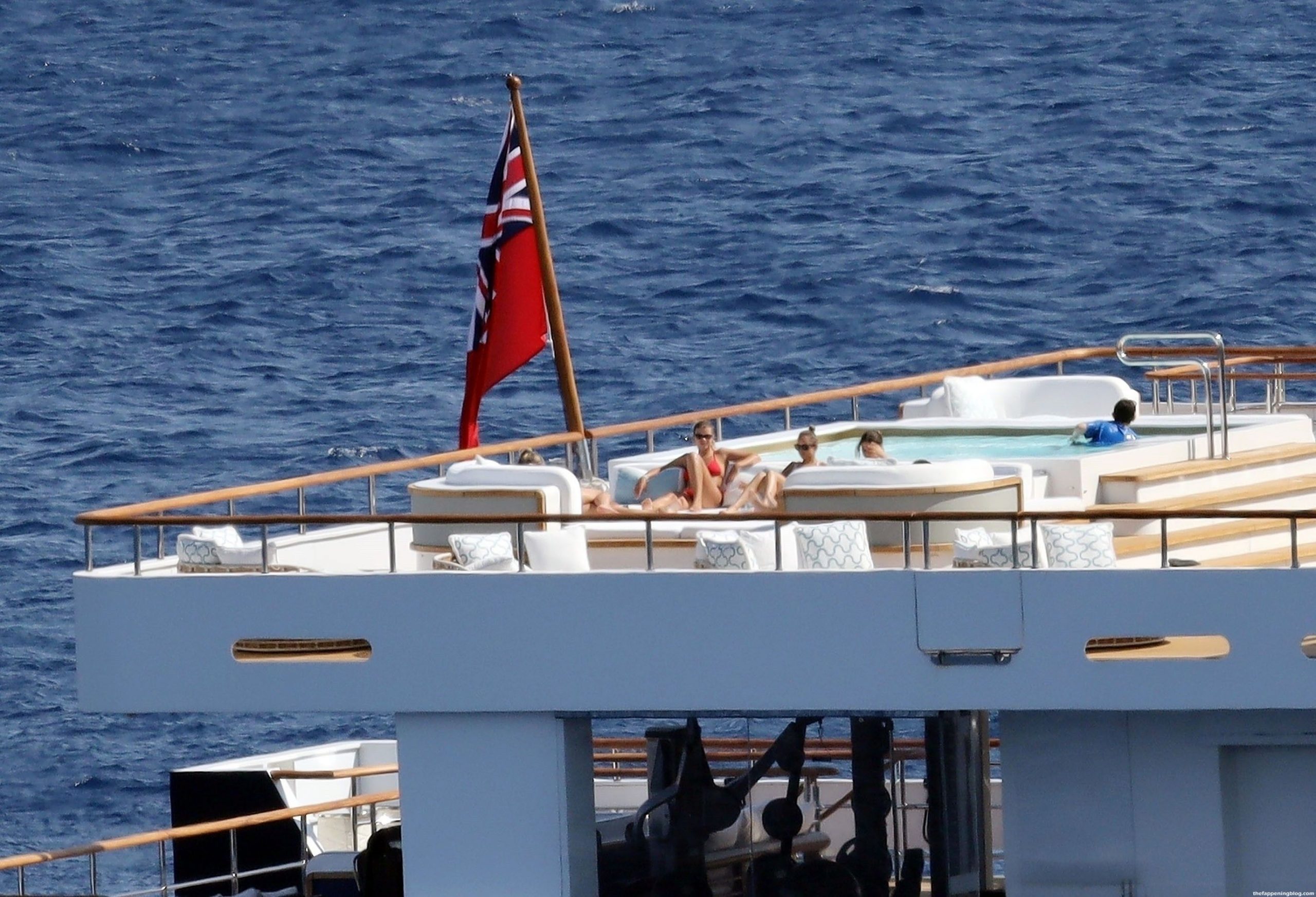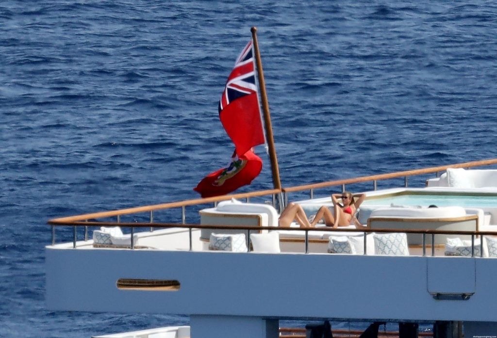 Sofia aproveitou os raios usando um biquíni vermelho marcante e sexy, que promete aumentar ainda mais a temperatura durante as luxuosas férias gregas dos Richie.