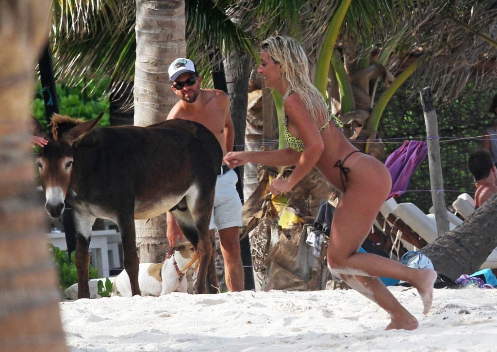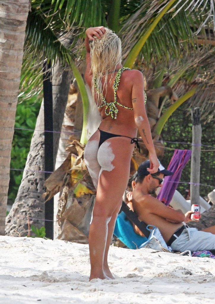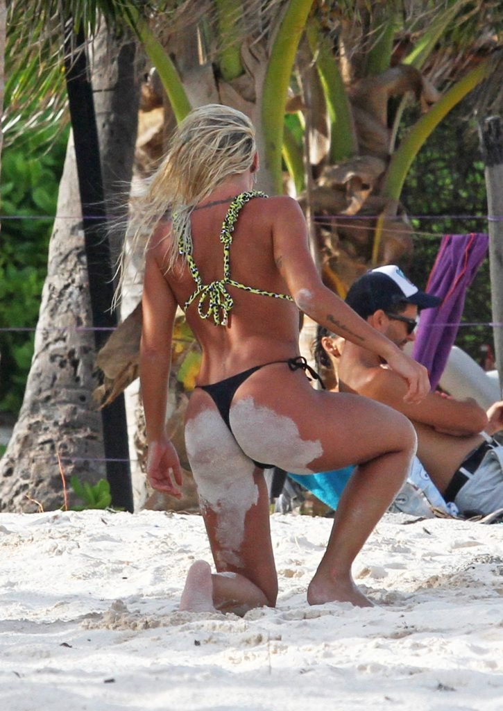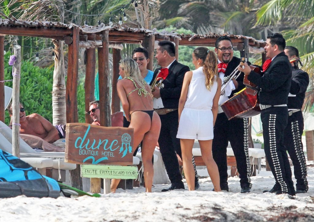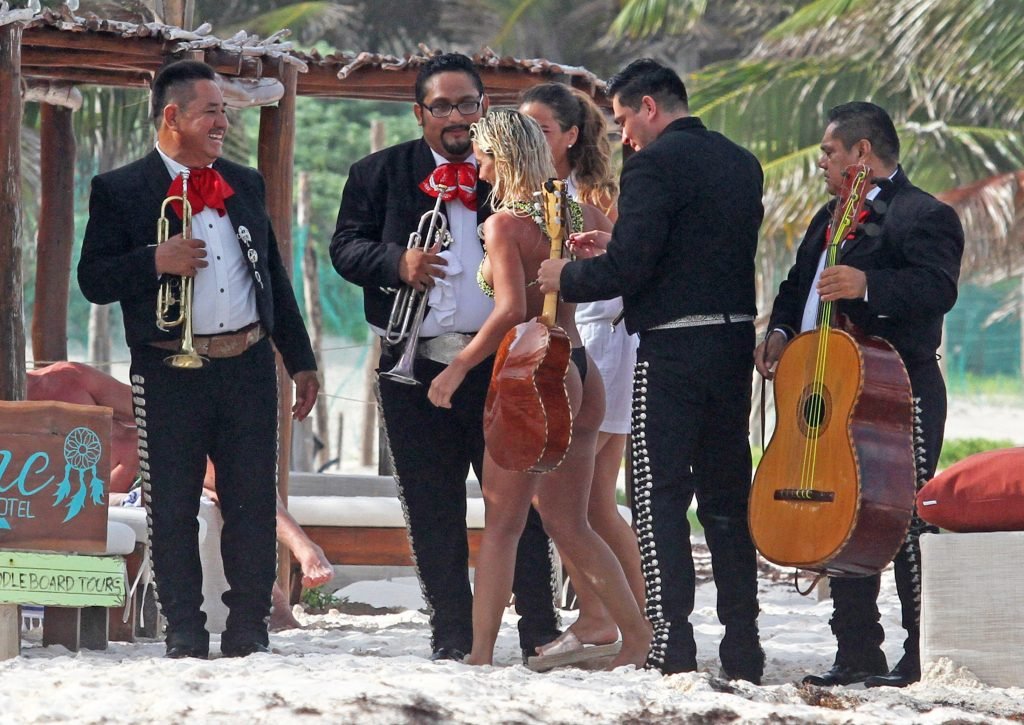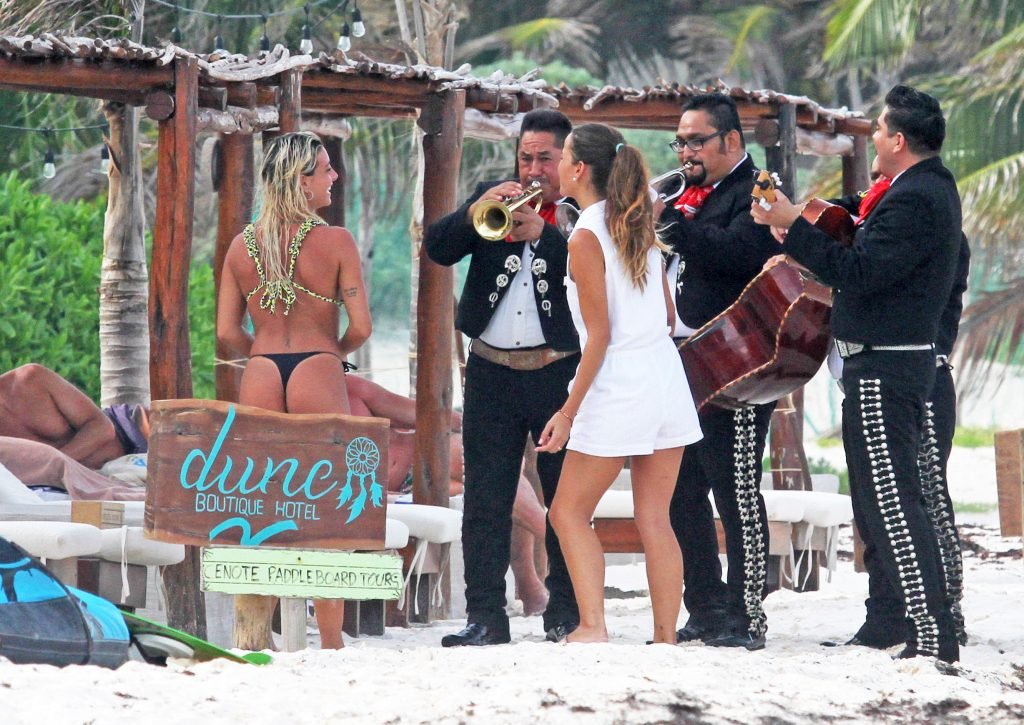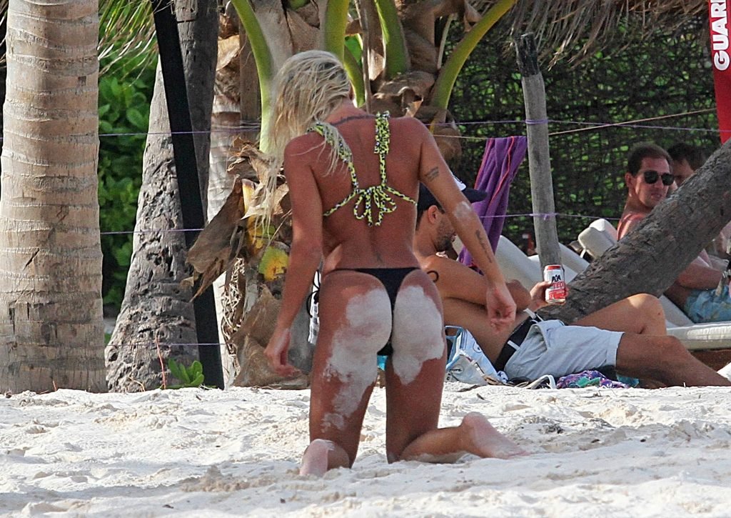 Solci Perez, a apresentadora do tempo argentina de 24 anos e estrela das redes sociais, aproveita o tempo em família na praia em Tulum, Cidade do México, México, 27/06/2018.