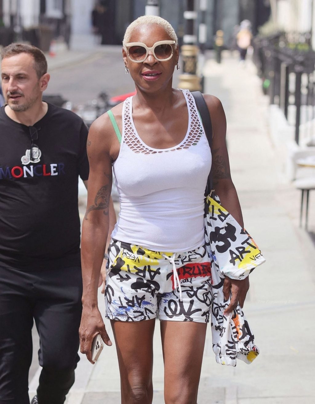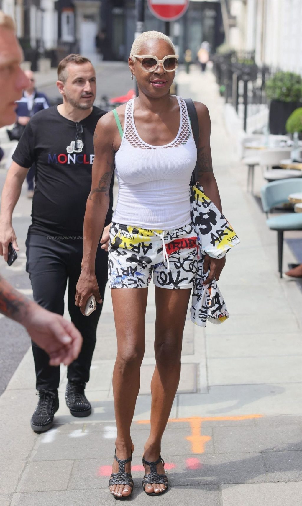 A cantora dos anos 90 Sonique (Sonia Marina Clarke) exibe seu corpo tonificado ao sair em Mayfair, Londres, antes do lançamento de seu novo single no IT Restaurant, 06/02/2021.
