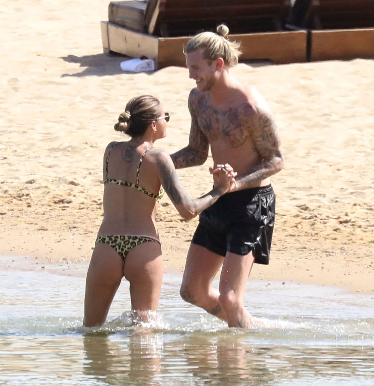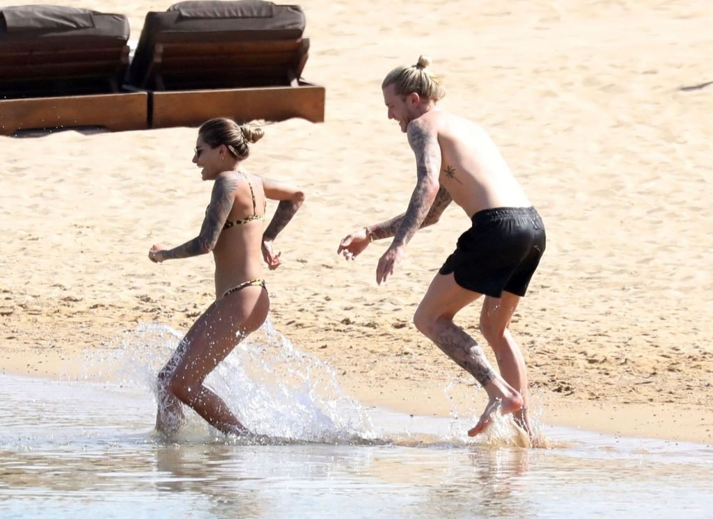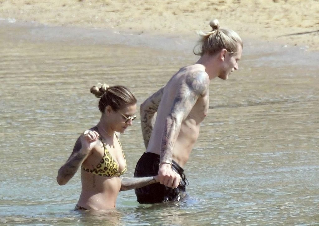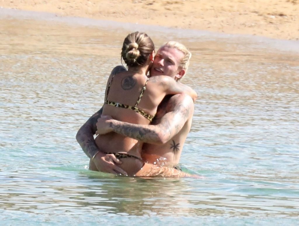 Loris cometeu uma série de erros no evento principal no ano passado e é visto sob uma luz diferente, desta vez levando as coisas com mais calma, aproveitando suas férias na praia com Sophia Thomalla, que usava um biquíni sexy com estampa animal, enquanto Karius estava sem camisa exibindo sua coleção de tatuagens. O casal mostrou seu amor enquanto se divertia na praia, beijando e abraçando em sua escapada ensolarada na Grécia, 29/05/2019.