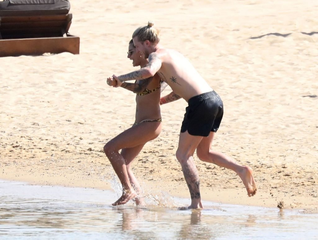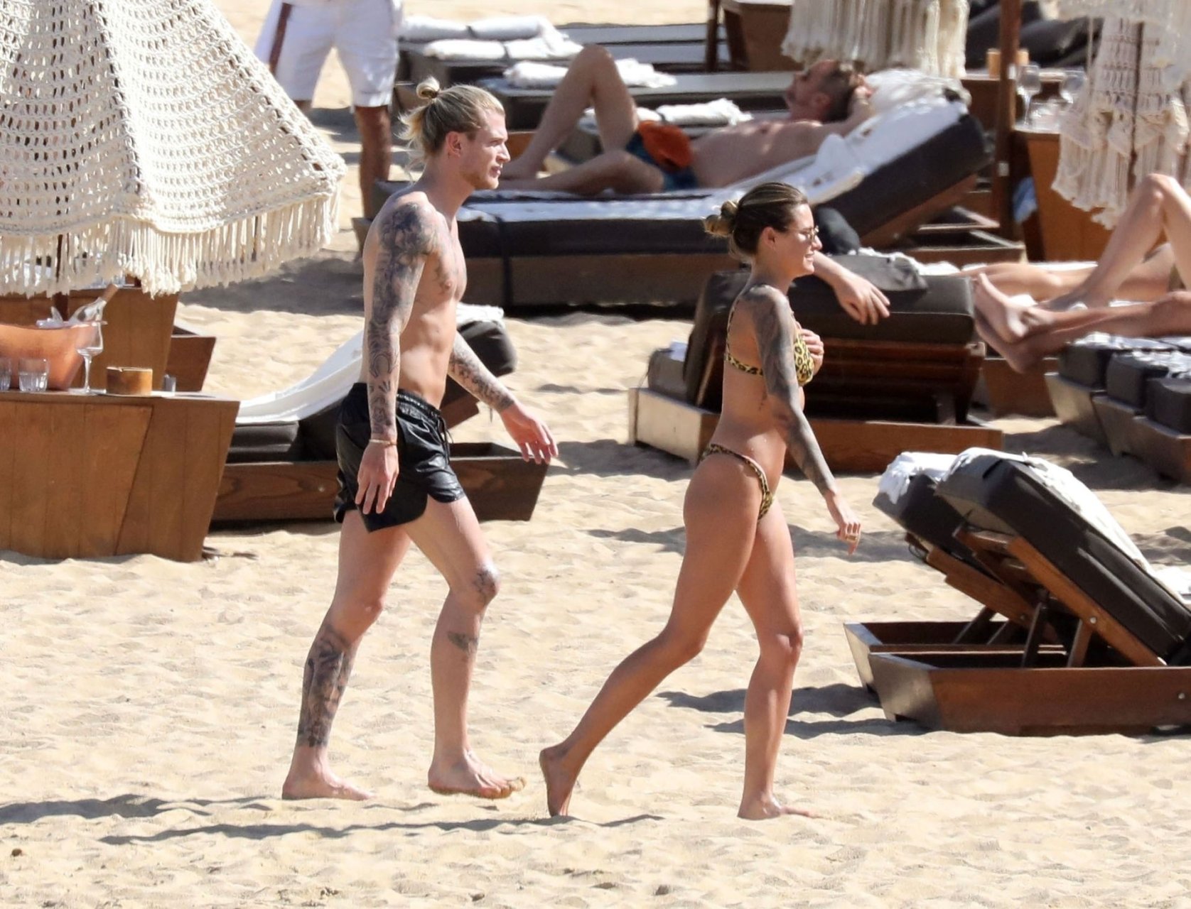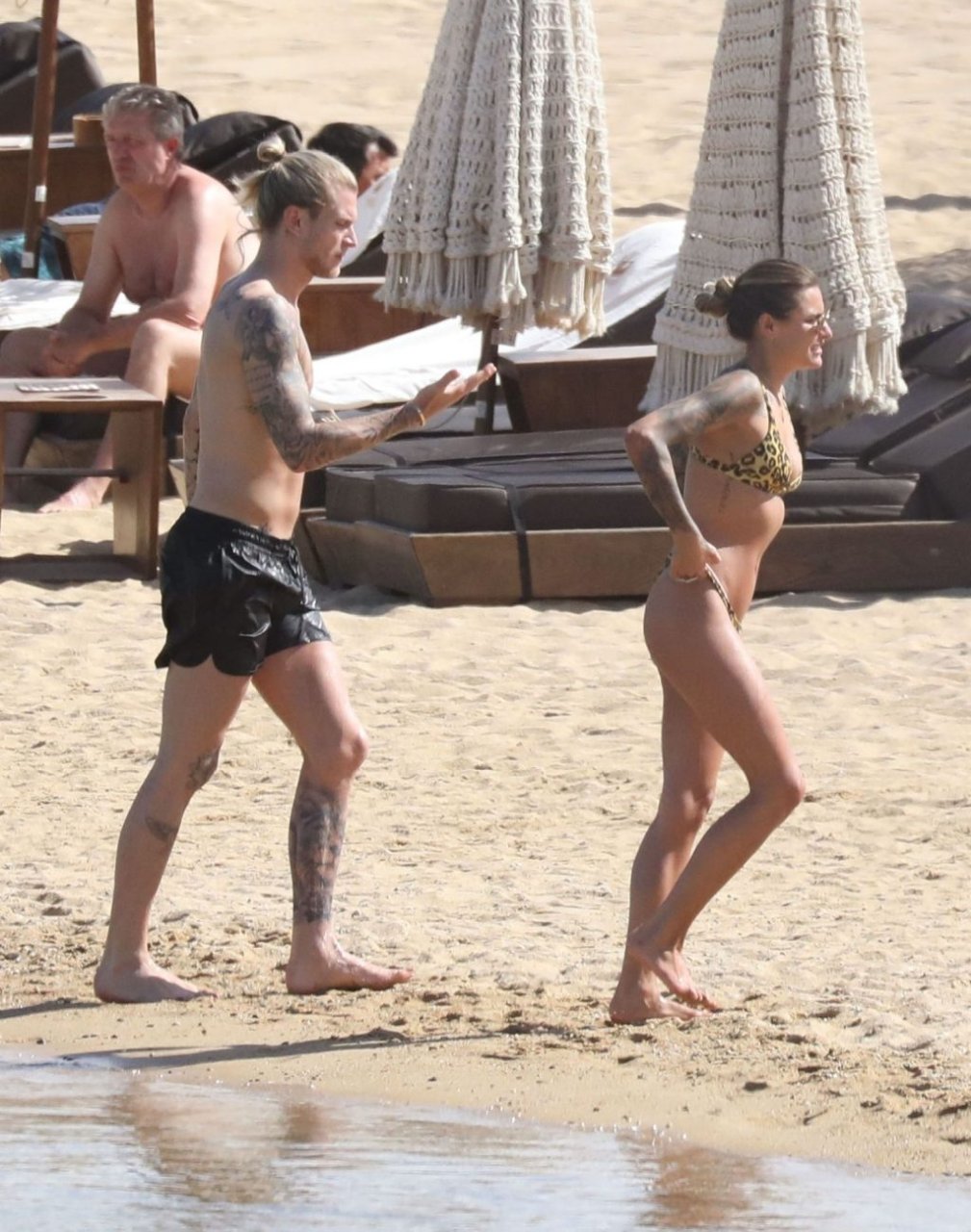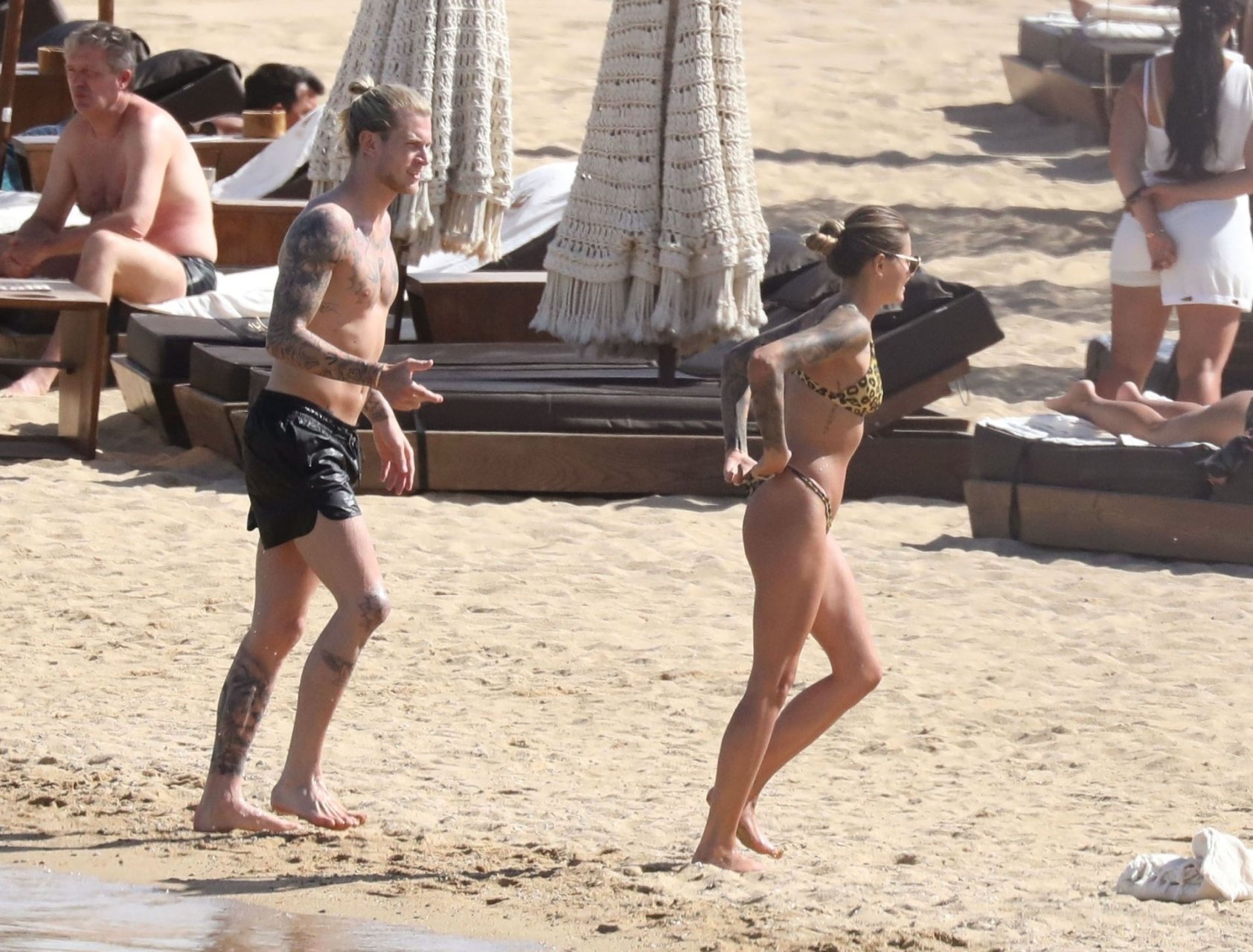 Loris cometeu uma série de erros no evento principal no ano passado e é visto sob uma luz diferente, desta vez levando as coisas com mais calma, aproveitando suas férias na praia com Sophia Thomalla, que usava um biquíni sexy com estampa animal, enquanto Karius estava sem camisa exibindo sua coleção de tatuagens. O casal mostrou seu amor enquanto se divertia na praia, beijando e abraçando em sua escapada ensolarada na Grécia, 29/05/2019.