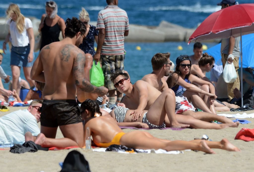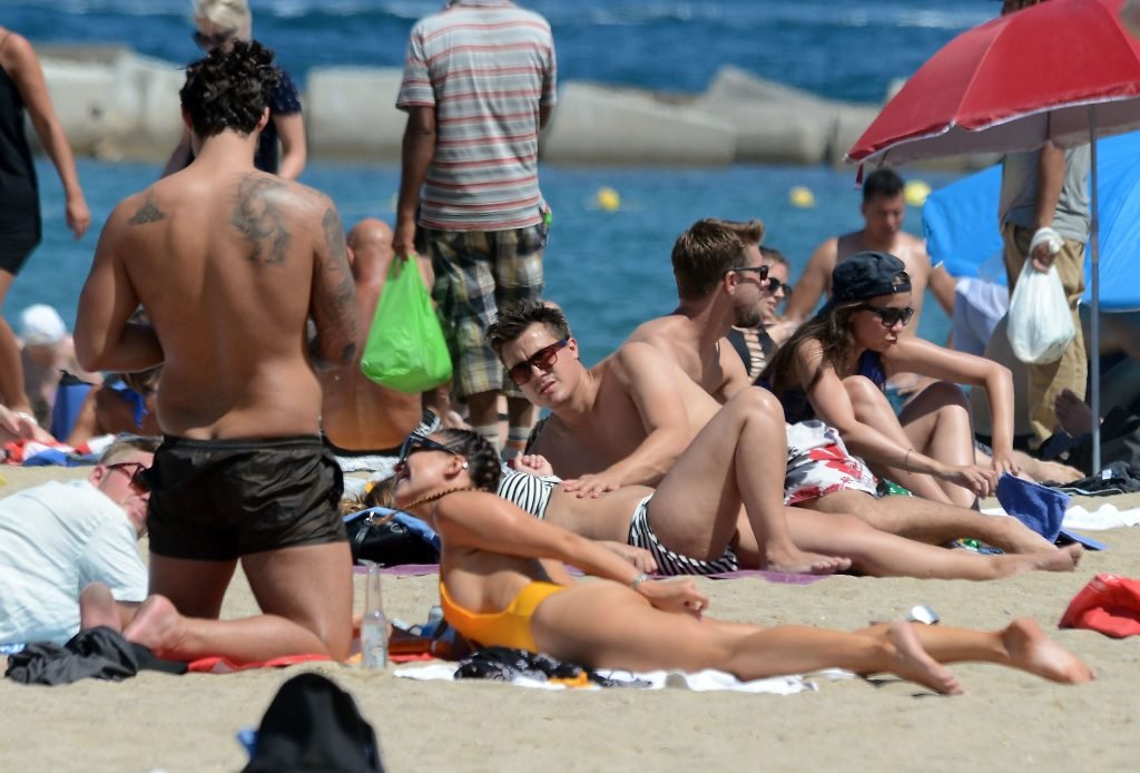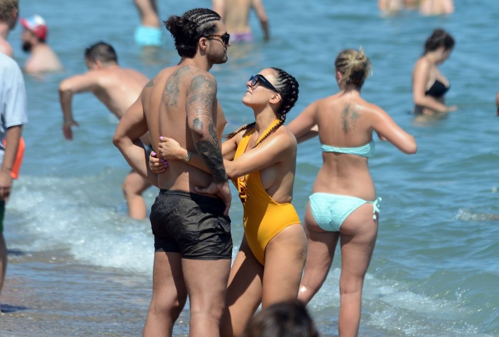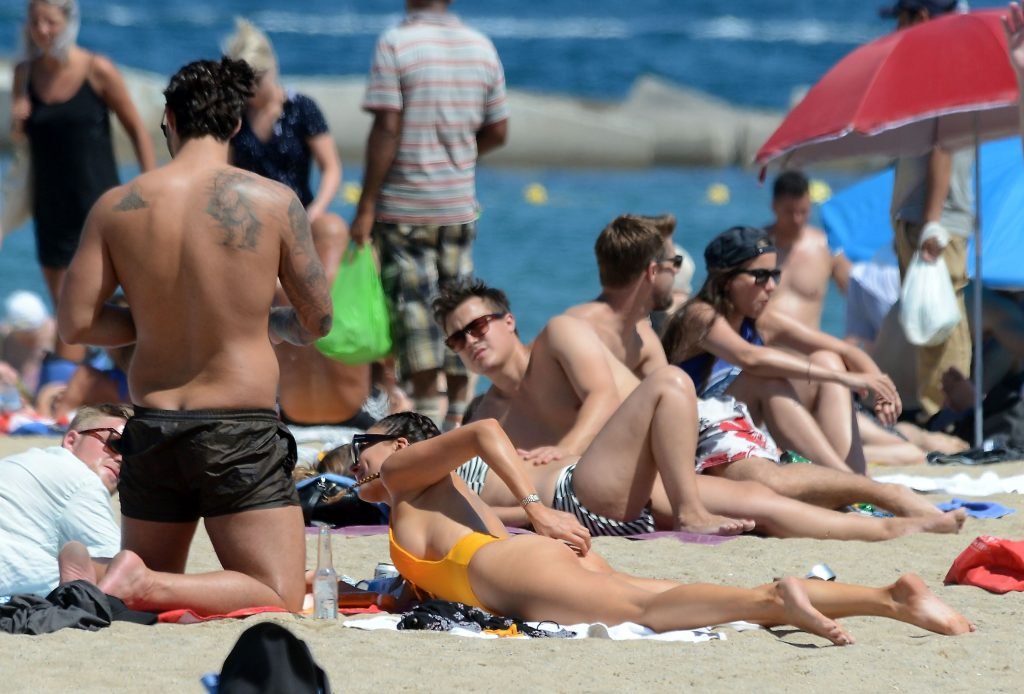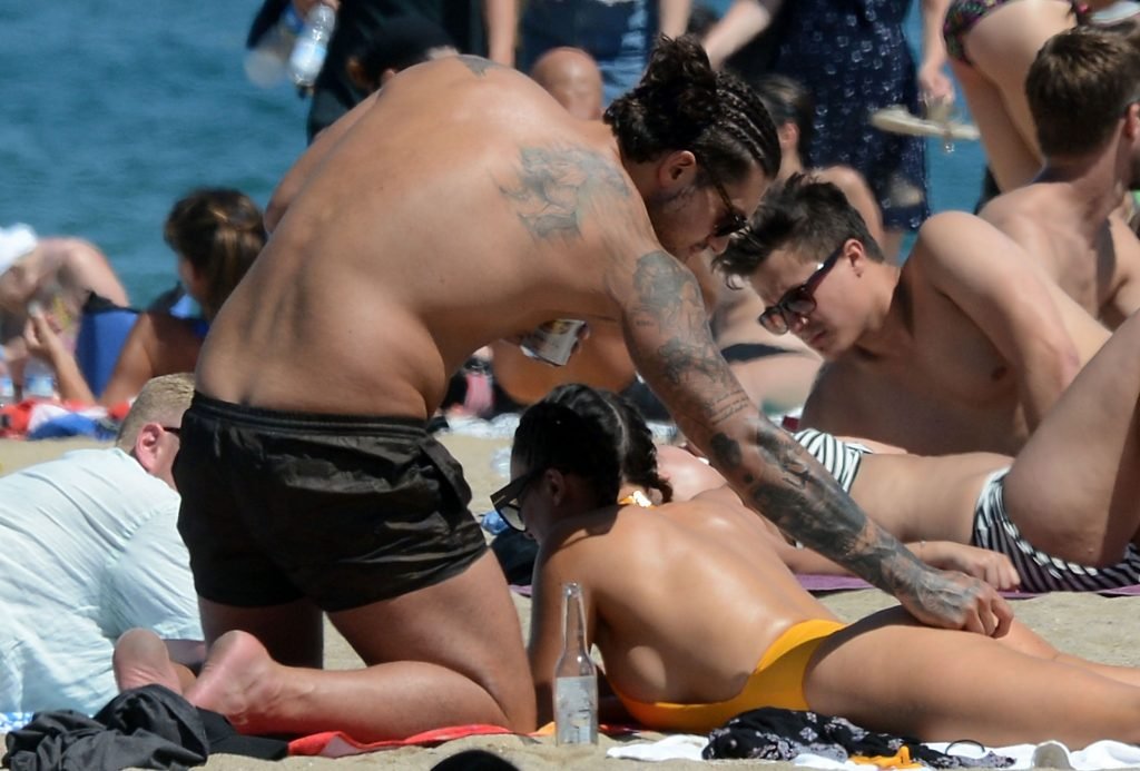 Sophie Gradon exibe seus grandes seios e bumbum em maiô amarelo na praia em Barcelona, 18/06/2017. Sophie Gradon é uma ex-Miss Grã-Bretanha 2009 e estrela de reality show da Inglaterra. Fotos vazadas estão aqui.