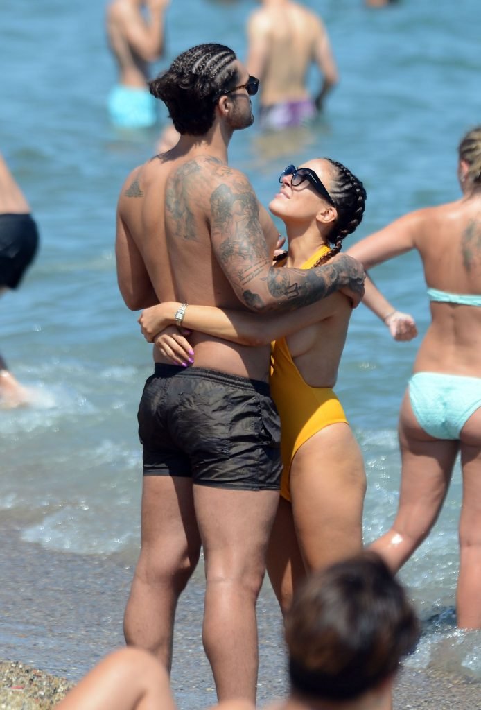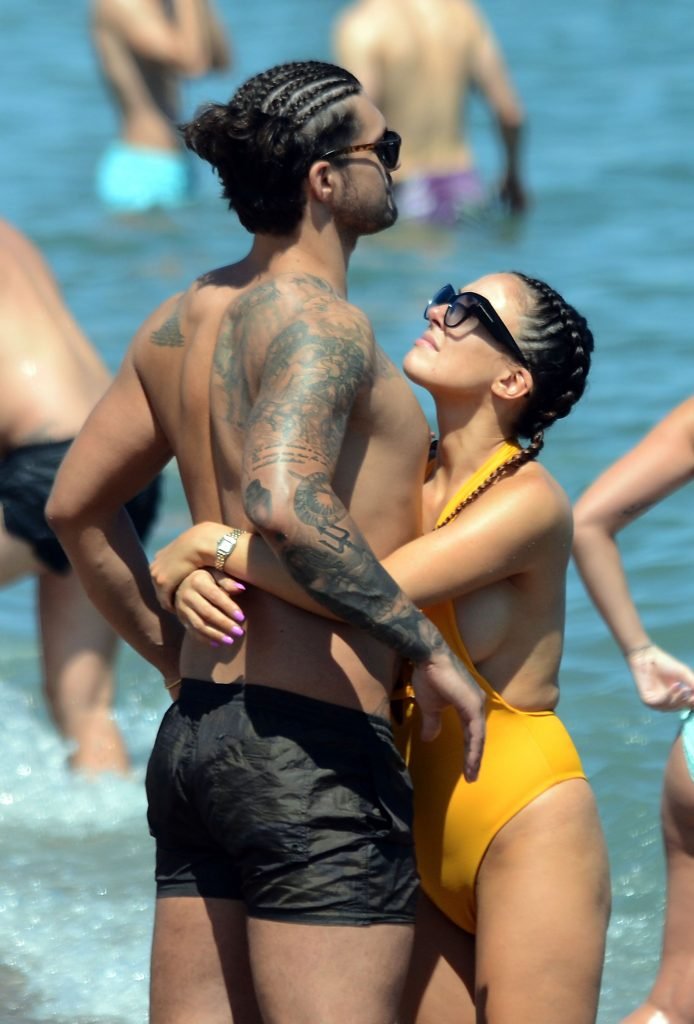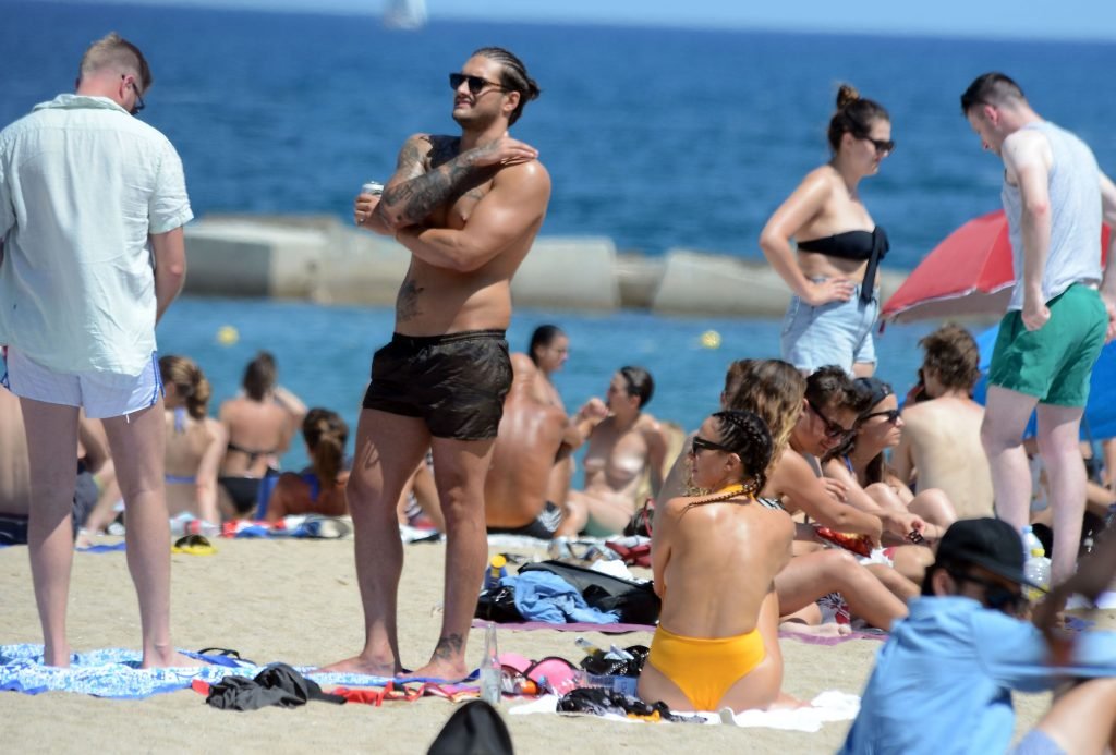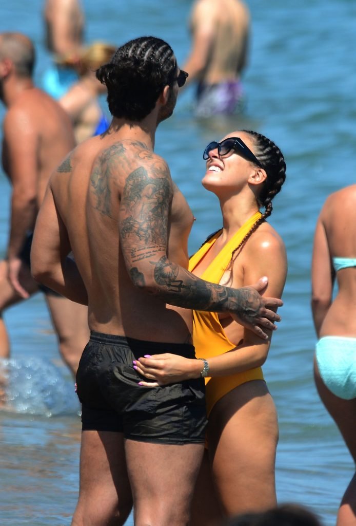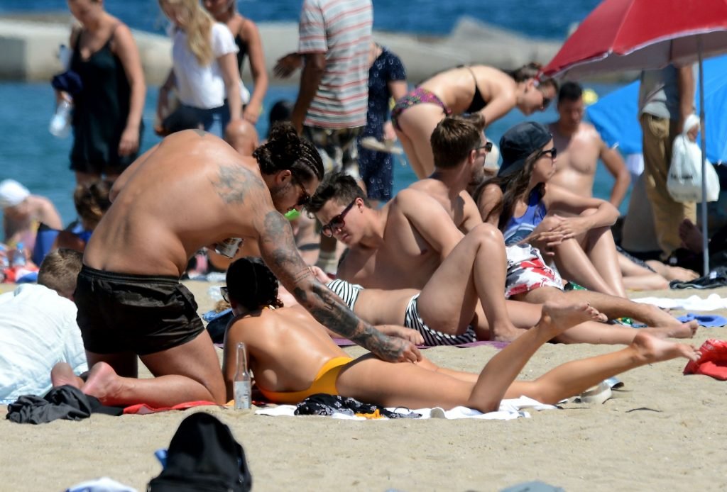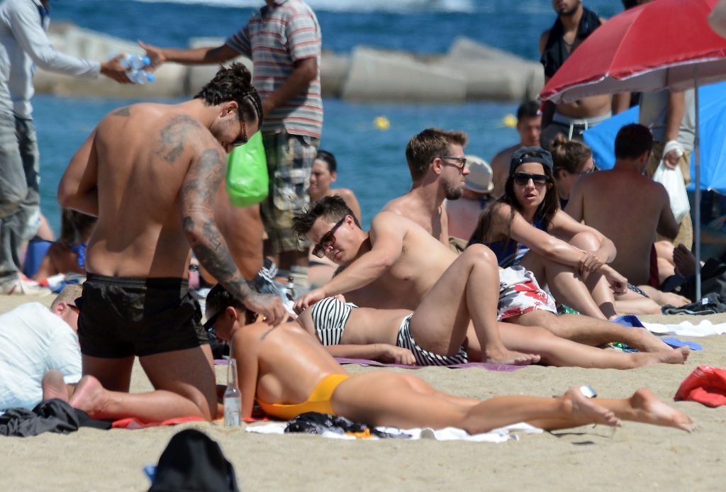 Sophie Gradon exibe seus grandes seios e bumbum em maiô amarelo na praia em Barcelona, 18/06/2017. Sophie Gradon é uma ex-Miss Grã-Bretanha 2009 e estrela de reality show da Inglaterra. Fotos vazadas estão aqui.