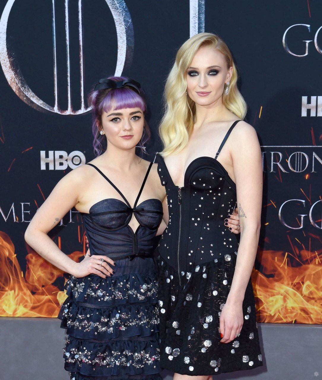 A atriz loira Sophie Turner exibe suas pernas sexy na estreia da 8ª temporada de “Game Of Thrones” na cidade de Nova York, 03/04/2019. Sua amiga, Maisie Williams, foi vista lá.