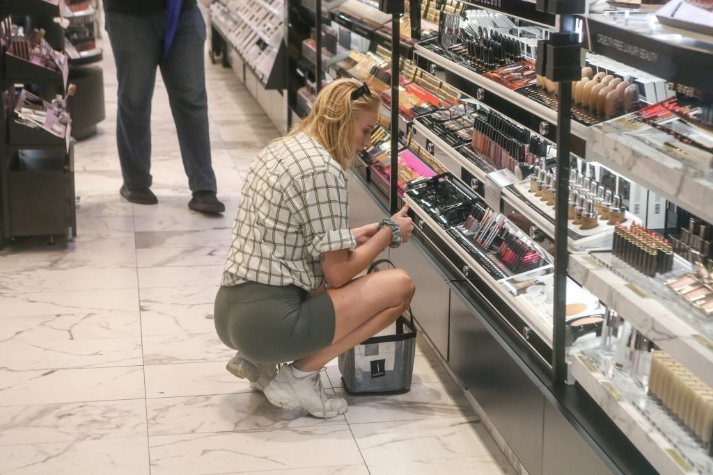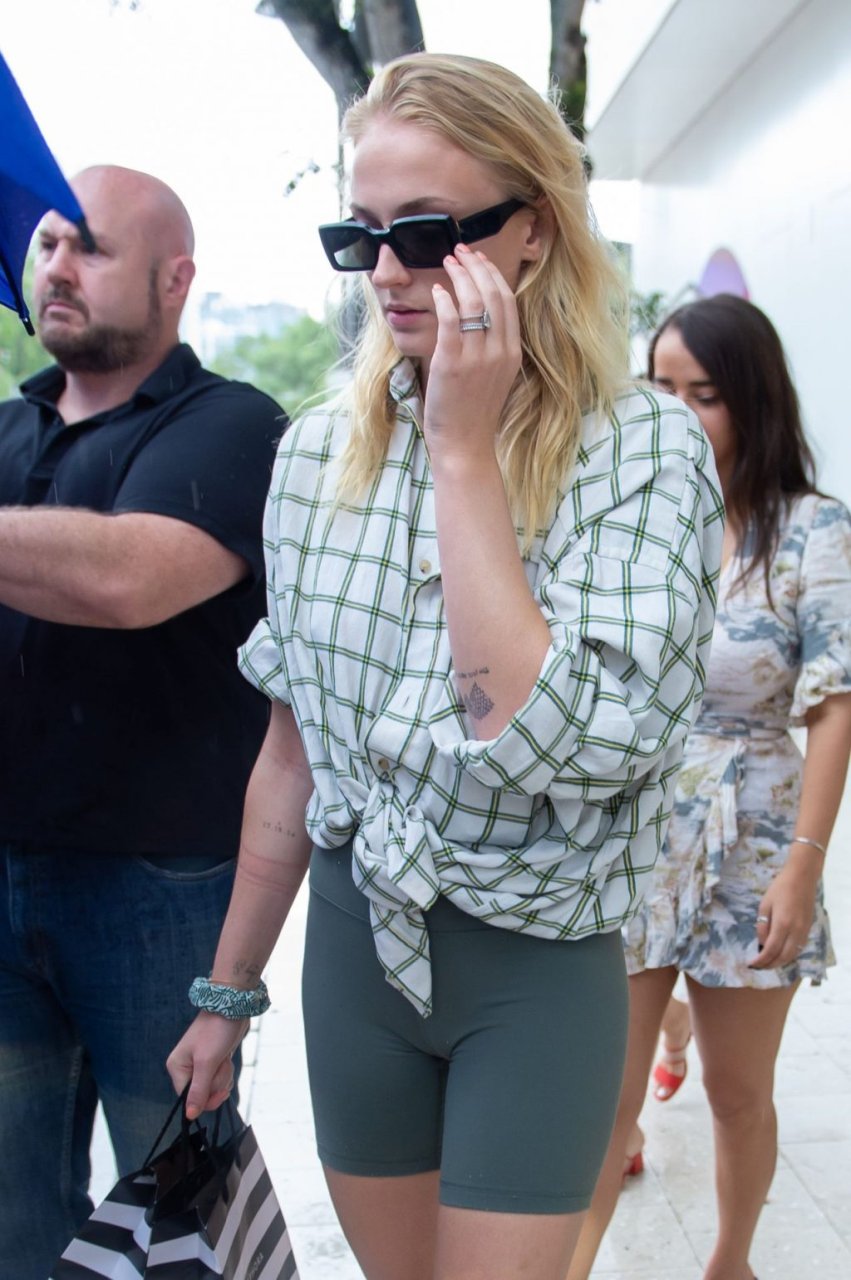Priyanka, que está na moda, usava um vestido de verão azul e branco, e Turner usava um par de shorts de lycra verdes e uma camisa xadrez verde. As duas são casadas com os Jonas Brothers e estão na cidade para apoiar seus maridos enquanto eles se preparam para a nova turnê. Após visitar a Sephora, as garotas pararam para um café e depois foram à loja de departamentos chique Saks Fifth Avenue.