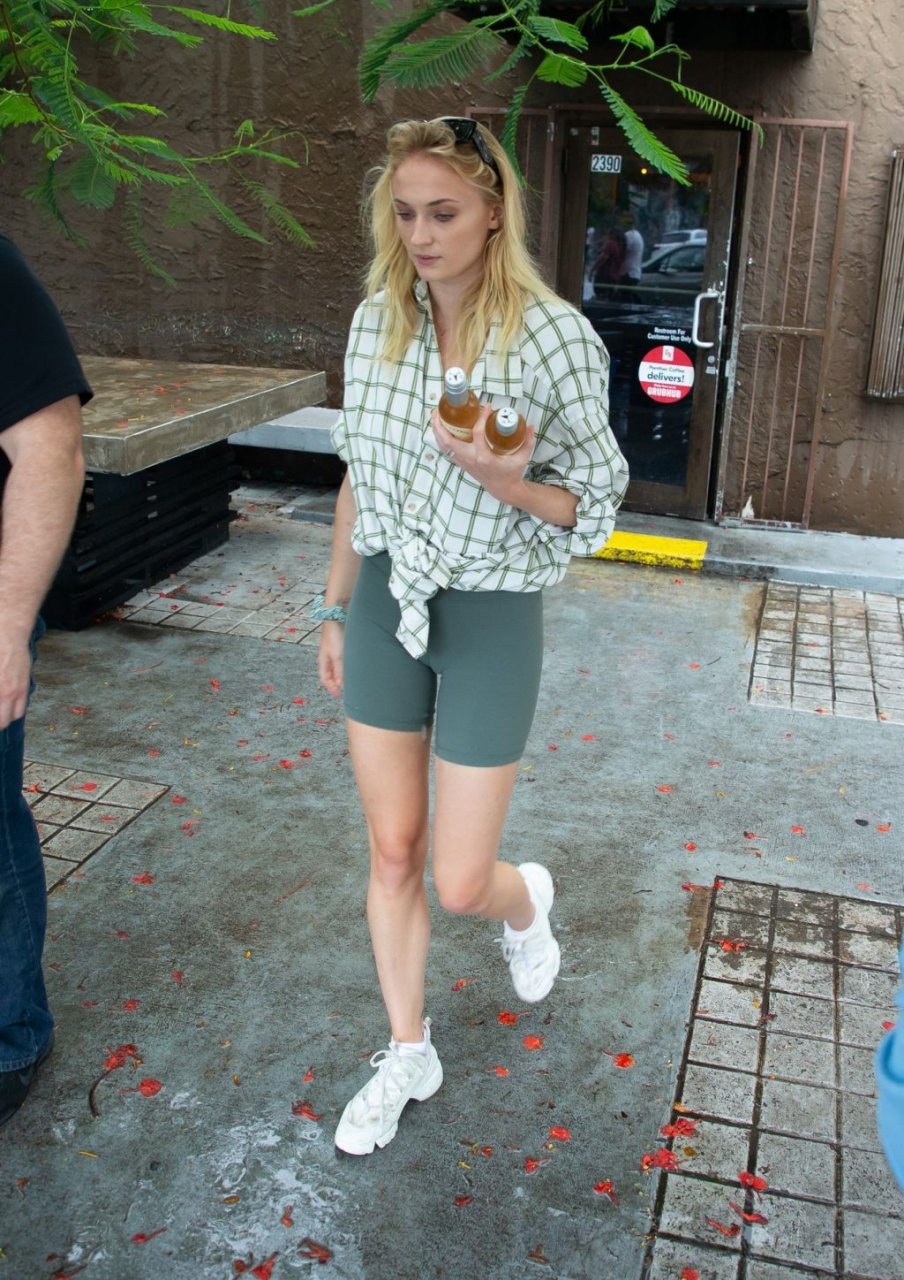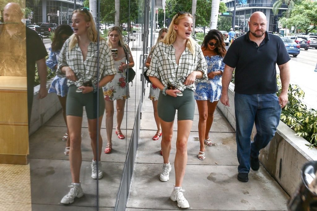Sophie Turner usa shorts justos e reveladores, e Priyanka Chopra usa um vestido para um dia de compras divertido de domingo com as amigas em Miami, 04/08/2019.