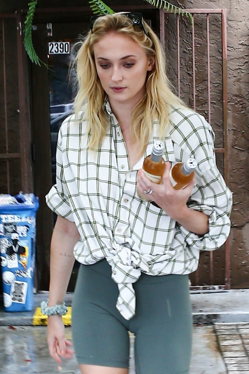 Priyanka, que está na moda, usava um vestido de verão azul e branco, e Turner usava um par de shorts de lycra verdes e uma camisa xadrez verde. As duas são casadas com os Jonas Brothers e estão na cidade para apoiar seus maridos enquanto eles se preparam para a nova turnê. Após visitar a Sephora, as garotas pararam para um café e depois foram à loja de departamentos chique Saks Fifth Avenue.
