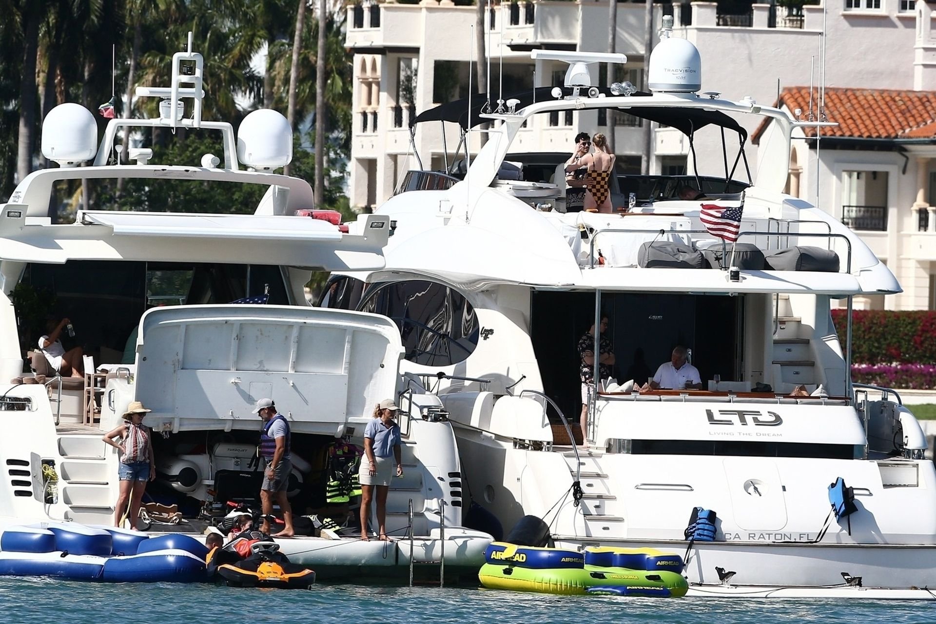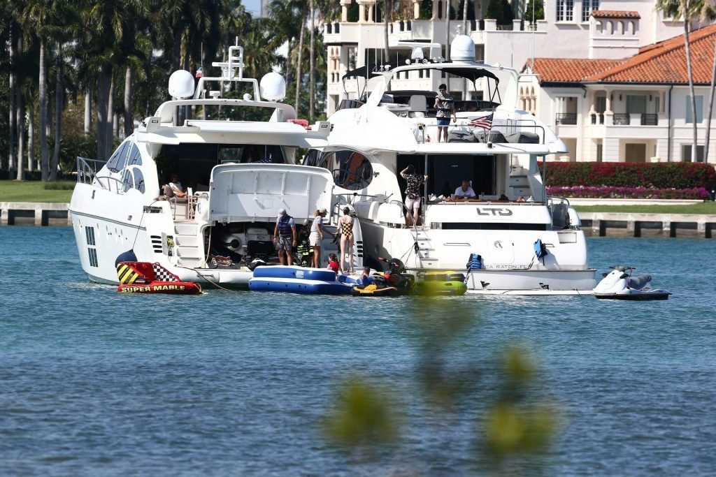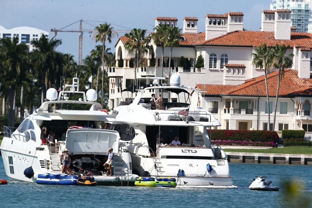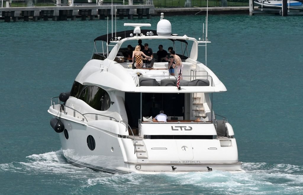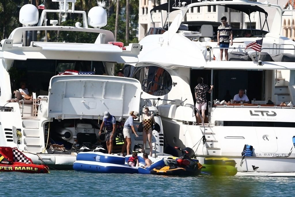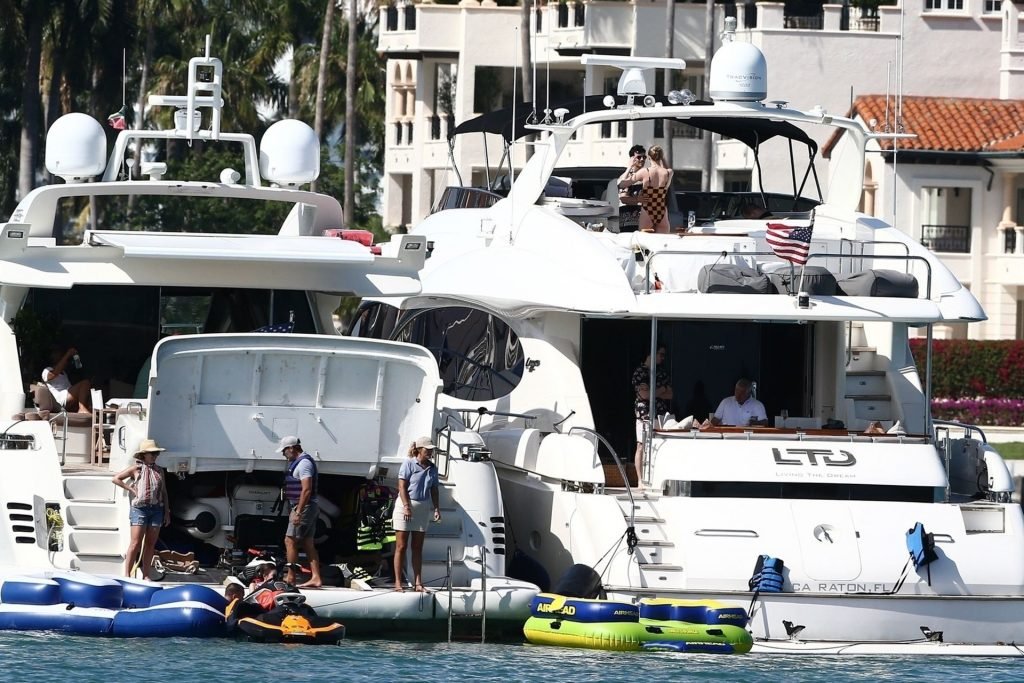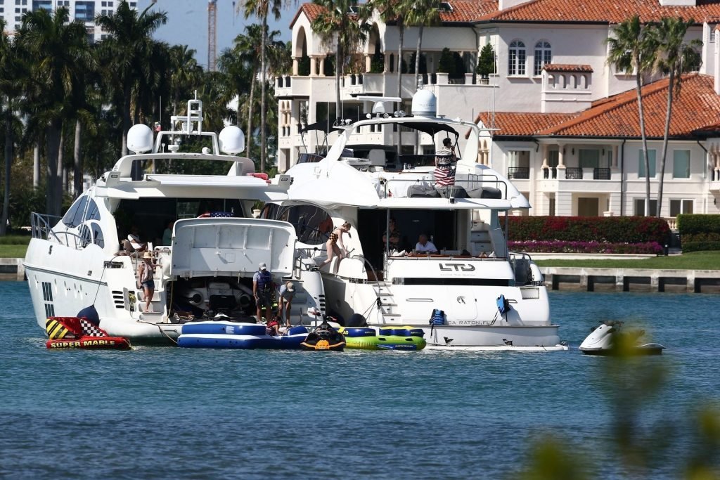 A estrela de “Game of Thrones” Sophie Turner usa um maiô xadrez enquanto curte com The Jonas Brothers e Priyanka Chopra em Miami, 25/03/2019.