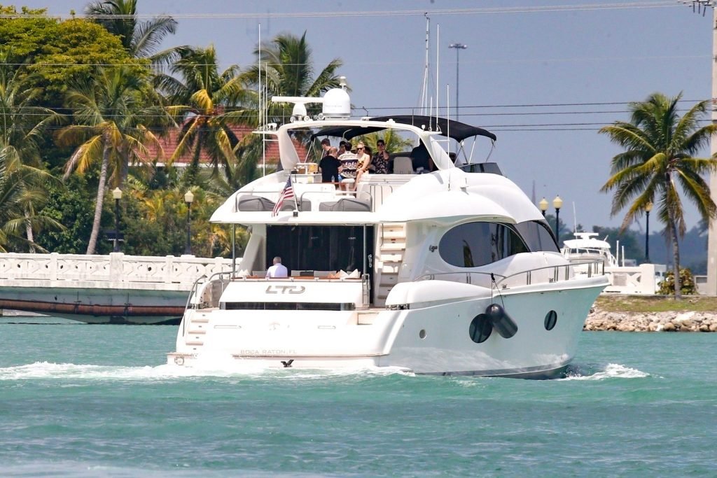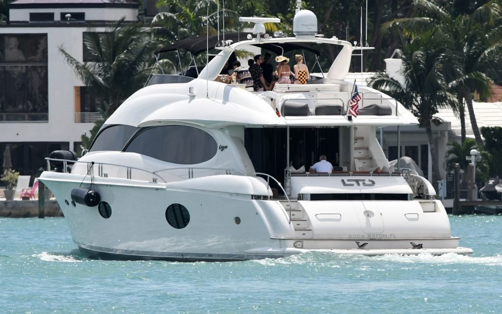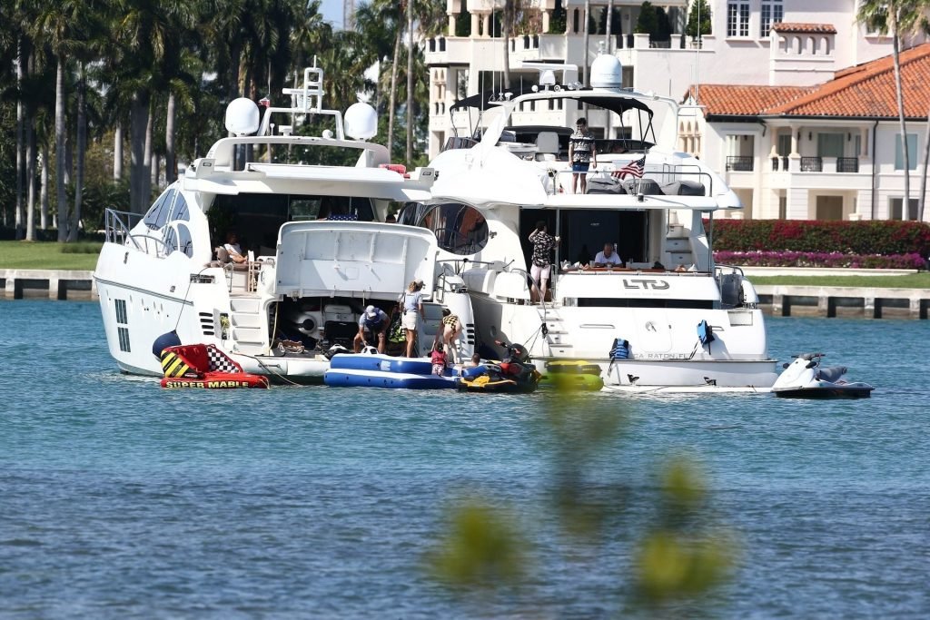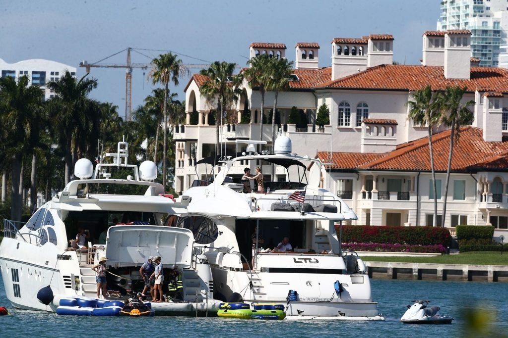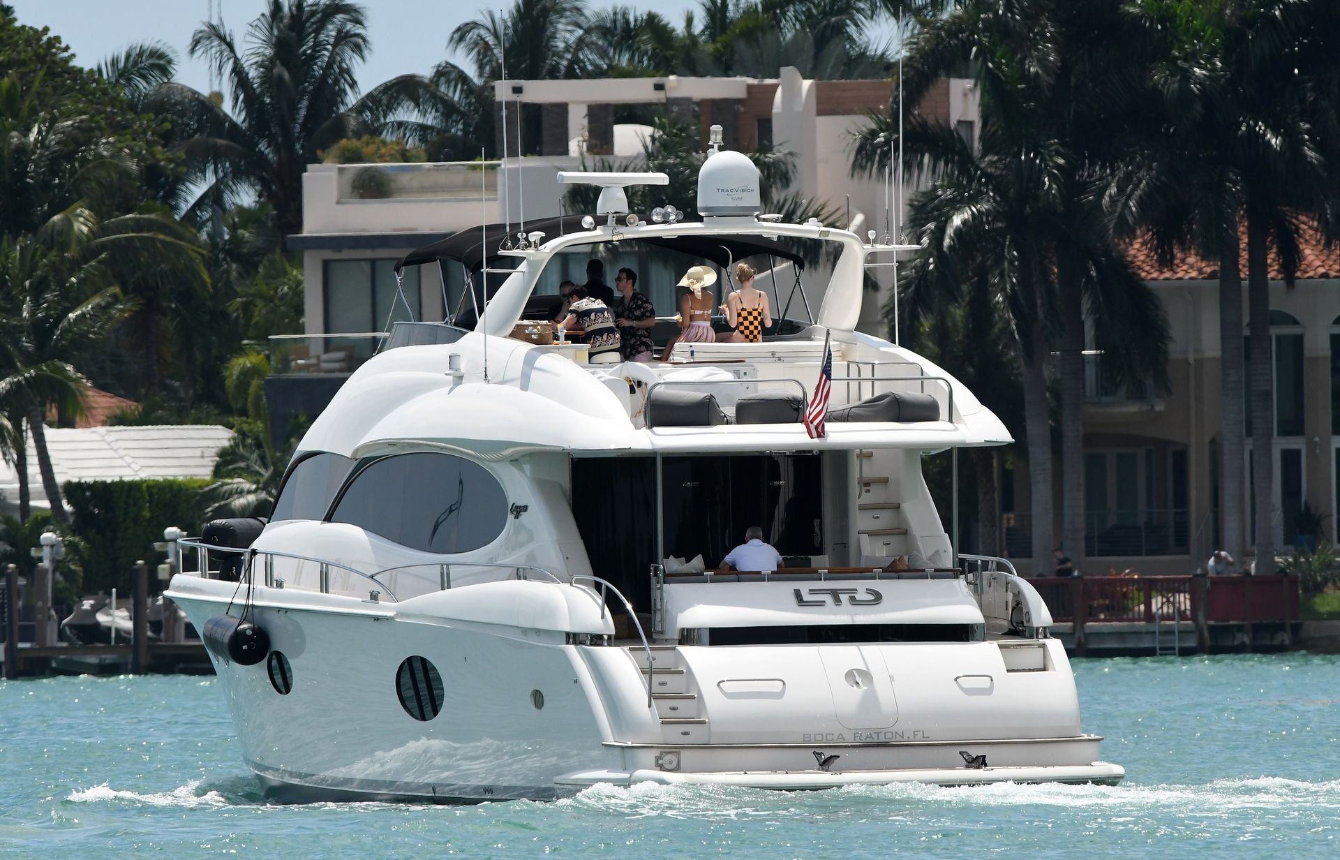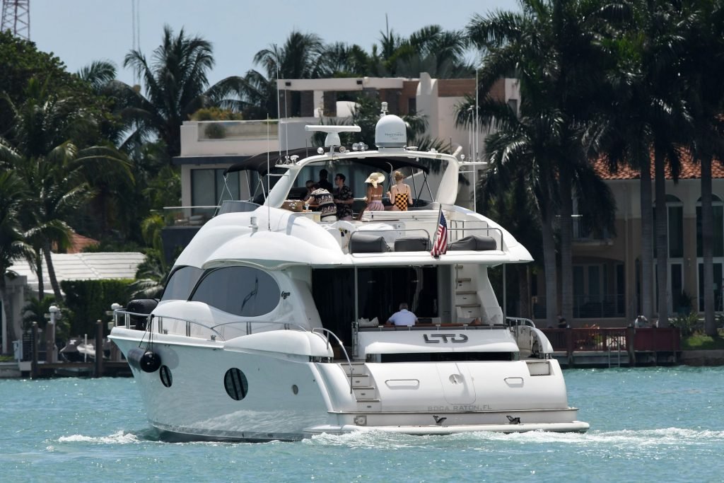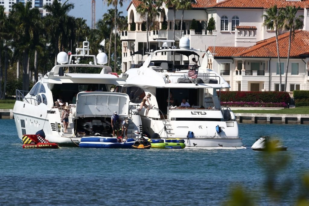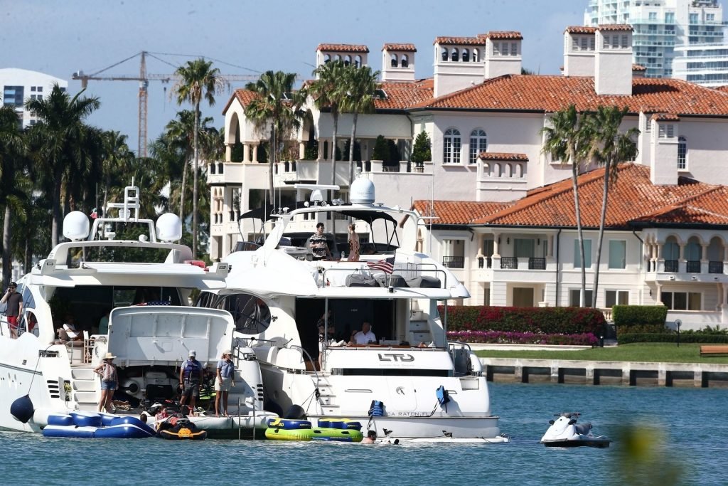 A estrela de “Game of Thrones” Sophie Turner usa um maiô xadrez enquanto curte com The Jonas Brothers e Priyanka Chopra em Miami, 25/03/2019.