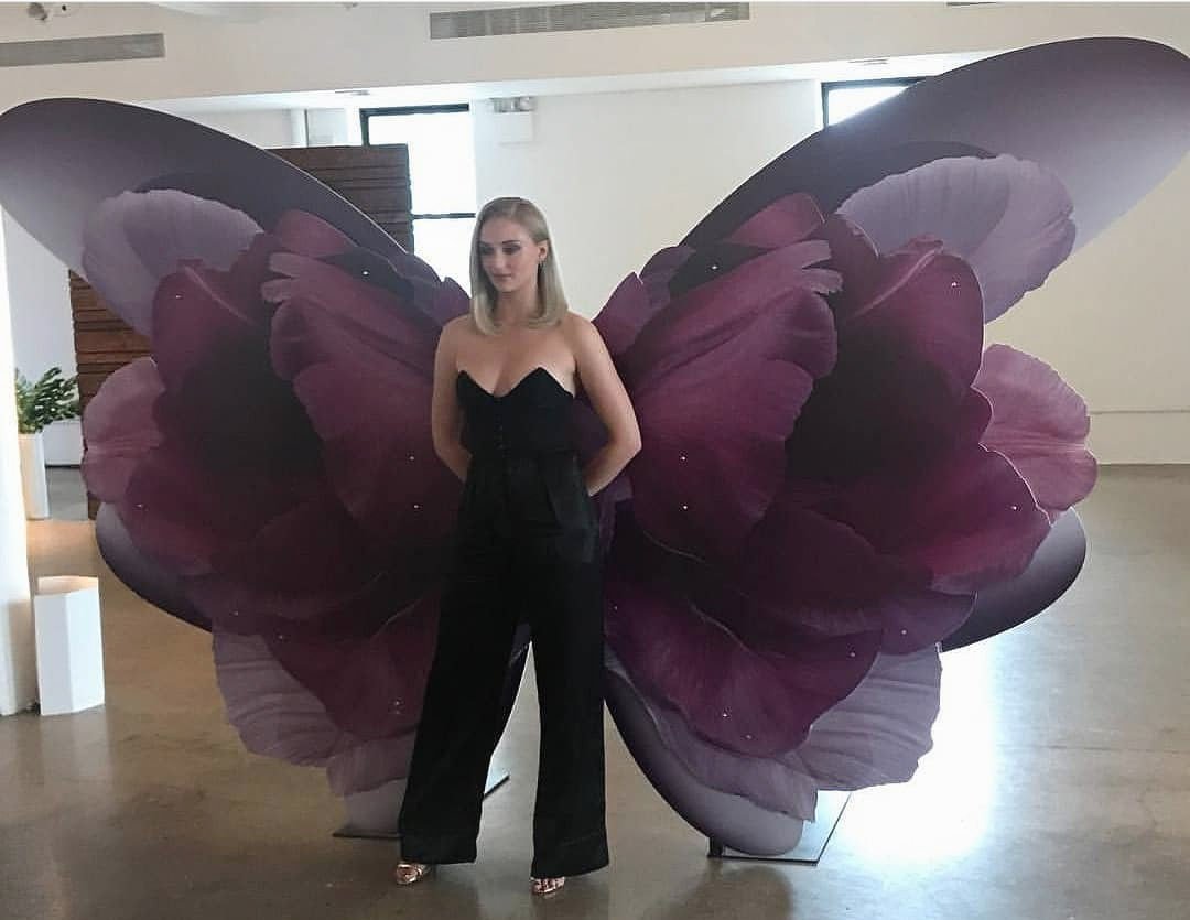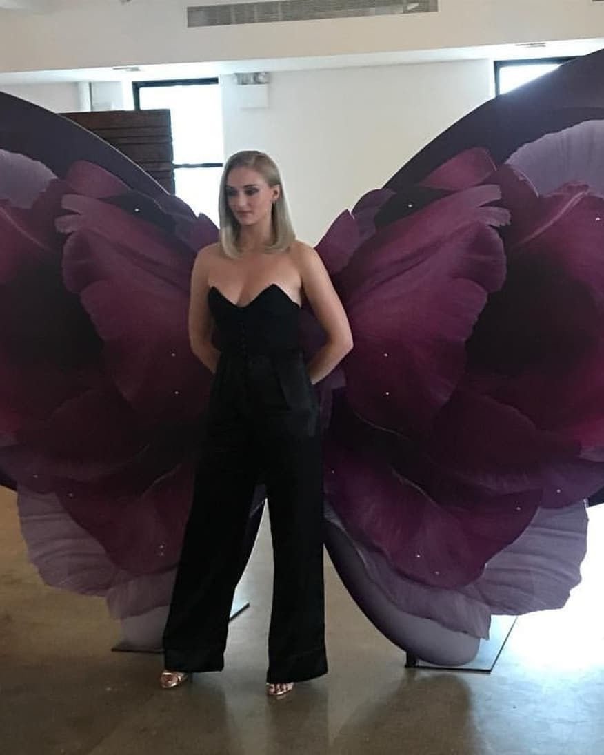 A atriz Sophie Turner exibiu seu super decote no evento da Wella em Nova York – Instagram, 20/10/2018. Seu cabelo está ótimo, mas todos os fãs estão interessados em ver sua bush.