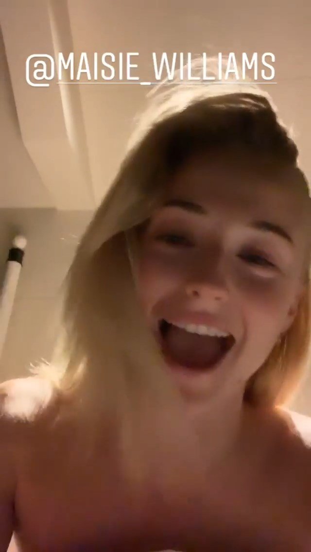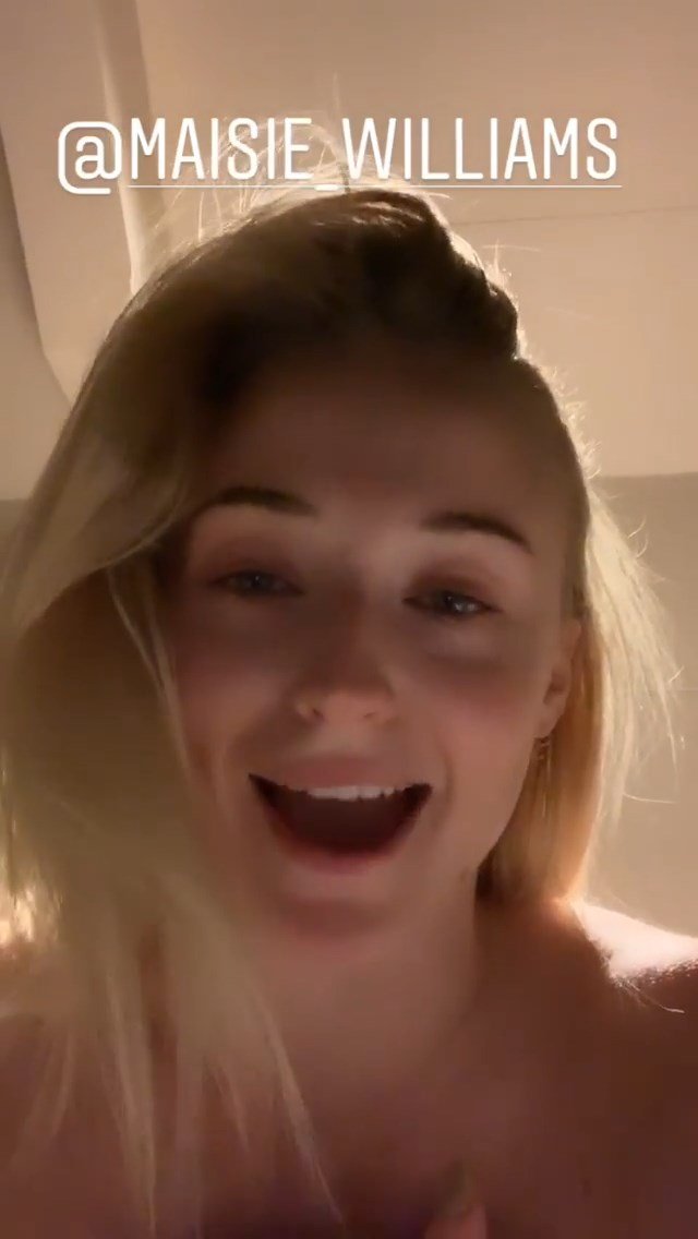 A atriz de “Game of Thrones” Sophie Turner gravou uma mensagem para uma garota, Arya Stark também conhecida como Maisie Williams – Instagram, 29/04/2019.