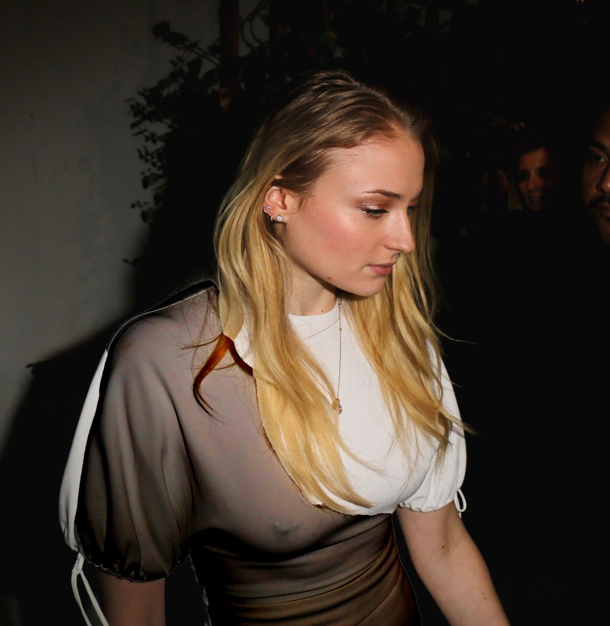 Sophie Turner sem sutiã chega à celebração da Flaunt e Guess da Edição Alternative Facts em Los Angeles, 11/04/2017. Mamilo perfurado! Sophie Turner é atriz inglesa (X-Men: Apocalypse – 2016). Idade – 21 anos (nascida em 21 de fevereiro de 1996).