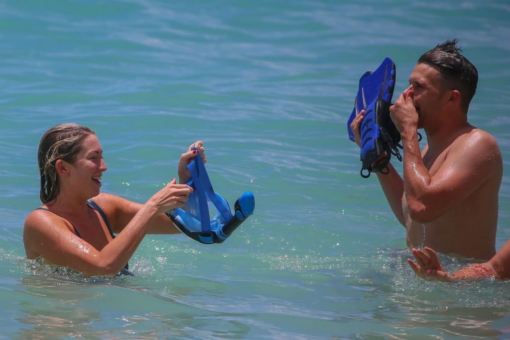 Nastassia Bianca “Stassi” Schroeder arrasou com um maiô sexy enquanto se juntava aos colegas de elenco de “Vanderpump Rules”, Katie Maloney-Schwartz e seu marido Tom Schwartz, para um mergulho com snorkel em frente ao hotel deles em Waikiki, 24/08/2019. Katie foi vista com um biquíni pequeno enquanto brincava com o marido na beira da praia.