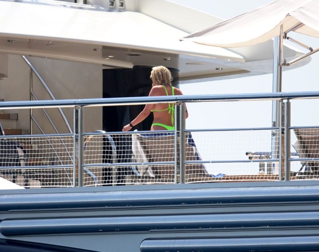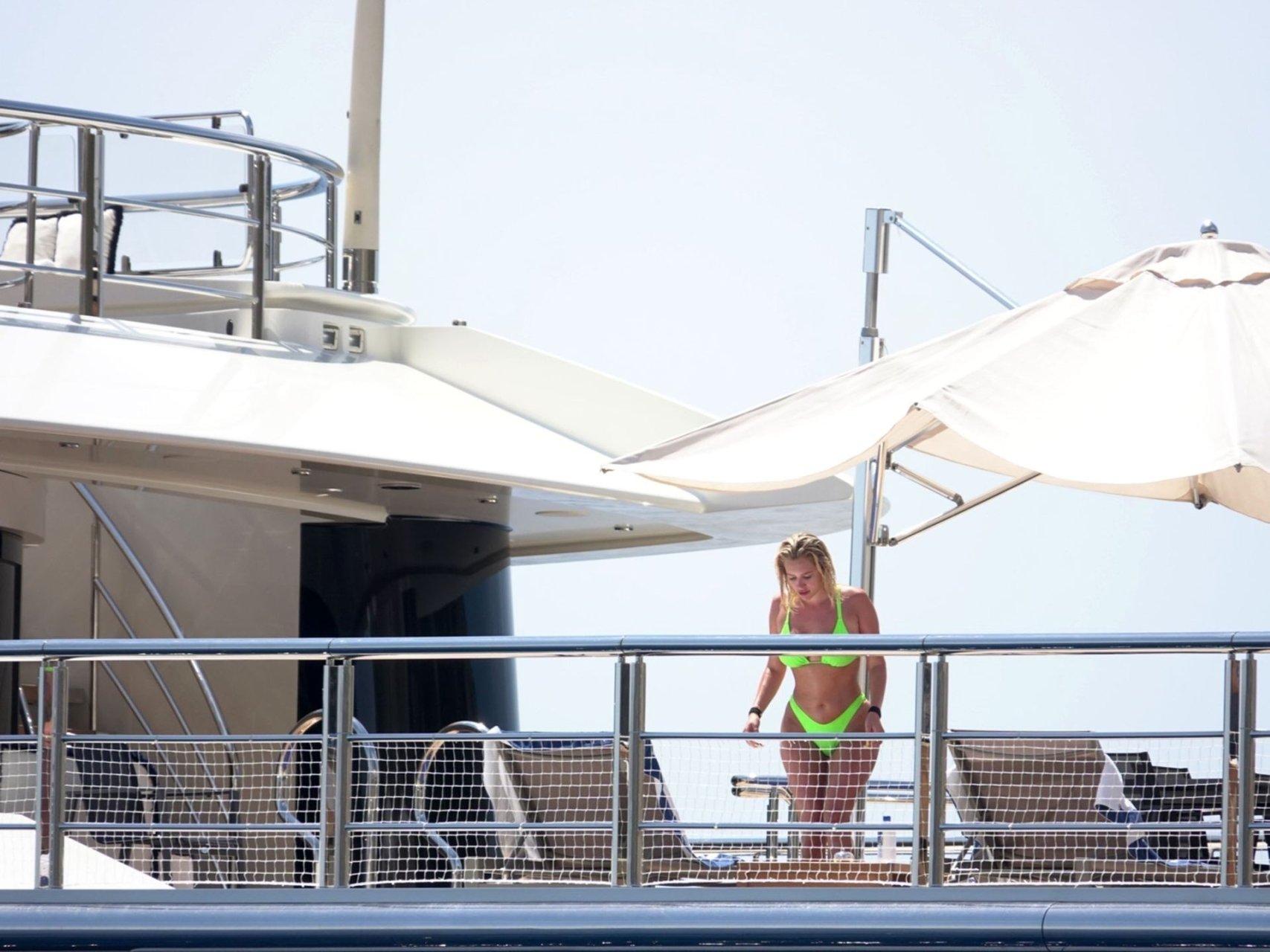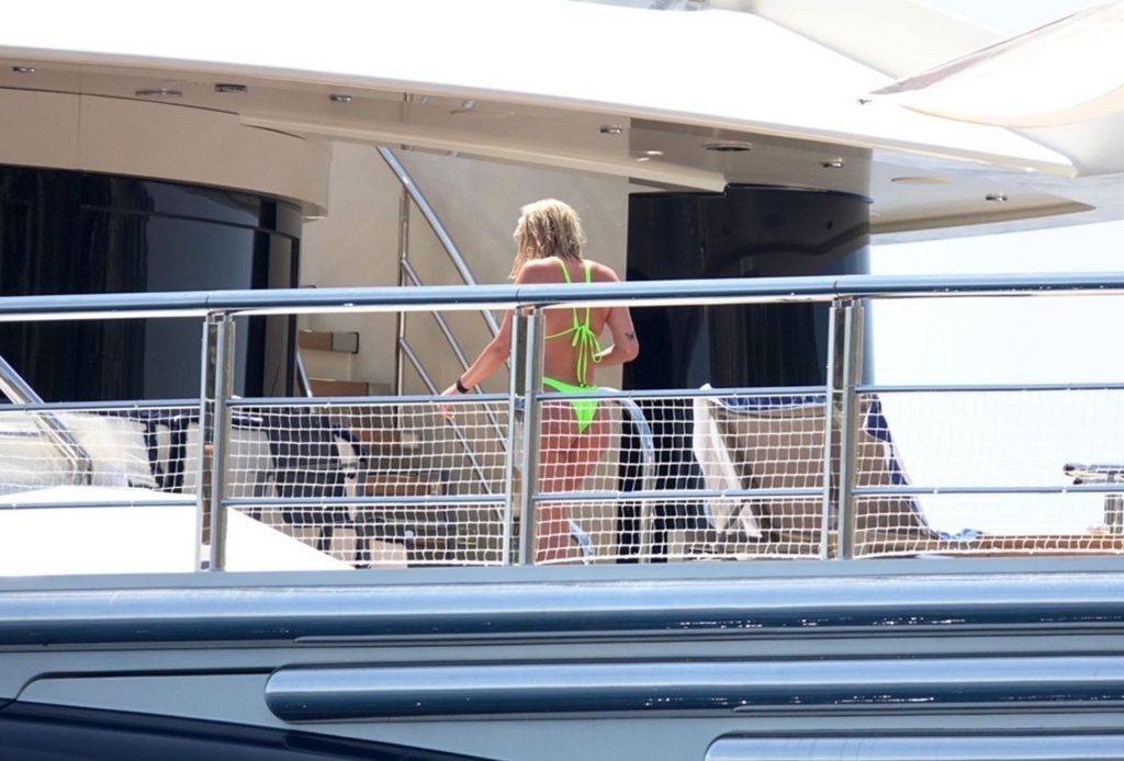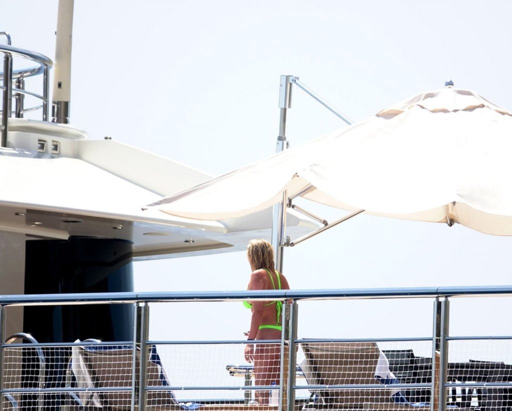 Kylie Jenner BFF Anastasia “Stassie” Karanikolaou está sexy em seu biquíni verde-limão mostrando seu corpo quente de praia em seu iate de luxo nos mares italianos de Positano. Stassie veio preparada para festejar em comemoração ao 22º aniversário de Kylie, 05/08/2019.