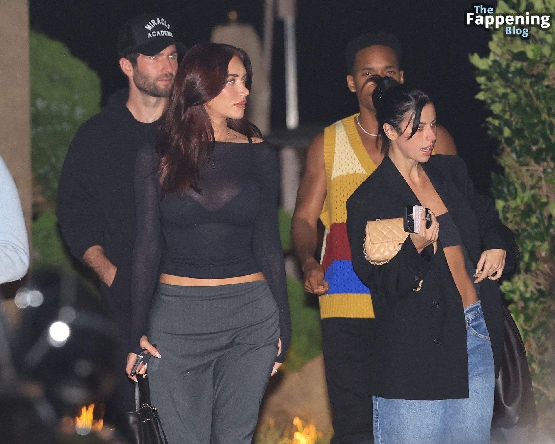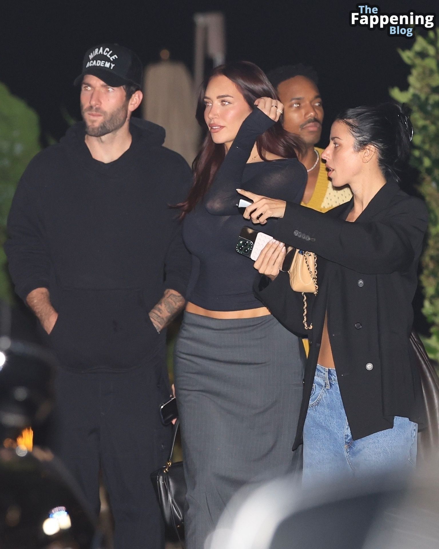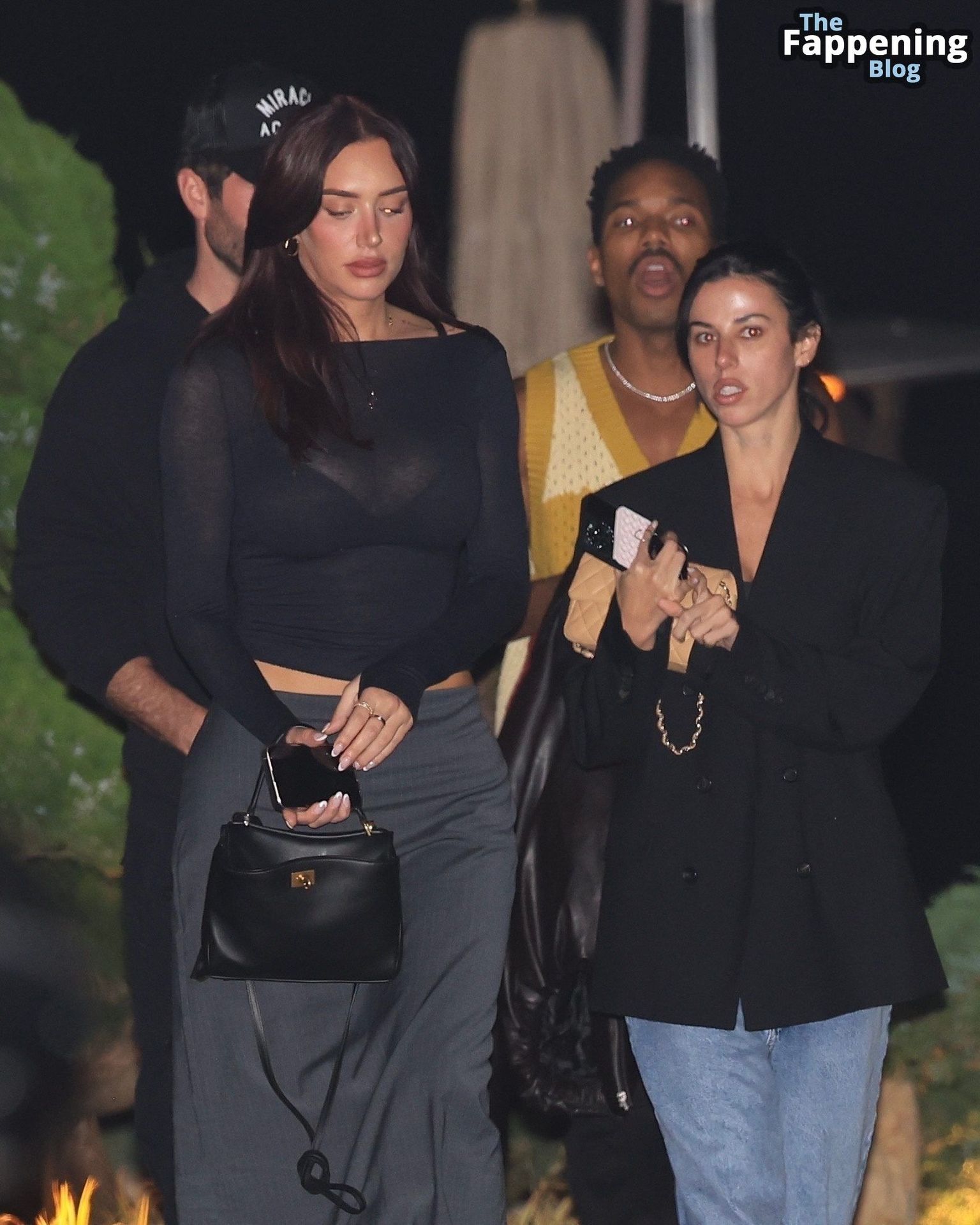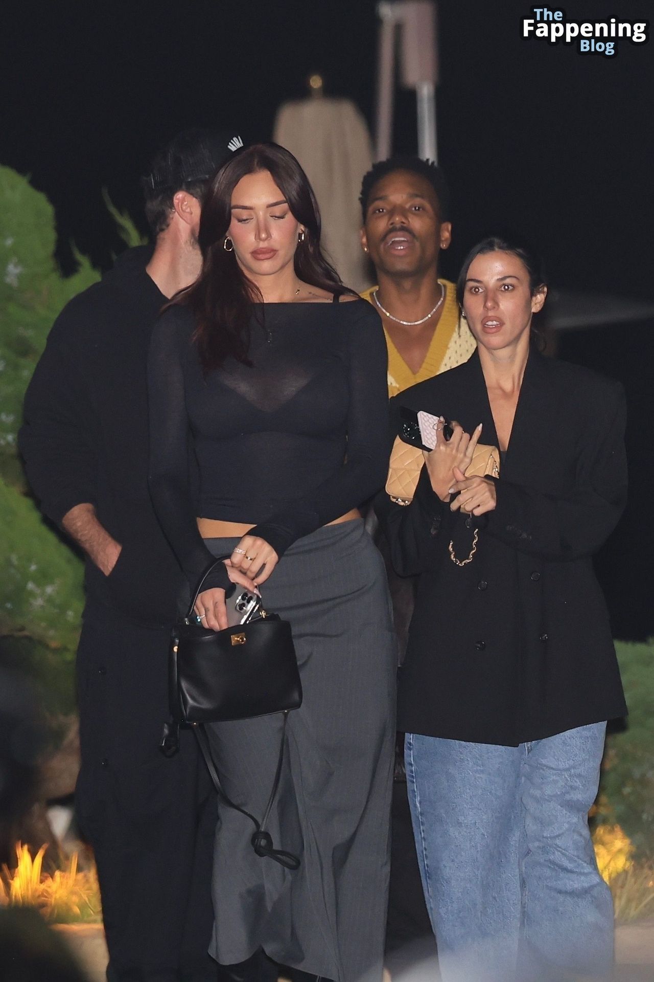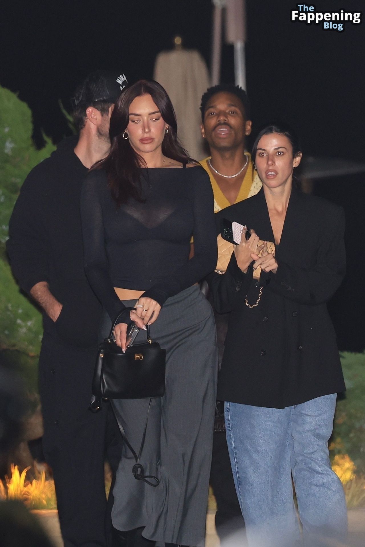 Anastassia Karanikolaou, também conhecida como Stassie, não economizou no visual com um top preto transparente, deixando à mostra um pouco do sutiã enquanto curtia no Nobu em LA.