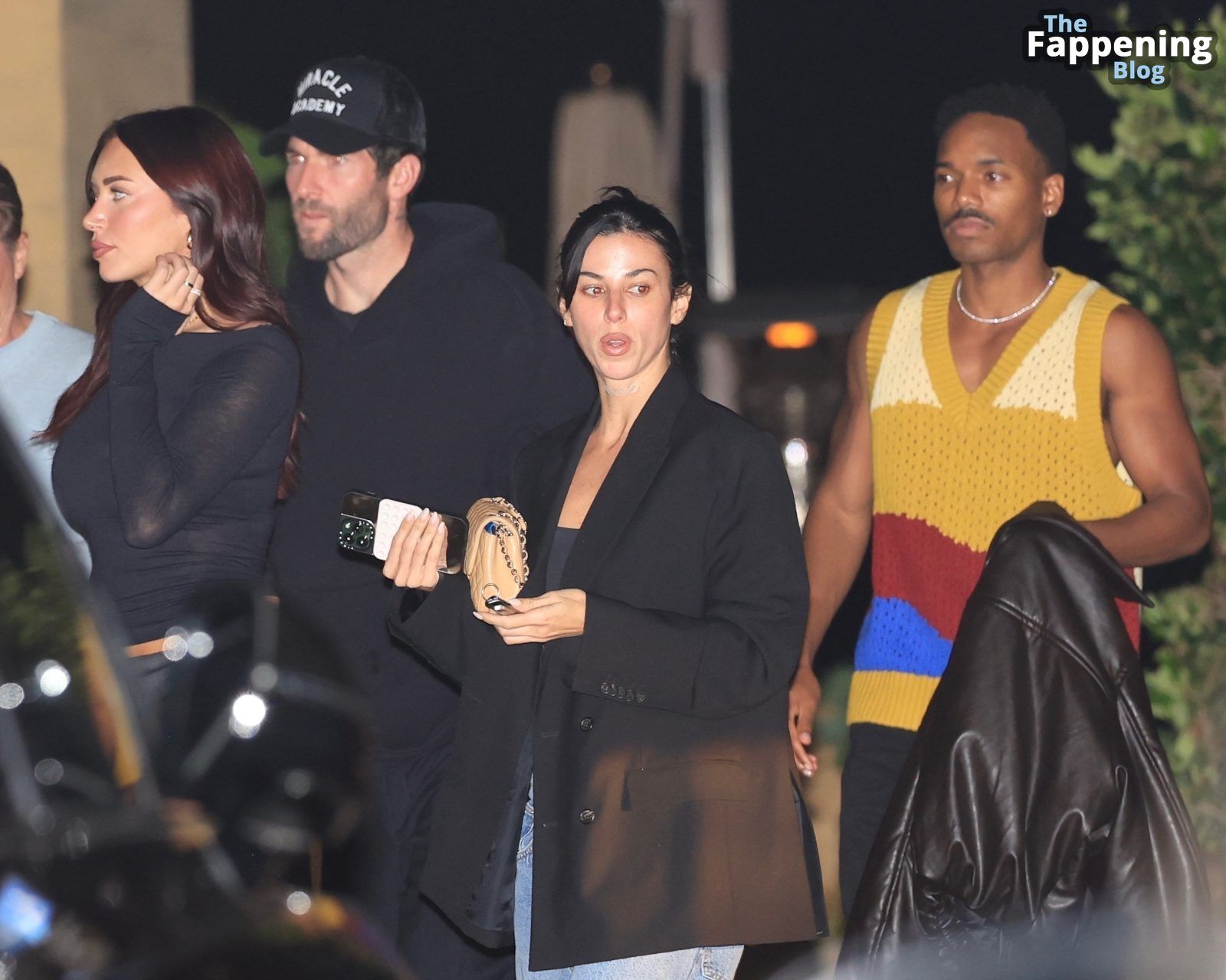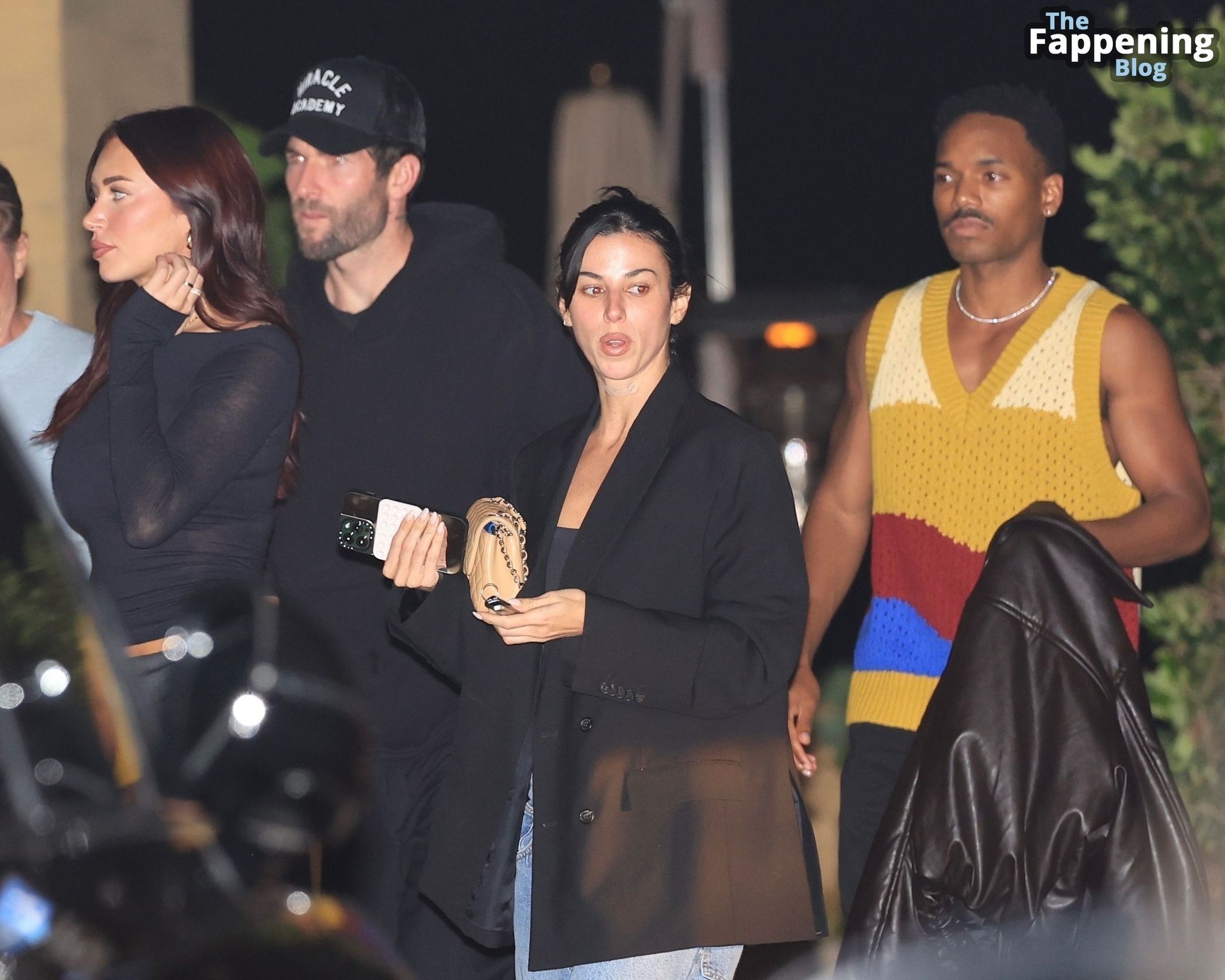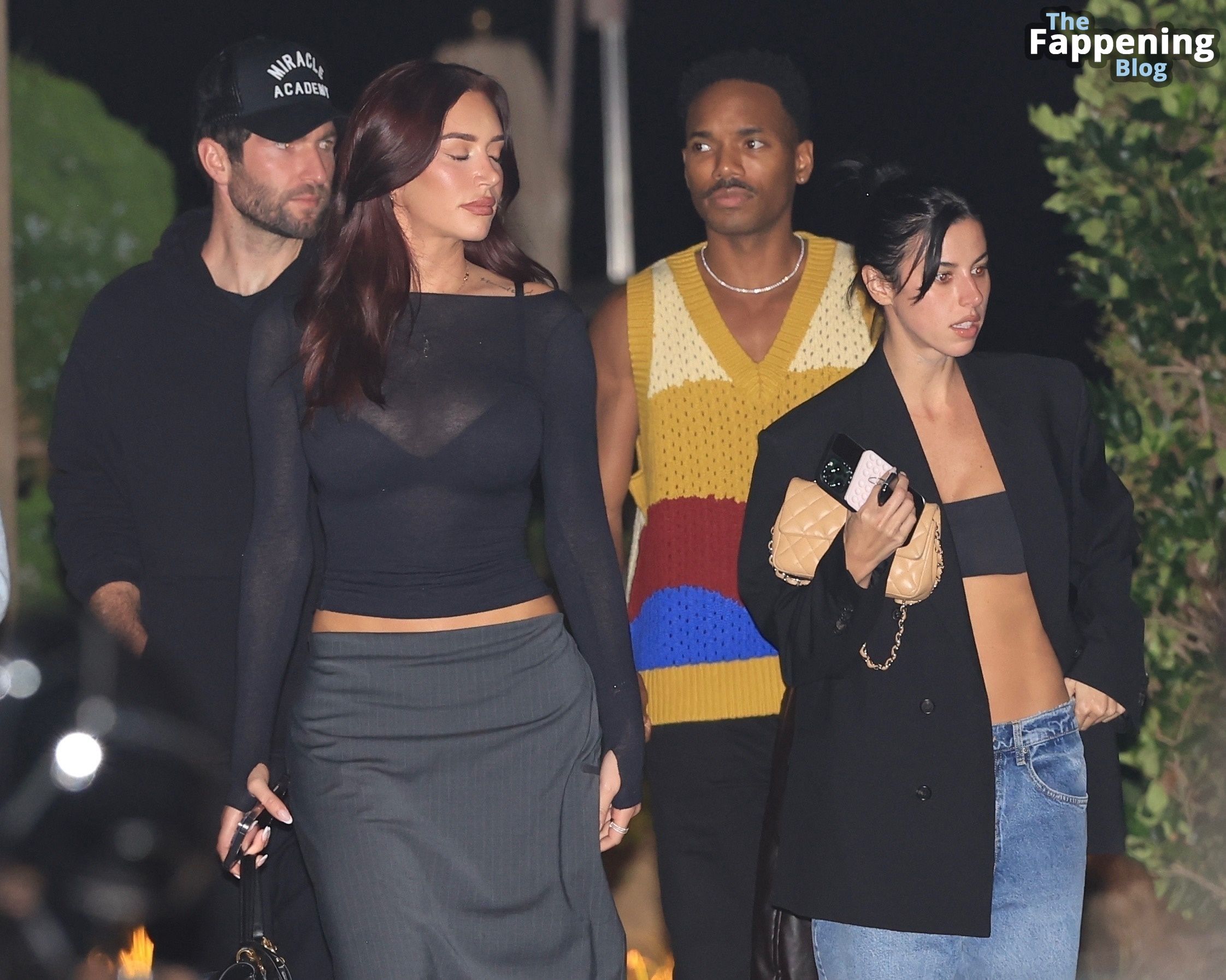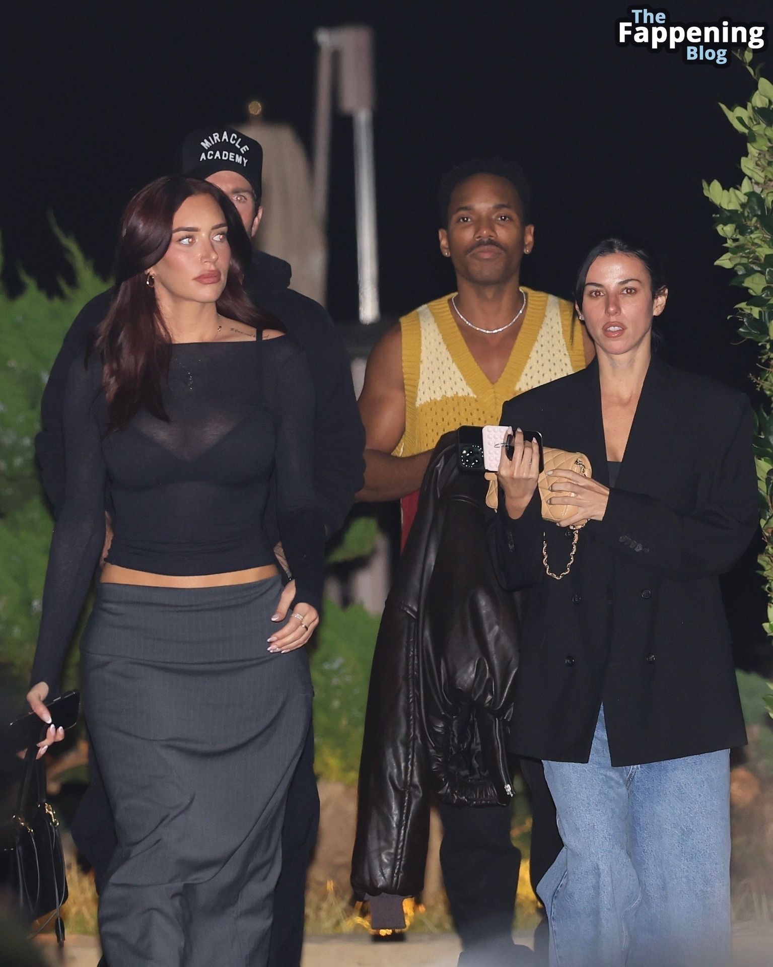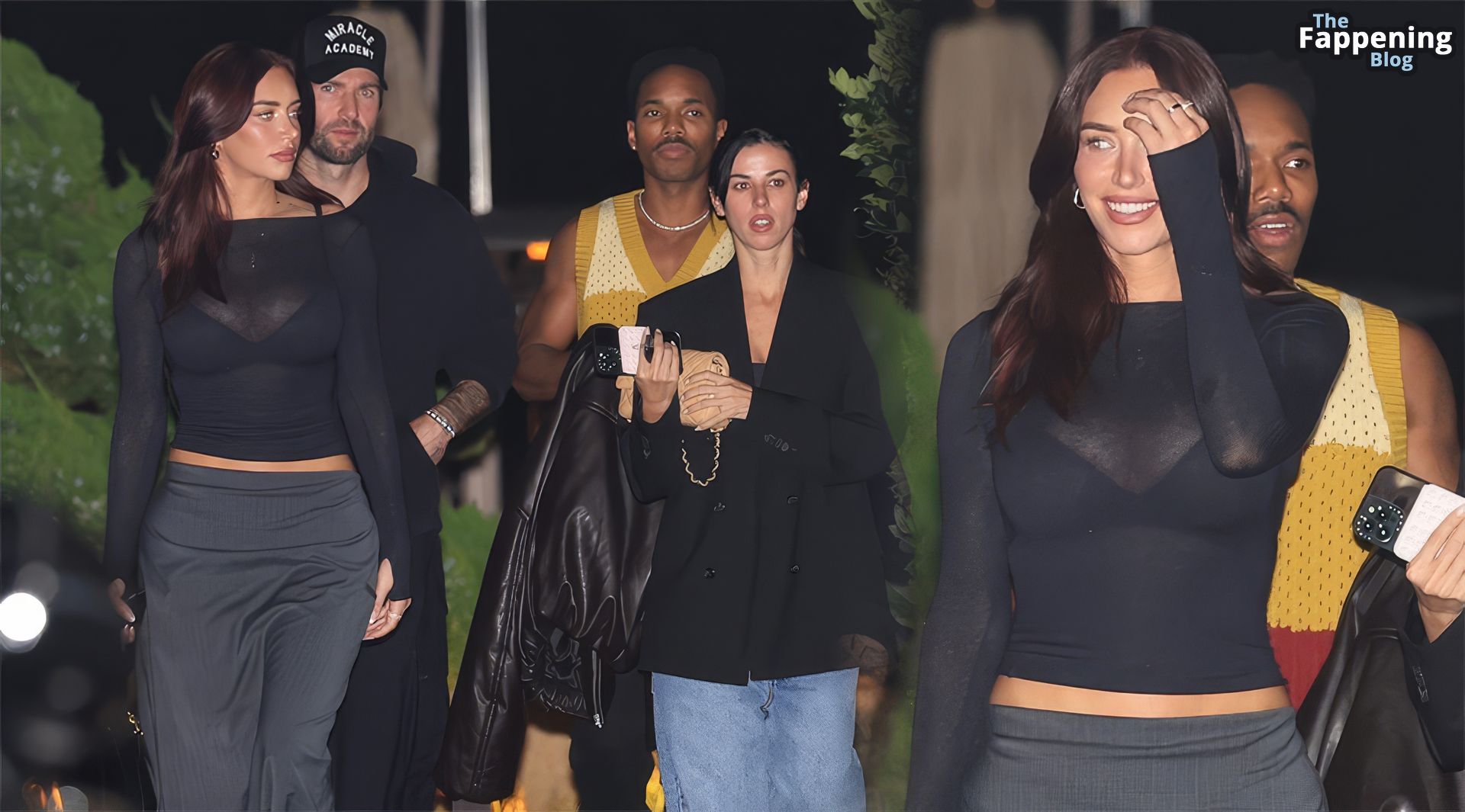 Anastassia Karanikolaou, também conhecida como Stassie, não economizou no visual com um top preto transparente, deixando à mostra um pouco do sutiã enquanto curtia no Nobu em LA.