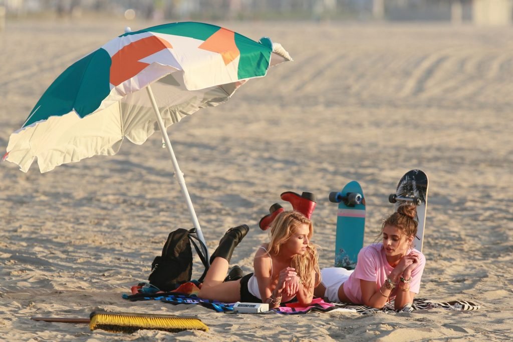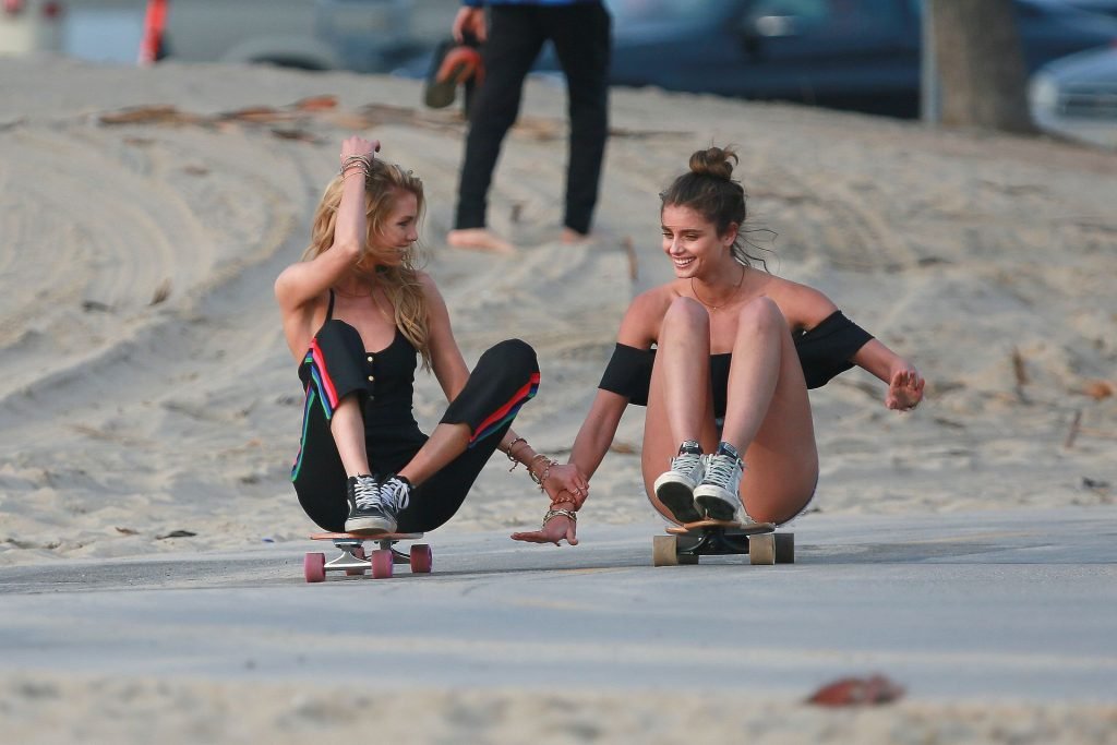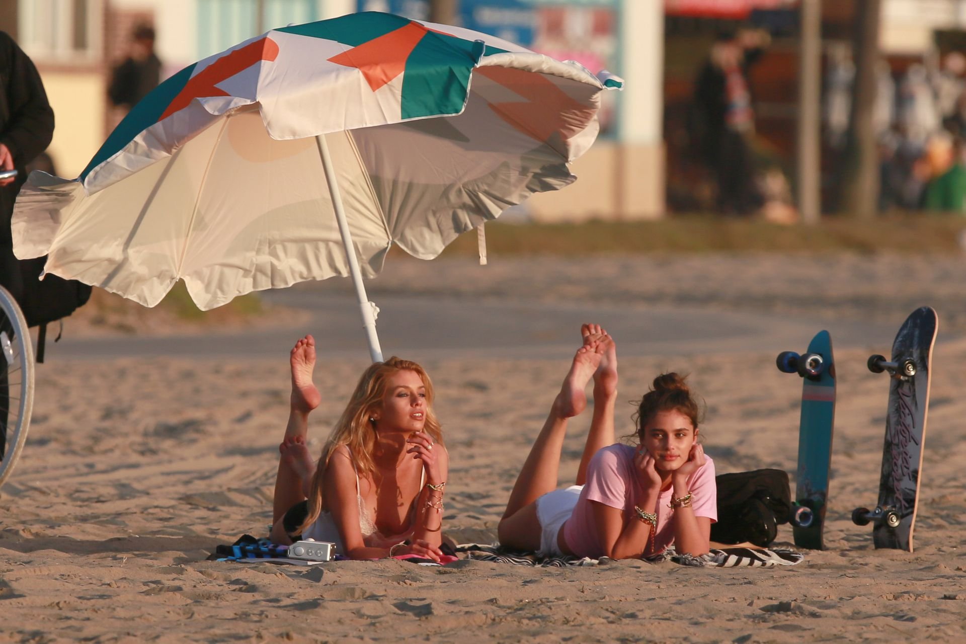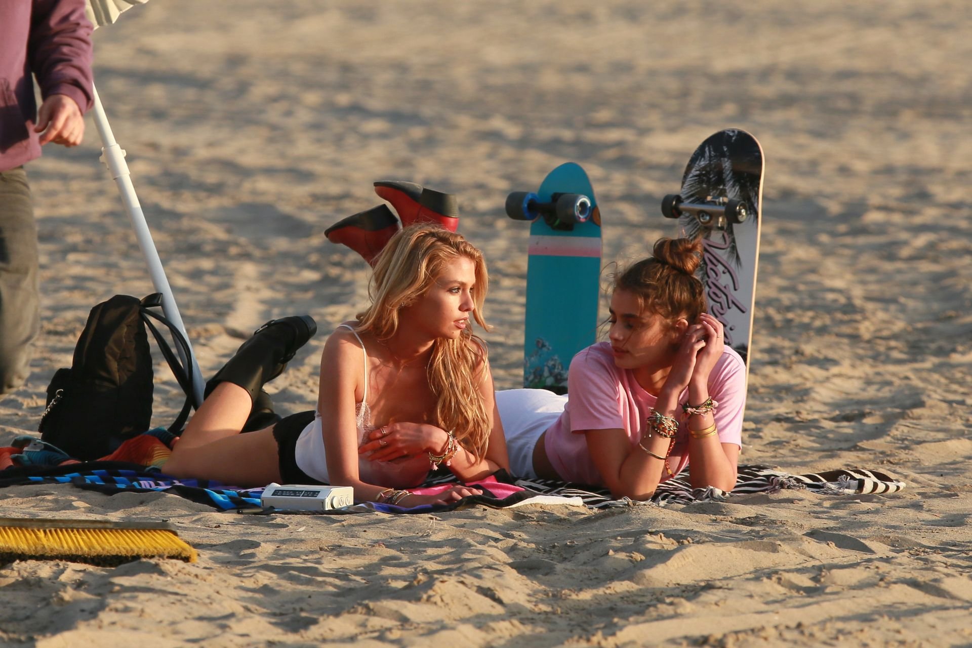 Stella Maxwell mostra para sua ex Kristen Stewart exatamente o que ela está perdendo durante um ensaio fotográfico para a Victoria’s Secret com a colega modelo Taylor Hill em Venice Beach, 11/01/2019.