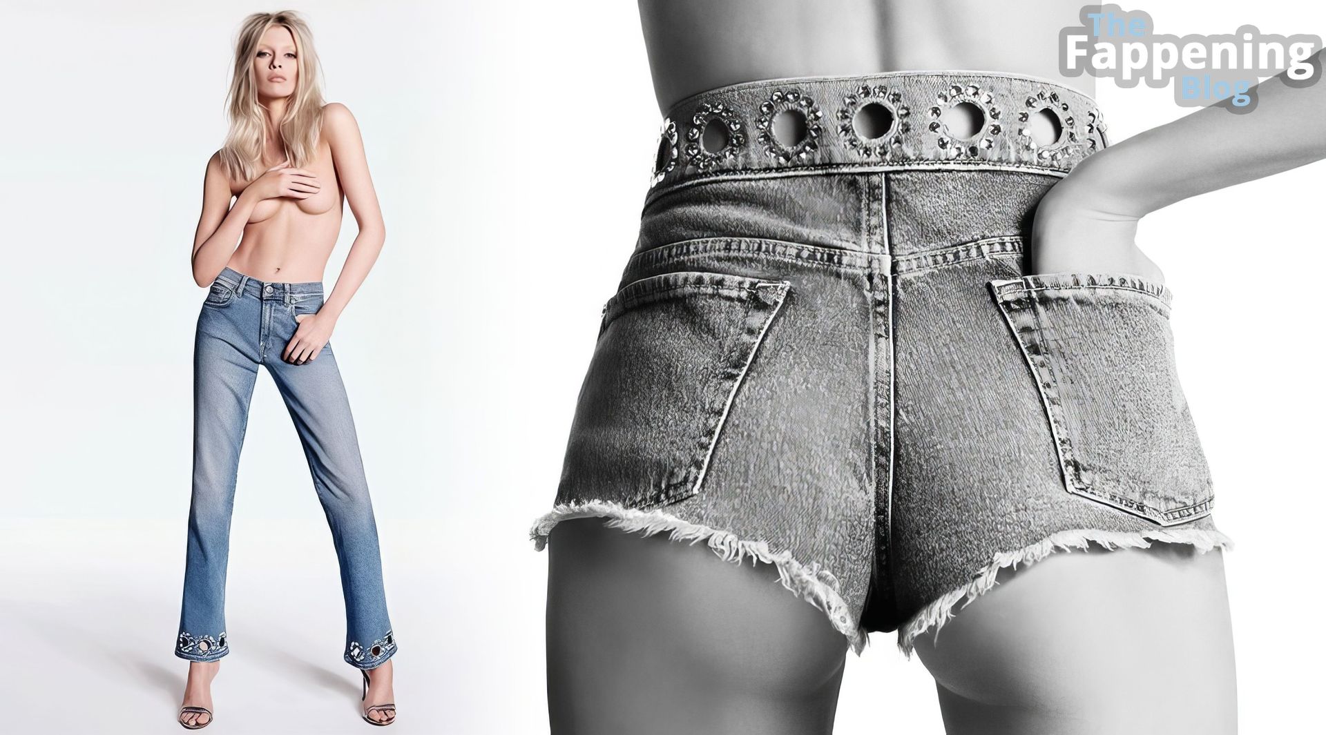 Prepare-se para conferir a ousada exibição em denim de Stella Maxwell, onde seus seios e bumbum incríveis roubam a cena na quente campanha de Anna Dello Russo.