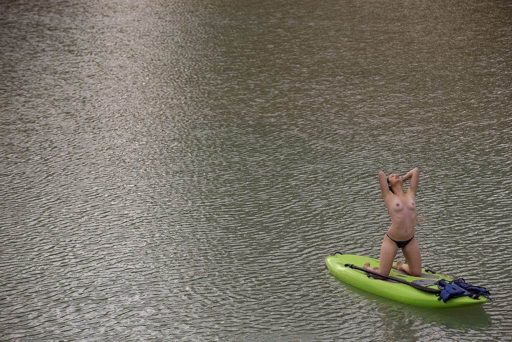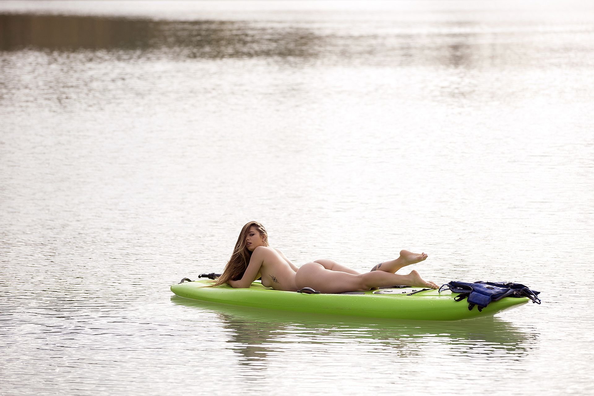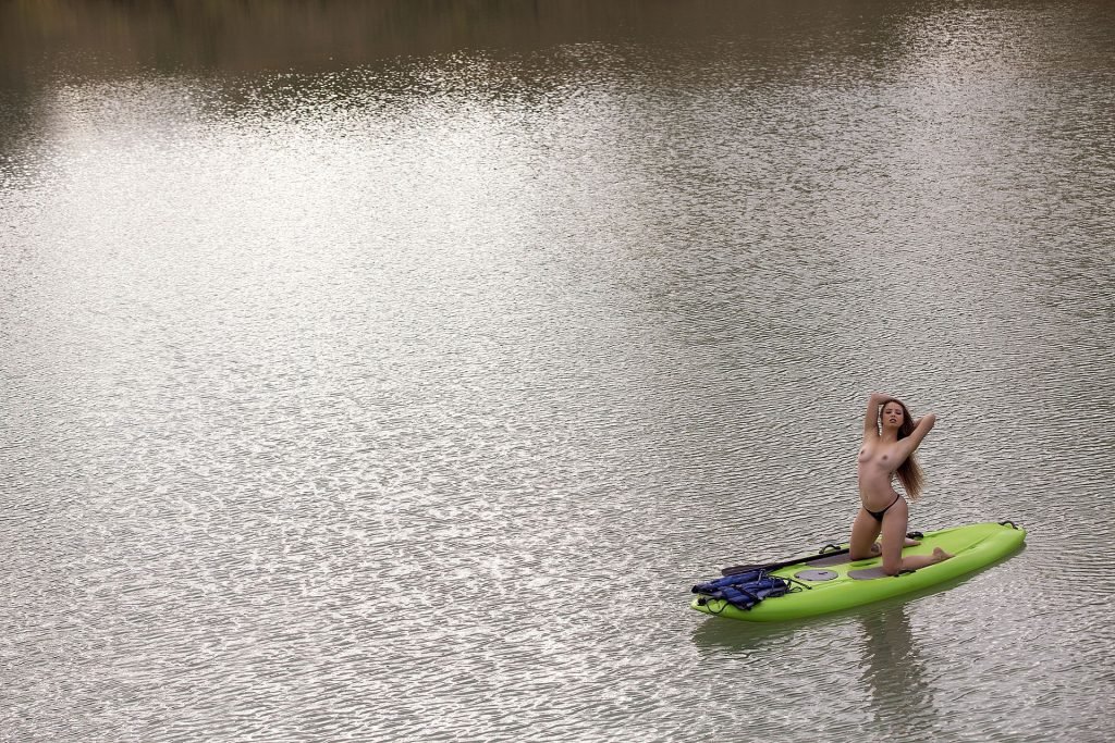 Modelo brasileira Stephany Carvalho mostrou seu lindo corpo nu em um ensaio fotográfico de Carlos Félix (2017). A deslumbrante gata foi fotografada nua em um caiaque verde.
